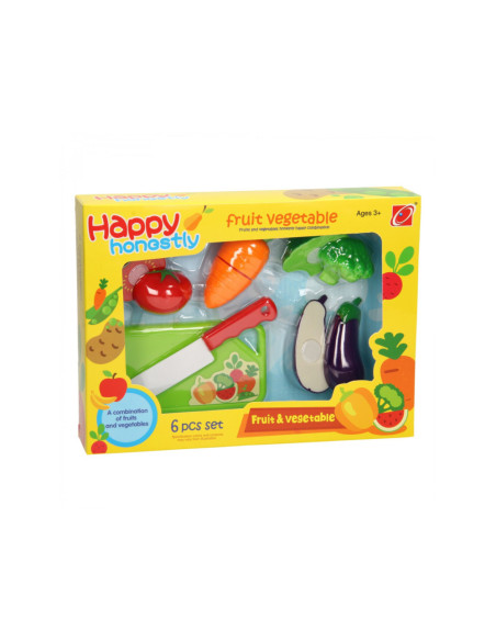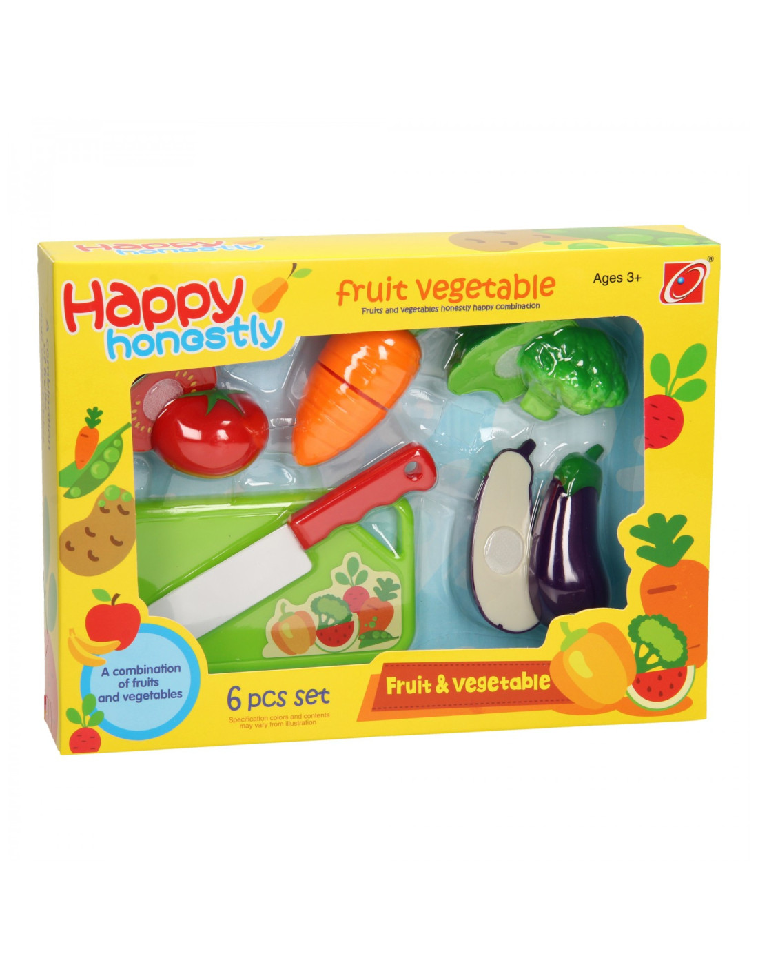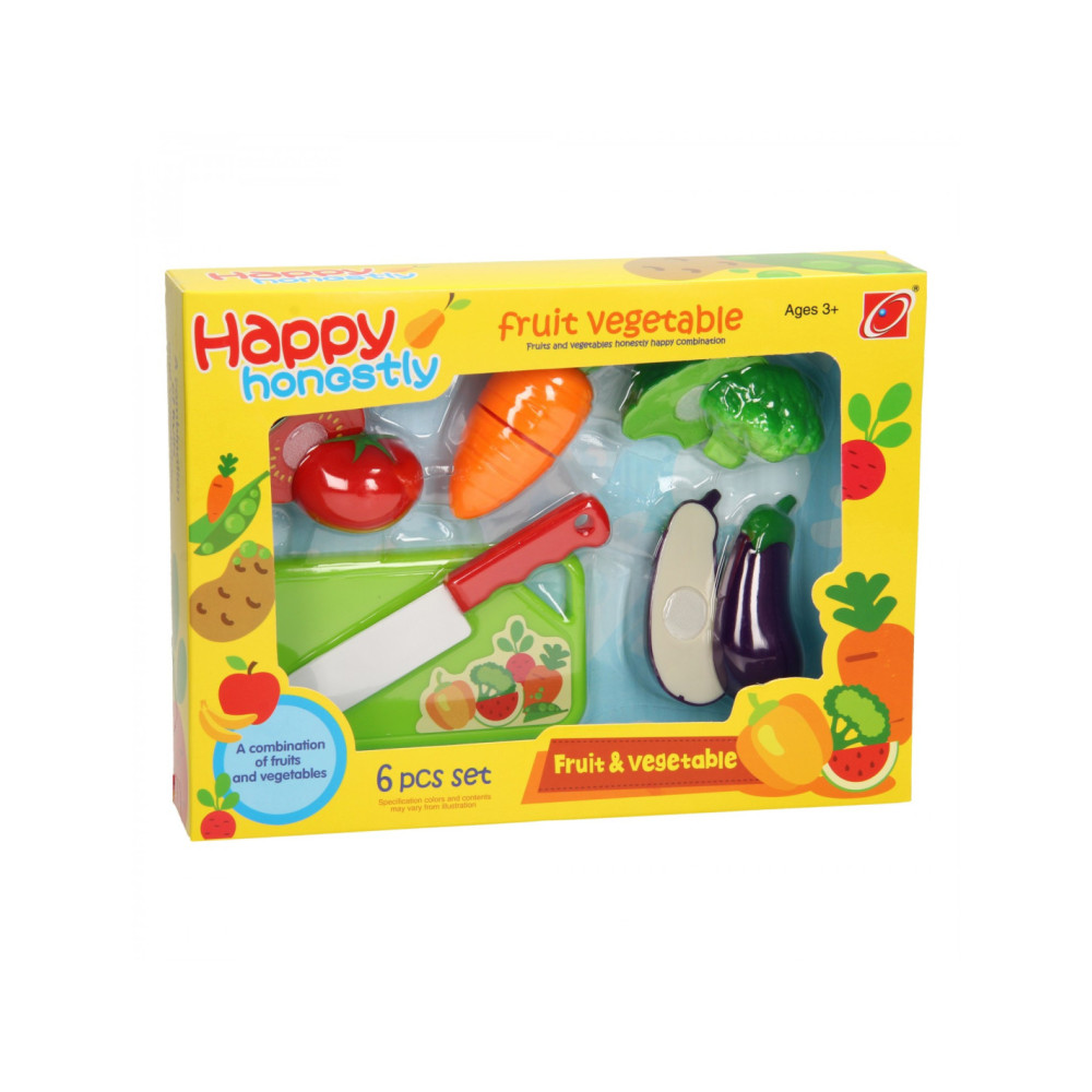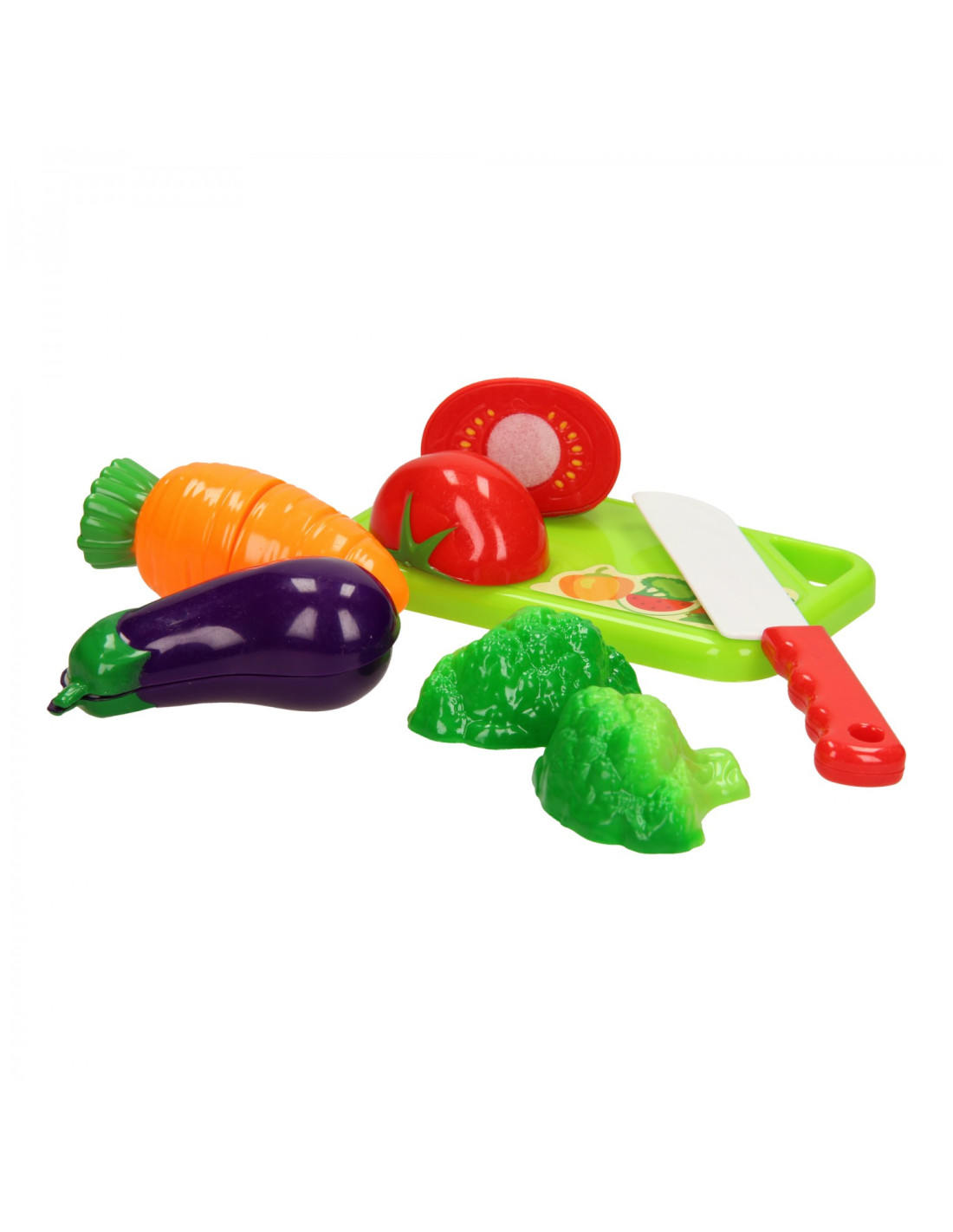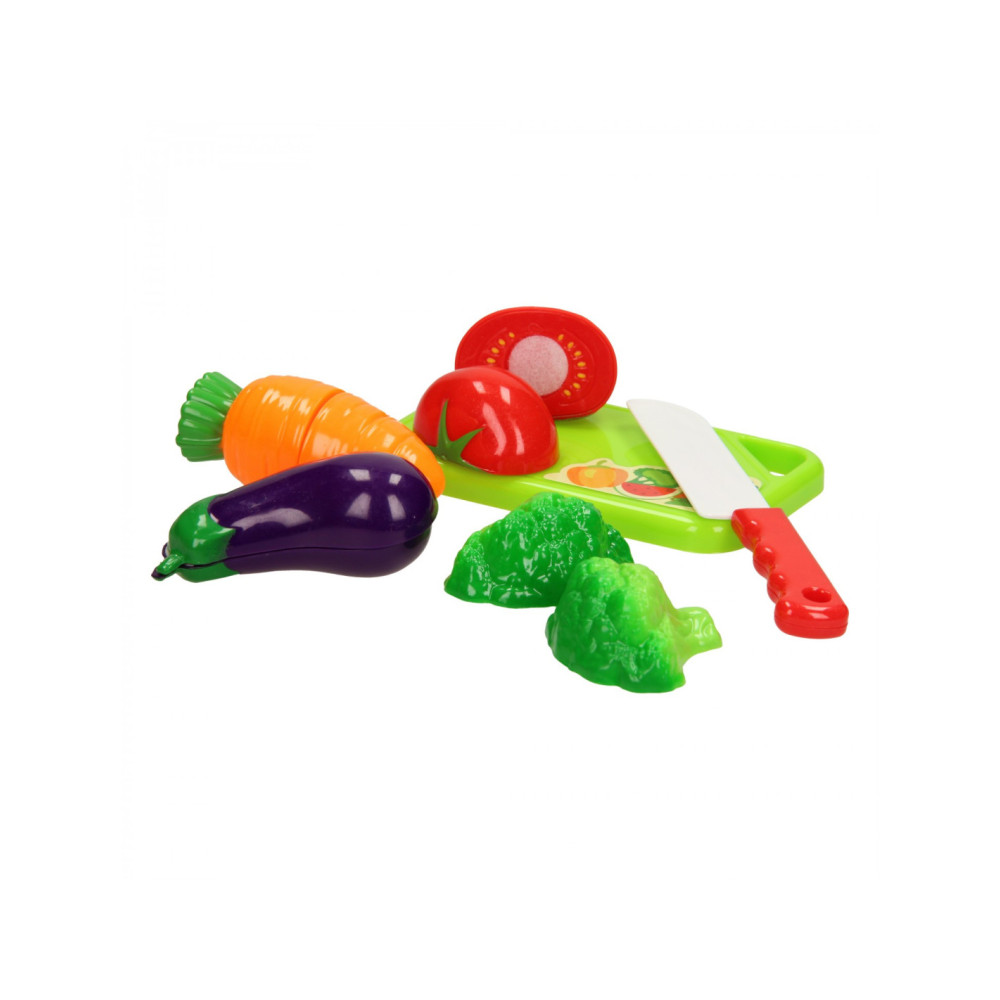 Je eigen groente snijden is met deze Snijgroente in Doos een makkie! De set bestaat uit 10 delen: een kunststoffen snijplankje, mes, tomaat, wortel, broccoli en aubergine. De speelgoedgroentes bestaan uit twee delen die verbonden zijn met een stuk klittenband. Hierdoor kun je de groente eenvoudig doormidden snijden. De Snijgroente in Doos is geschikt voor kinderen vanaf 3 jaar.