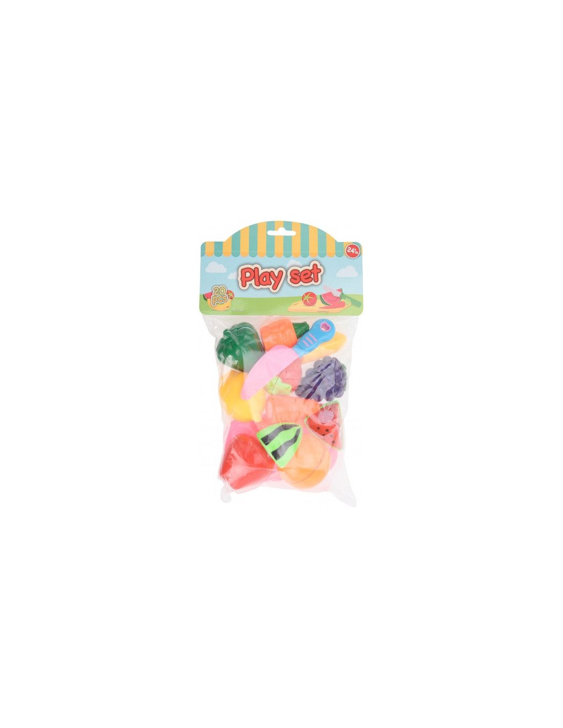 Maak jouw speelgoedkeuken compleet met deze leuke fruitset! De set bevat maar liefst 18 verschillende stukken fruit, zoals halve appels, aardbeien, sinaasappels, citroenen, wortels, paprika's, bananen, meloen en zelfs een druiventros. Alles is mooi vormgegeven en gemaakt van stevig materiaal zodat jouw kind er veilig mee kan spelen.