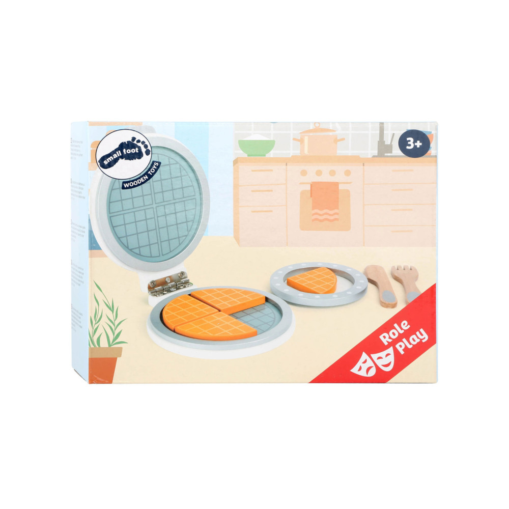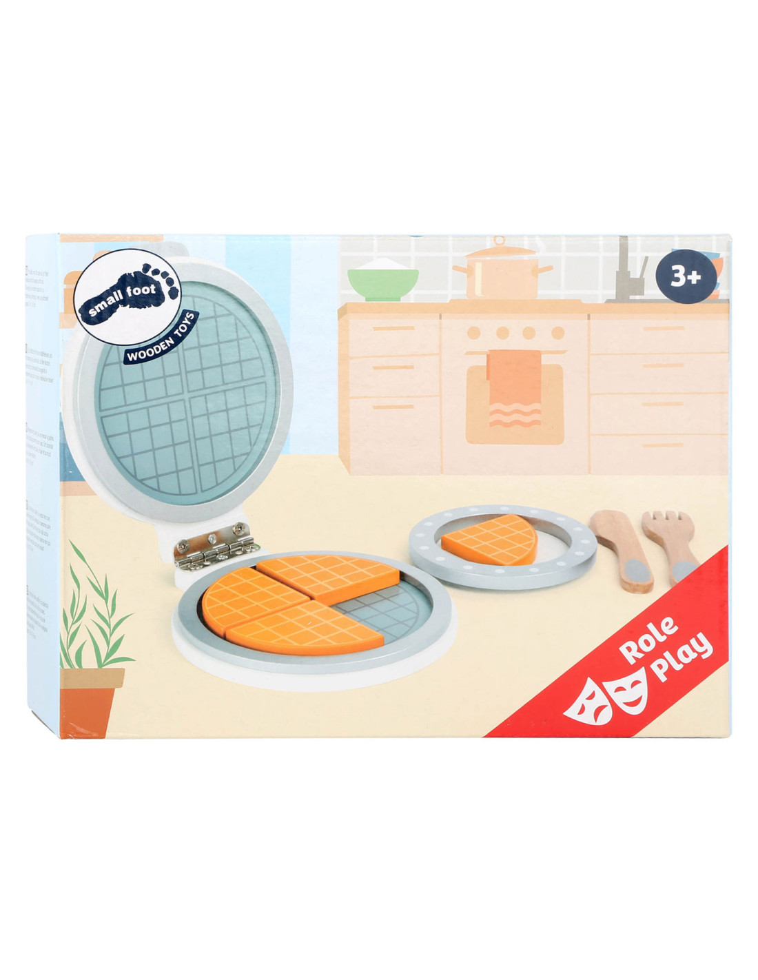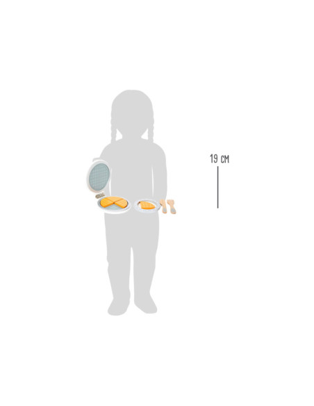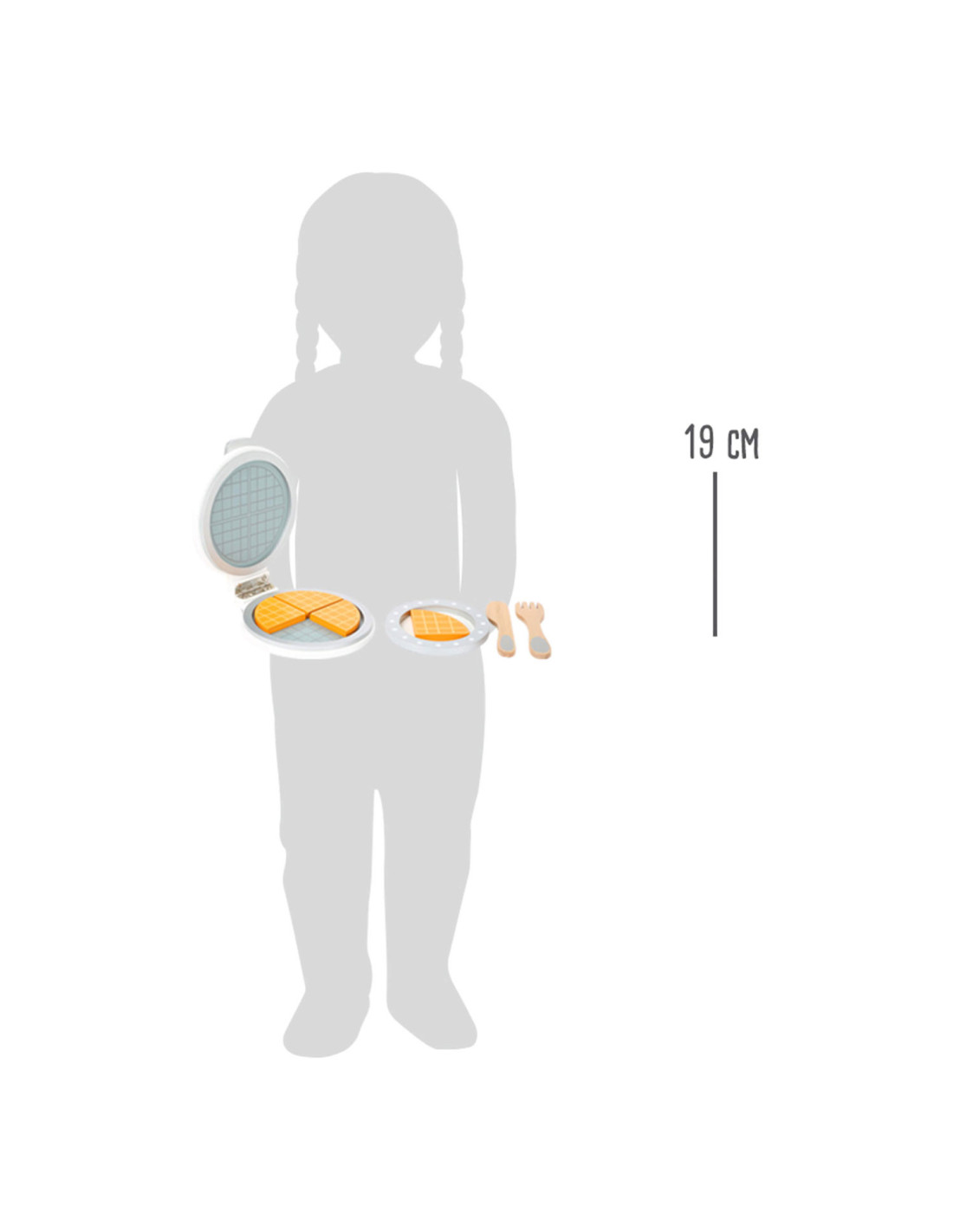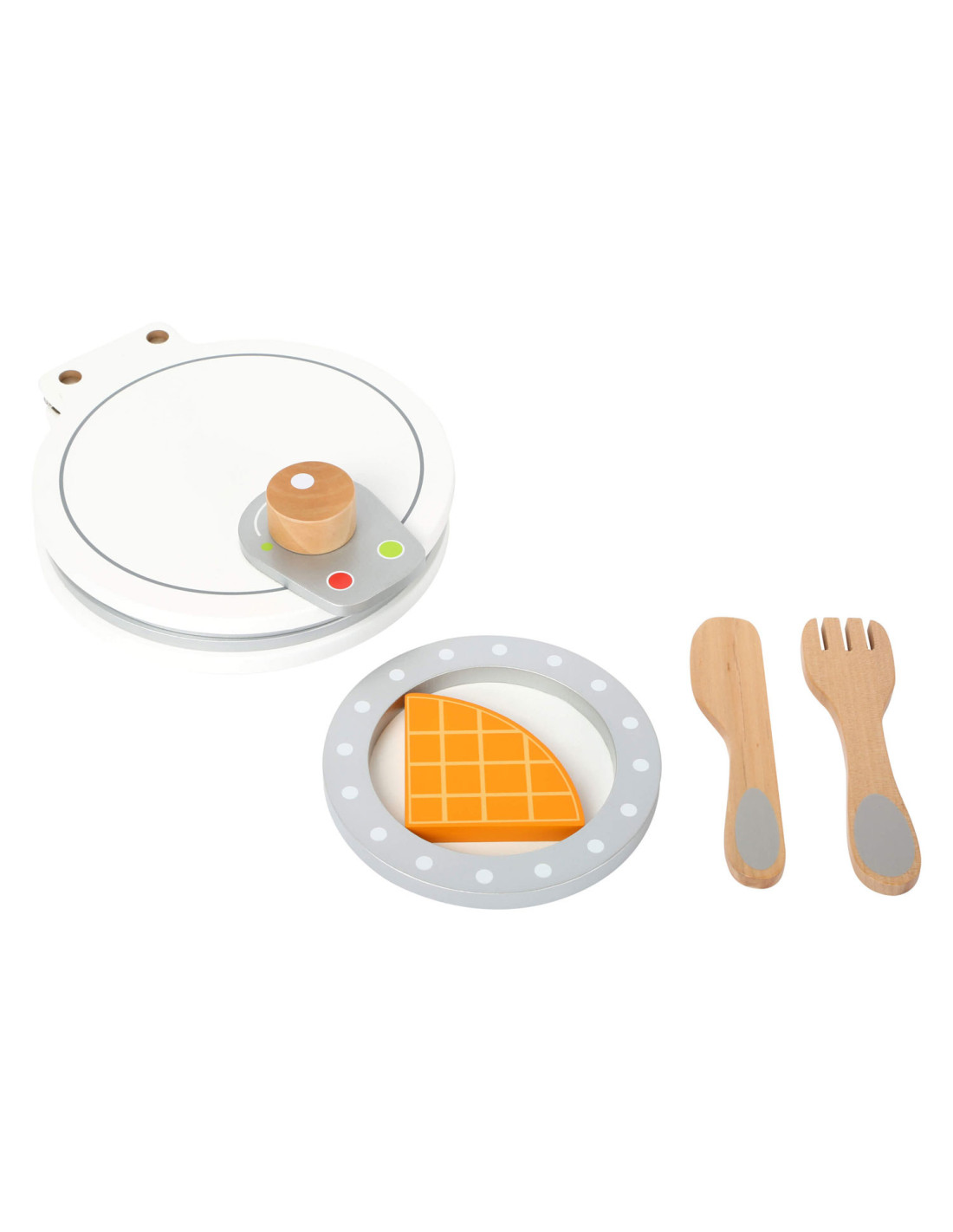 Het is wafeltijd! Alle foodies krijgen hun ontbijt met dit houten wafelijzer. Dit gebruiksvriendelijke keukenapparaat in een modern design hoort thuis in elke speelkeuken! Het oefenwafelijzer wordt geleverd met vier wafelschijven en een bord met bestek. Aan de aan- en uitknop kan worden gedraaid en de kinderen kunnen zelf bepalen of de wafels op zijn of dat ze wat meer tijd nodig hebben. Dus, wie wil er een wafel?