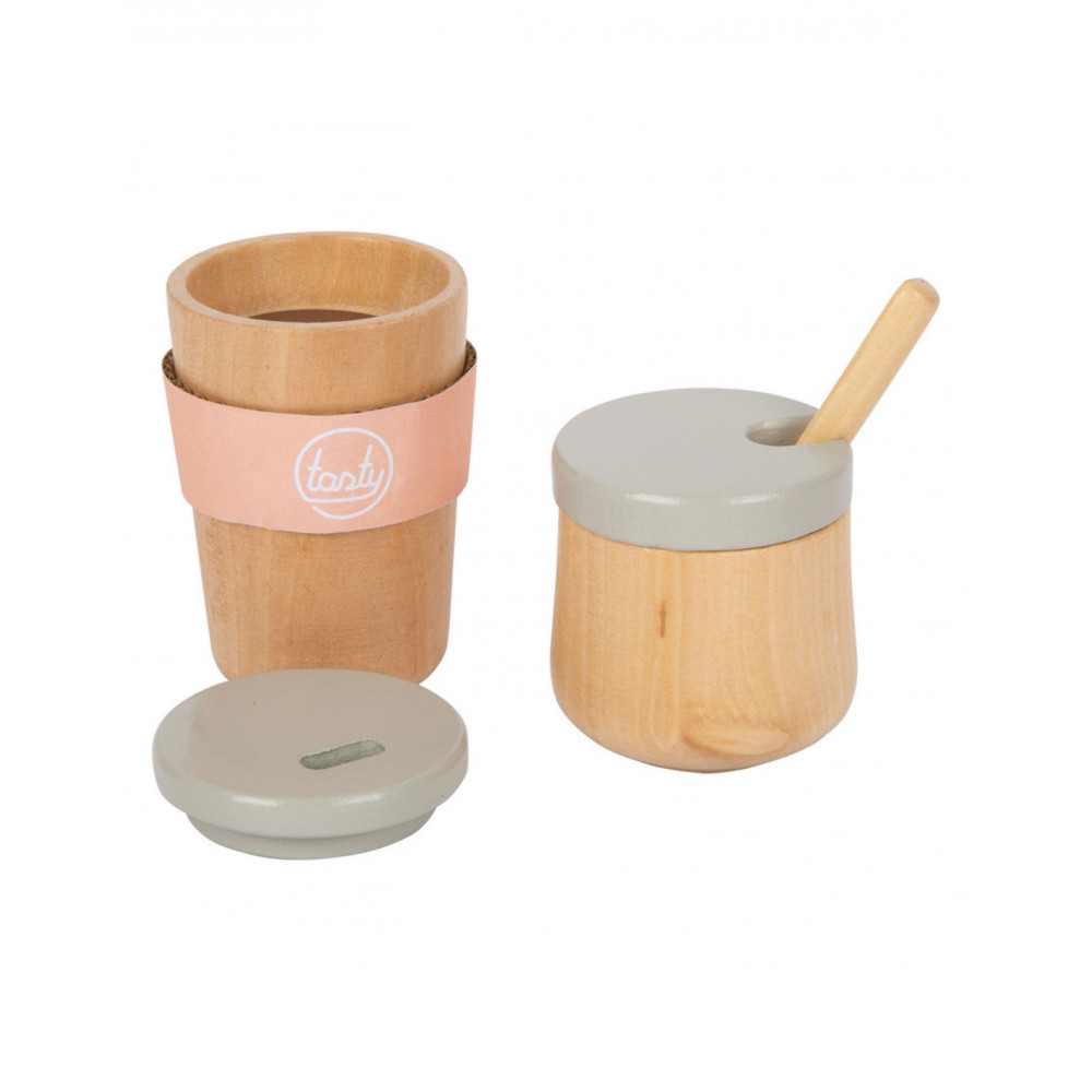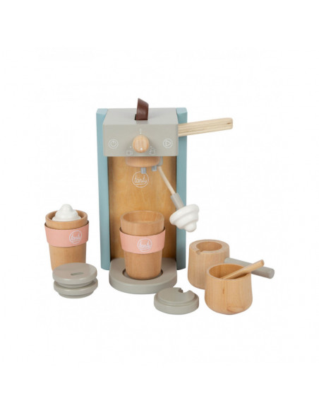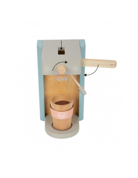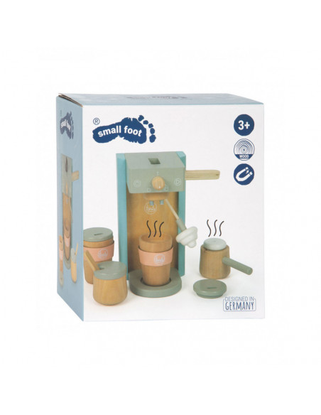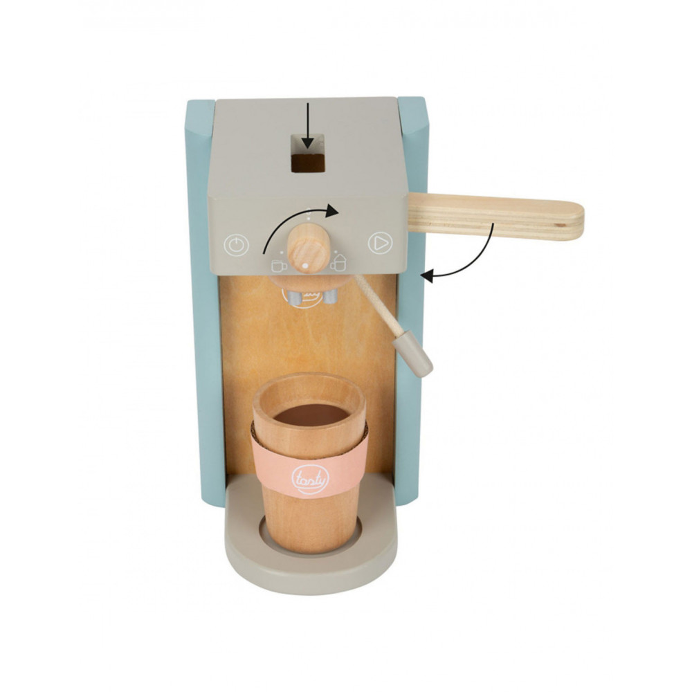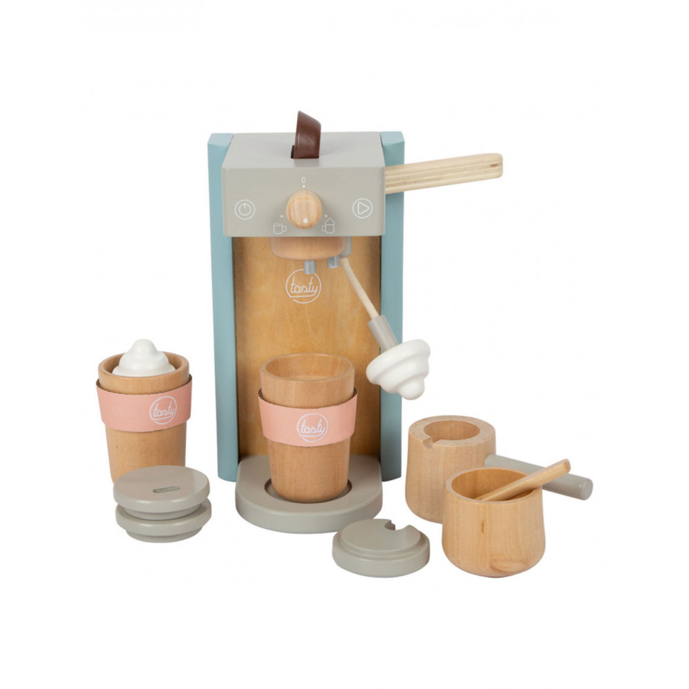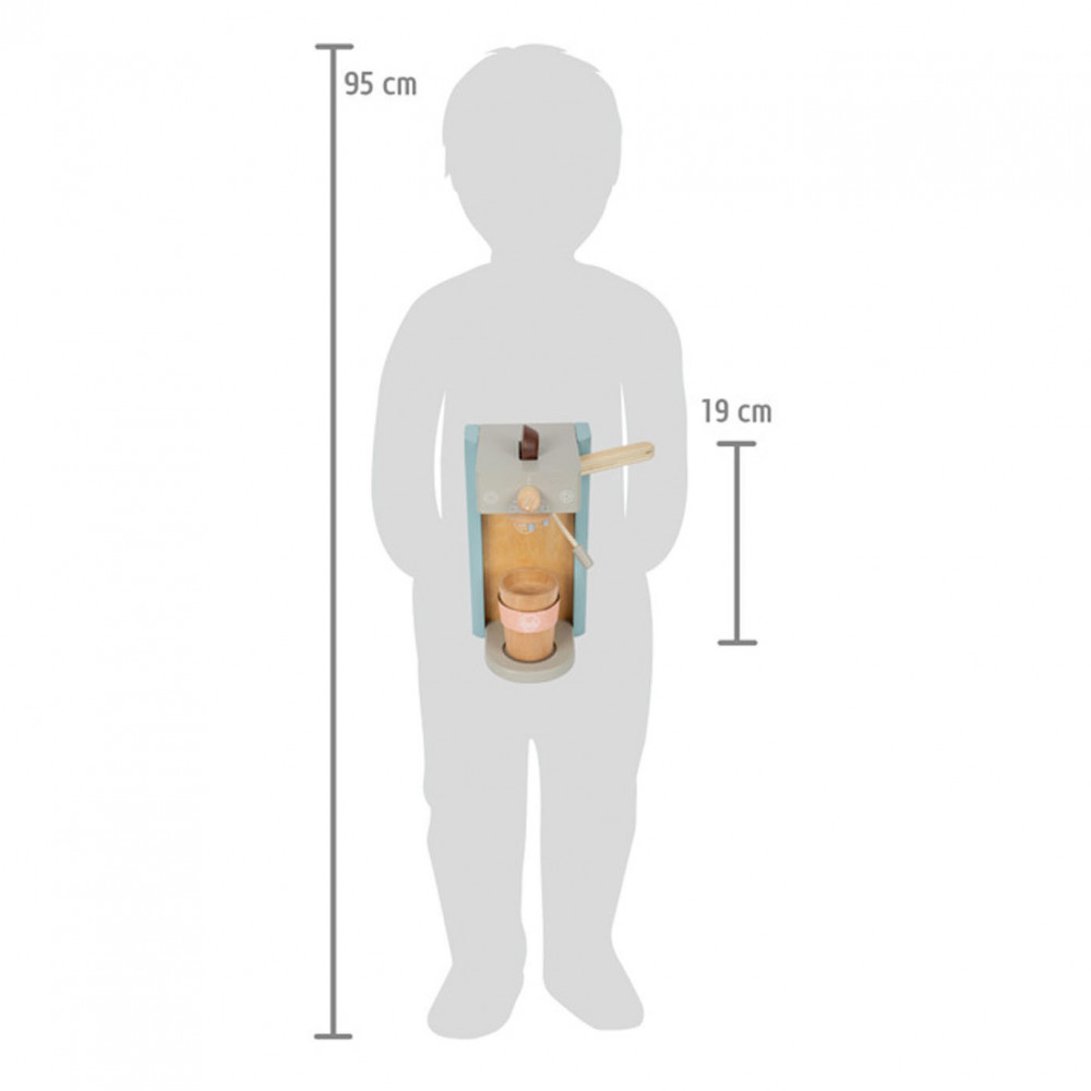 Houten koffiezetapparaat voor jonge barista's! Het koffiezetapparaat is ongeveer 16 x 11 x 19 centimeter groot. Deze baristaset is gemaakt van hout en bevat een magnetische functie. Incl. 2 coffee-to-go kopjes en 1 suikerpot met deksel en lepel. Geschikt voor kinderen vanaf 3 jaar.