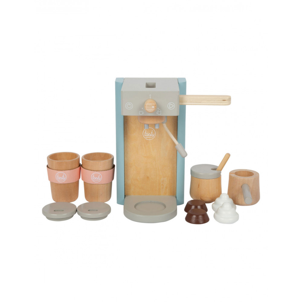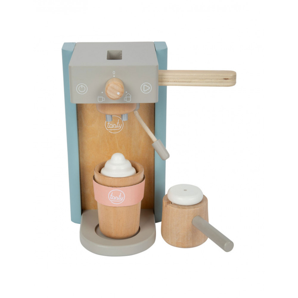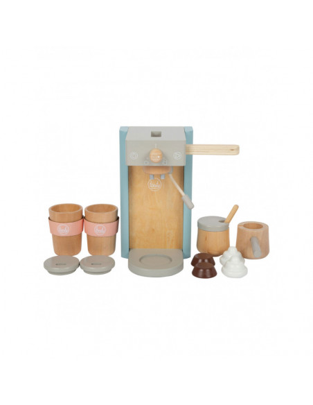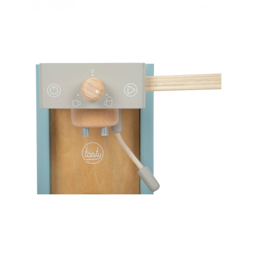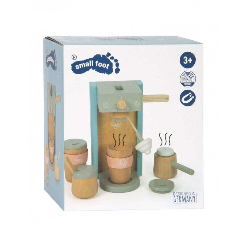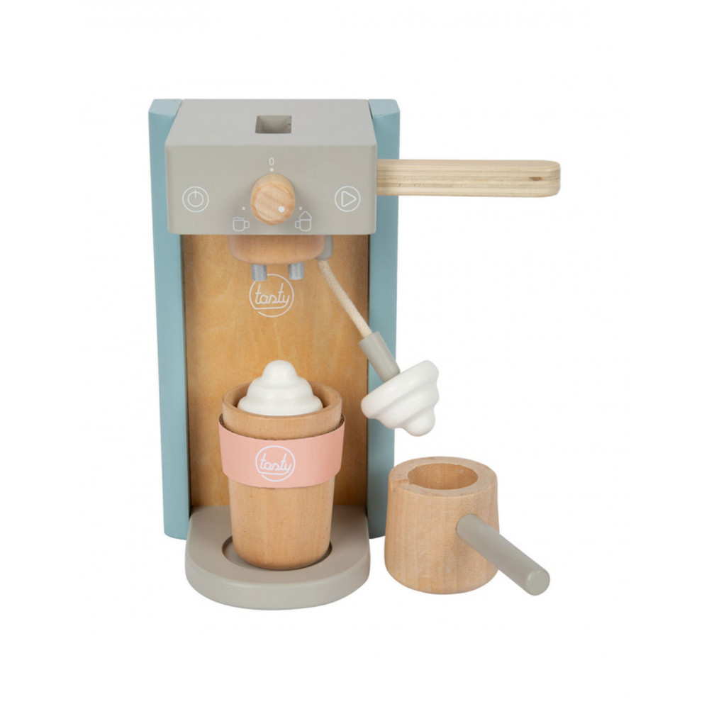 Houten koffiezetapparaat voor jonge barista's! Het koffiezetapparaat is ongeveer 16 x 11 x 19 centimeter groot. Deze baristaset is gemaakt van hout en bevat een magnetische functie. Incl. 2 coffee-to-go kopjes en 1 suikerpot met deksel en lepel. Geschikt voor kinderen vanaf 3 jaar.