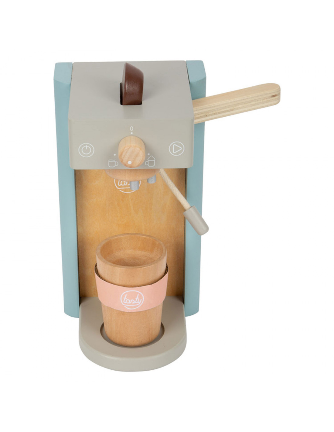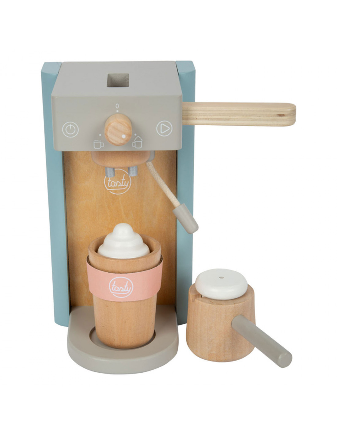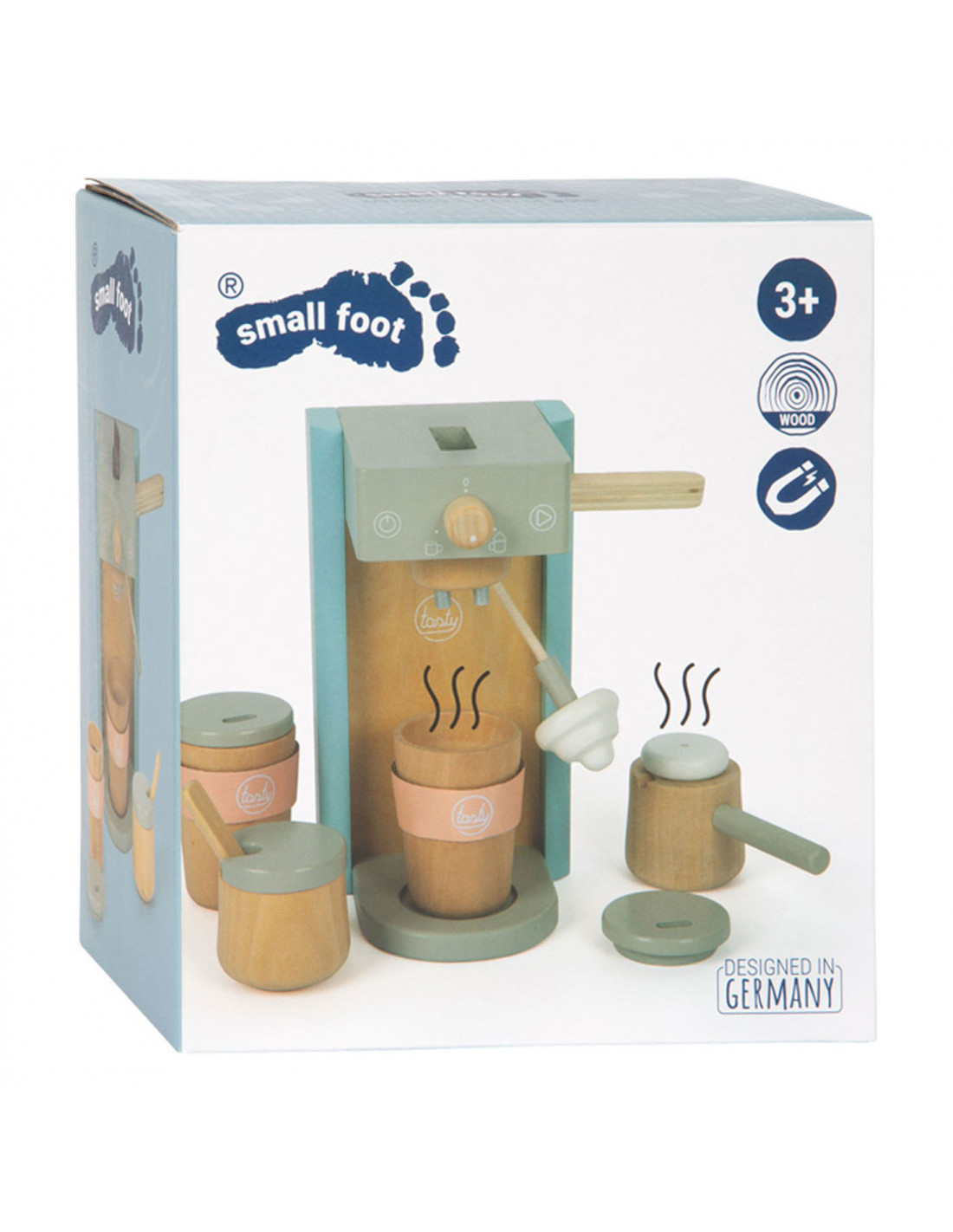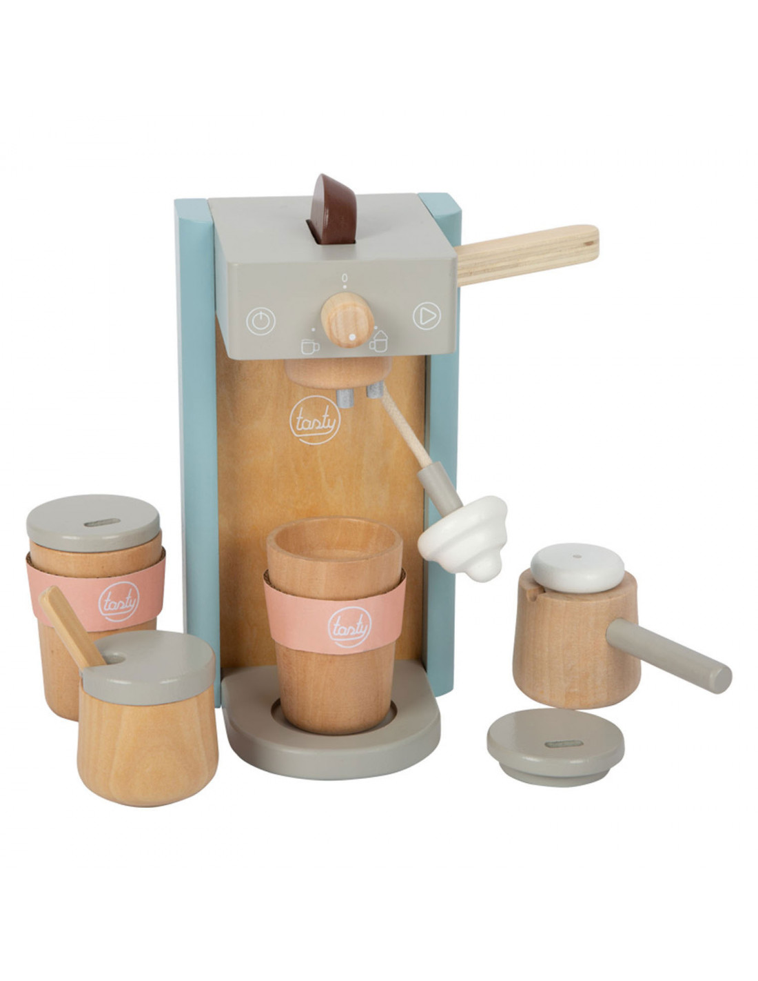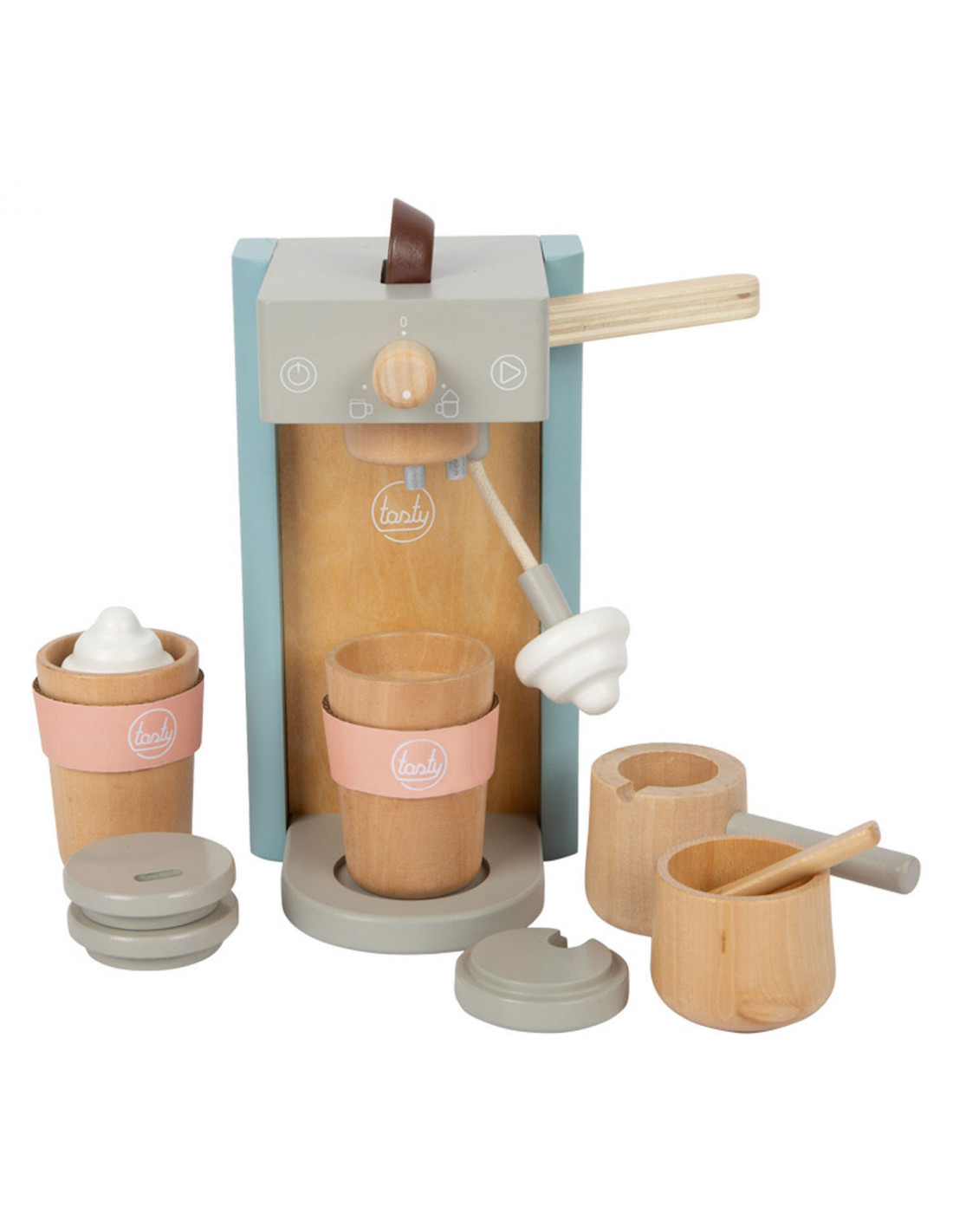 Houten koffiezetapparaat voor jonge barista's! Het koffiezetapparaat is ongeveer 16 x 11 x 19 centimeter groot. Deze baristaset is gemaakt van hout en bevat een magnetische functie. Incl. 2 coffee-to-go kopjes en 1 suikerpot met deksel en lepel. Geschikt voor kinderen vanaf 3 jaar.