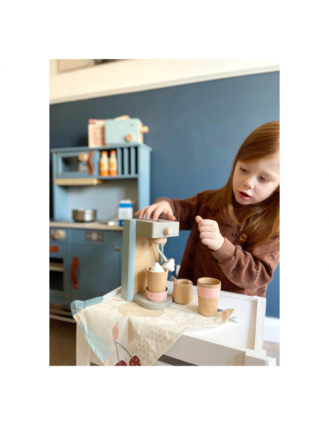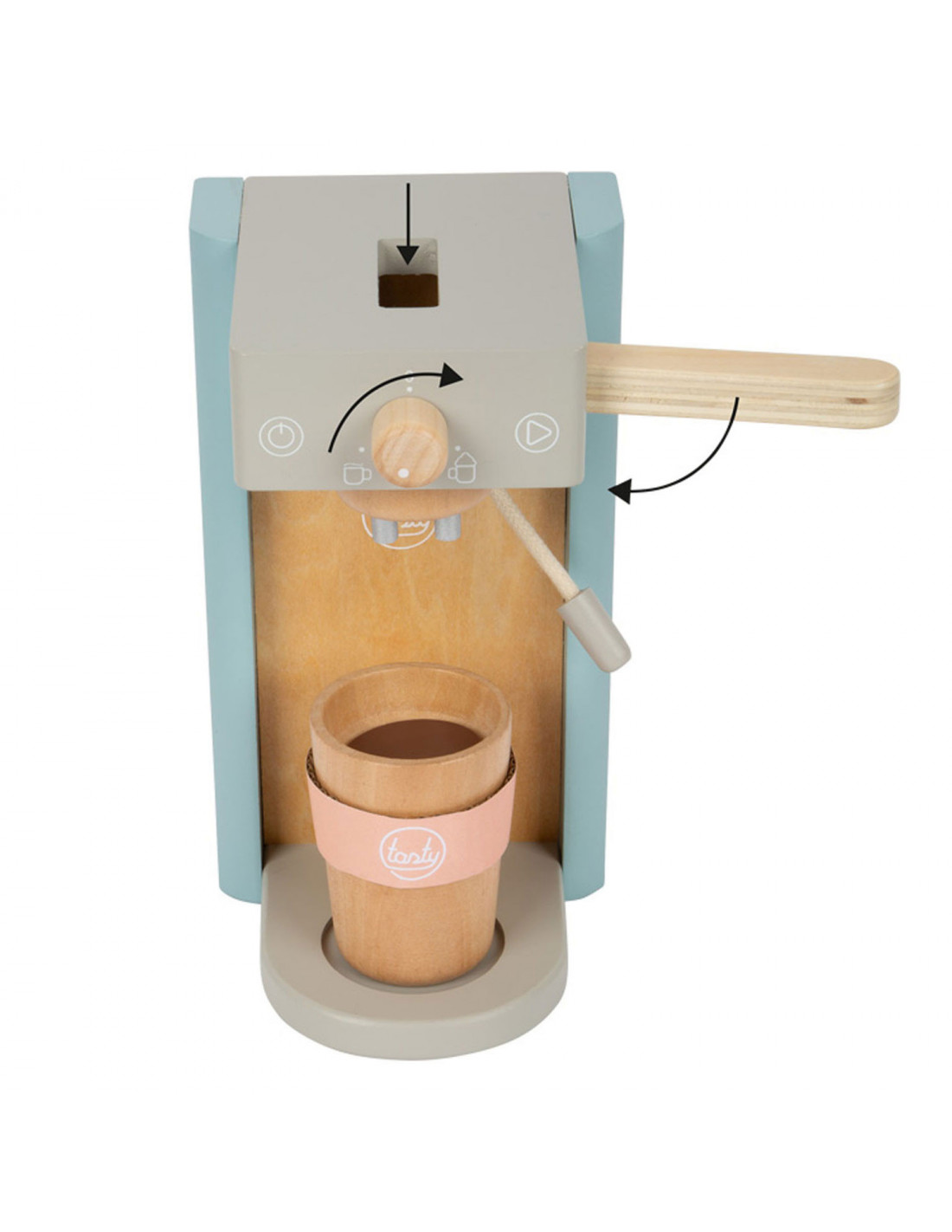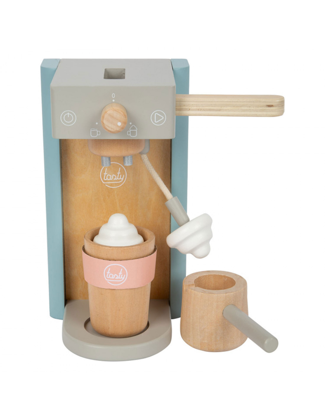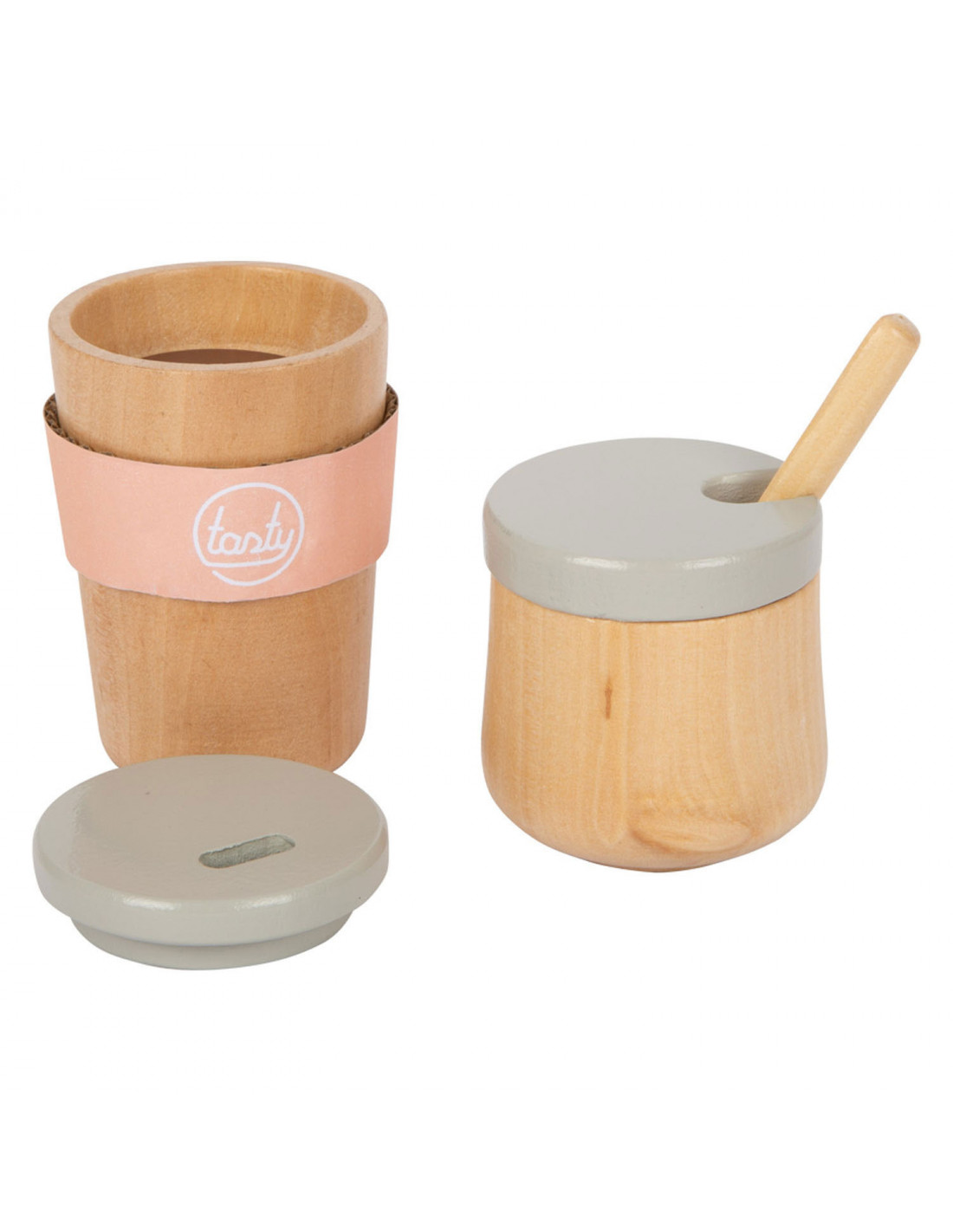 Houten koffiezetapparaat voor jonge barista's! Het koffiezetapparaat is ongeveer 16 x 11 x 19 centimeter groot. Deze baristaset is gemaakt van hout en bevat een magnetische functie. Incl. 2 coffee-to-go kopjes en 1 suikerpot met deksel en lepel. Geschikt voor kinderen vanaf 3 jaar.