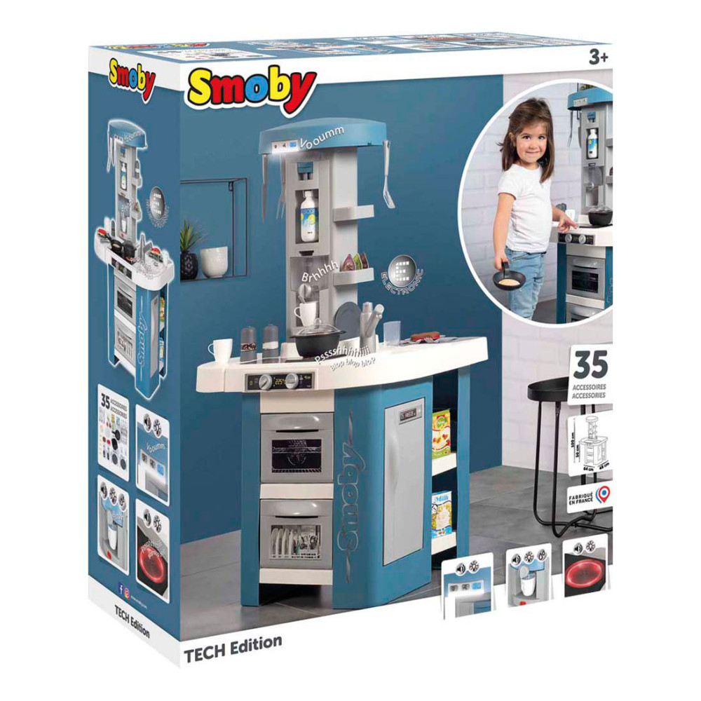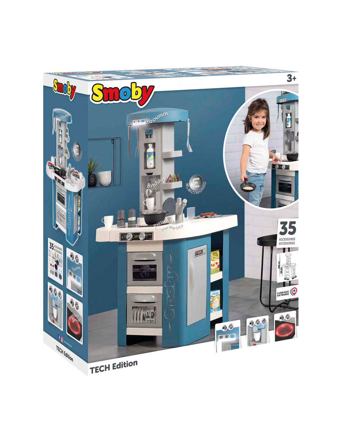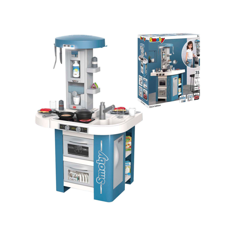 Tech speelkeuken met 35 accessoires. De keuken heeft een formaat van 48x64x100cm en is geschikt voor kinderen vanaf 3 jaar.