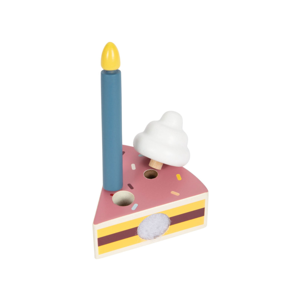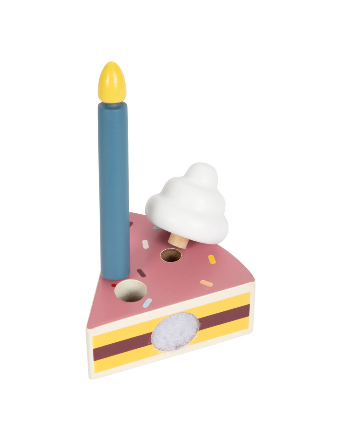 Een taart voor een verjaardag is essentieel! Of het nu gaat om decoratie voor de verjaardagstafel of voor een rollenspel in de kinderkamer - deze verjaardagstaart met crème en kleurrijke hagelslag van FSC® 100%-gecertificeerd hout is een blikvanger op elke salontafel! Deze speelset bestaat uit 6 stukjes taart, een verwijderbaar toefje slagroom, kaarsen en de cijfers 1-5 en biedt volop mogelijkheden om te spelen en te versieren. Klittenbandstukken houden de toppings en individuele cakeplakken bij elkaar, die gemakkelijk door de taartschep kunnen worden gescheiden en uit de taartvorm kunnen worden gehaald, waardoor de motoriek en de hand-oogcoördinatie op een leuke manier worden getraind.