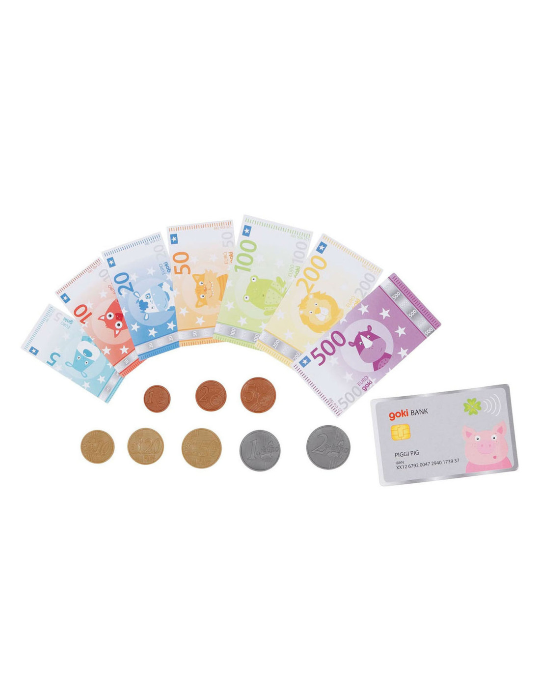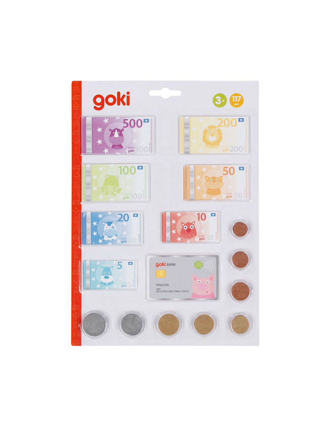 Spelenderwijs leren omgaan met geld en cijfers: wat zou een winkel zijn zonder geld? Door speelse imitatie van alledaagse situaties worden ook sociale interacties aangeleerd. Bevat bankbiljetten, munten en een creditcard met schattige dierenvriendjes.