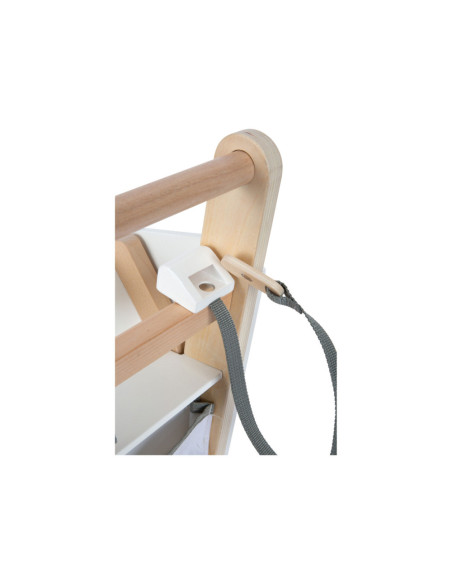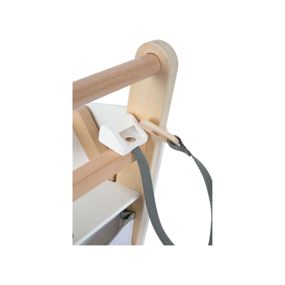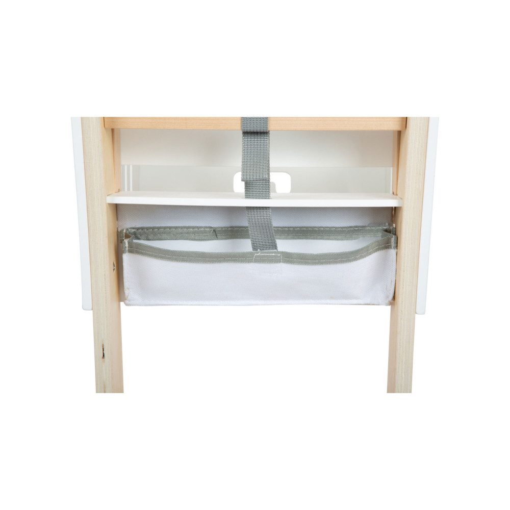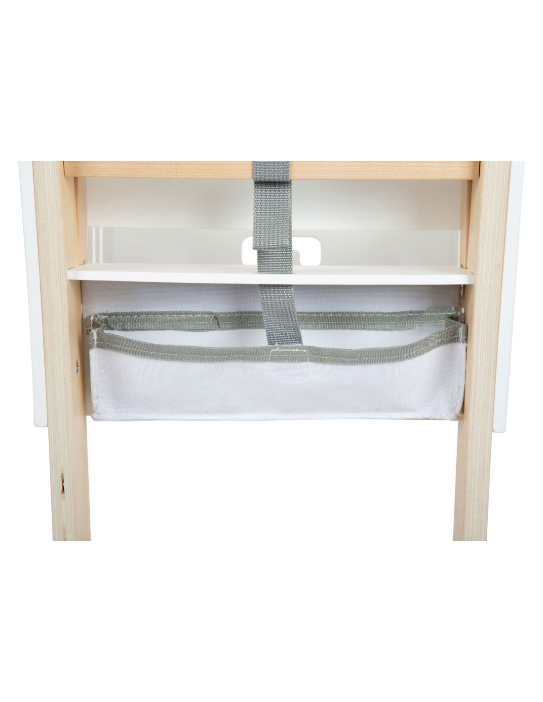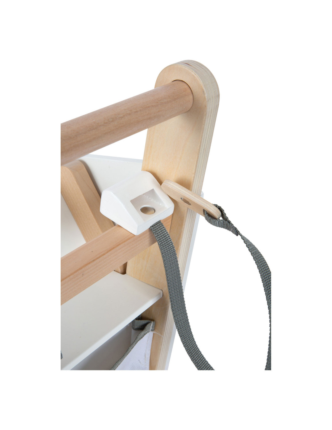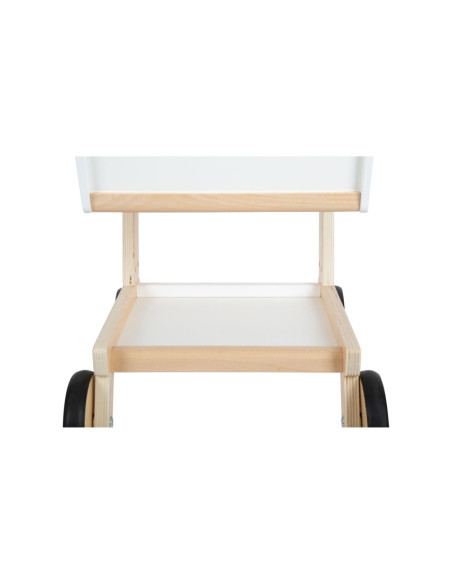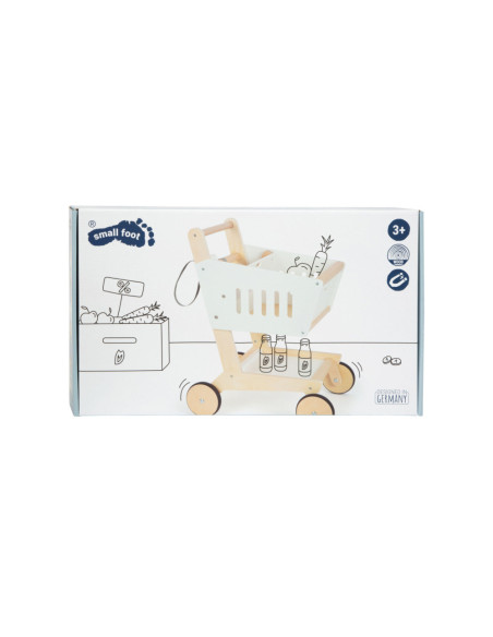 Maak van de volgende shopping trip een ware shopping experience met deze speelgoed boodschappentrolley van stevig hout met rubberen wielen. Net als in een echte supermarkt steek je de magnetische winkelchip in de houder en het kopen kan beginnen! De ruime trolleymand biedt ook voldoende ruimte als er veel op het boodschappenlijstje staat en het onderste gedeelte onder de mand kan worden gebruikt om bijvoorbeeld drankkratten in te vervoeren. Knuffels, poppen en hun vriendjes kunnen in het verplaatsbare kinderzitje rijden en speelgeld voor de boodschappen kan veilig opgeborgen worden in het kleine tasje op de trolley. De uitsparing aan de voorzijde van de trolley kan worden gebruikt om een boodschappentas op te hangen. De met rubber beklede wielen laten geen sporen na op gevoelige vloeroppervlakken en maken nauwelijks geluid, waardoor deze stevige staande boodschappentrolley een favoriet van het hele gezin is bij rollenspellen in de winkel. Het is extra gemakkelijk om te duwen met de zacht aanvoelende houten grepen! En een tip: deze moderne, genderneutrale winkelgenoot is ook nog eens heel handig om thuis snel de kinderkamer op te ruimen!