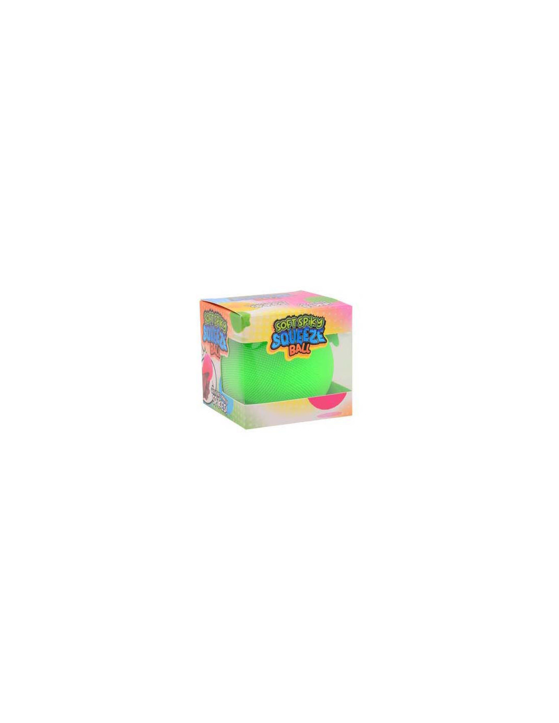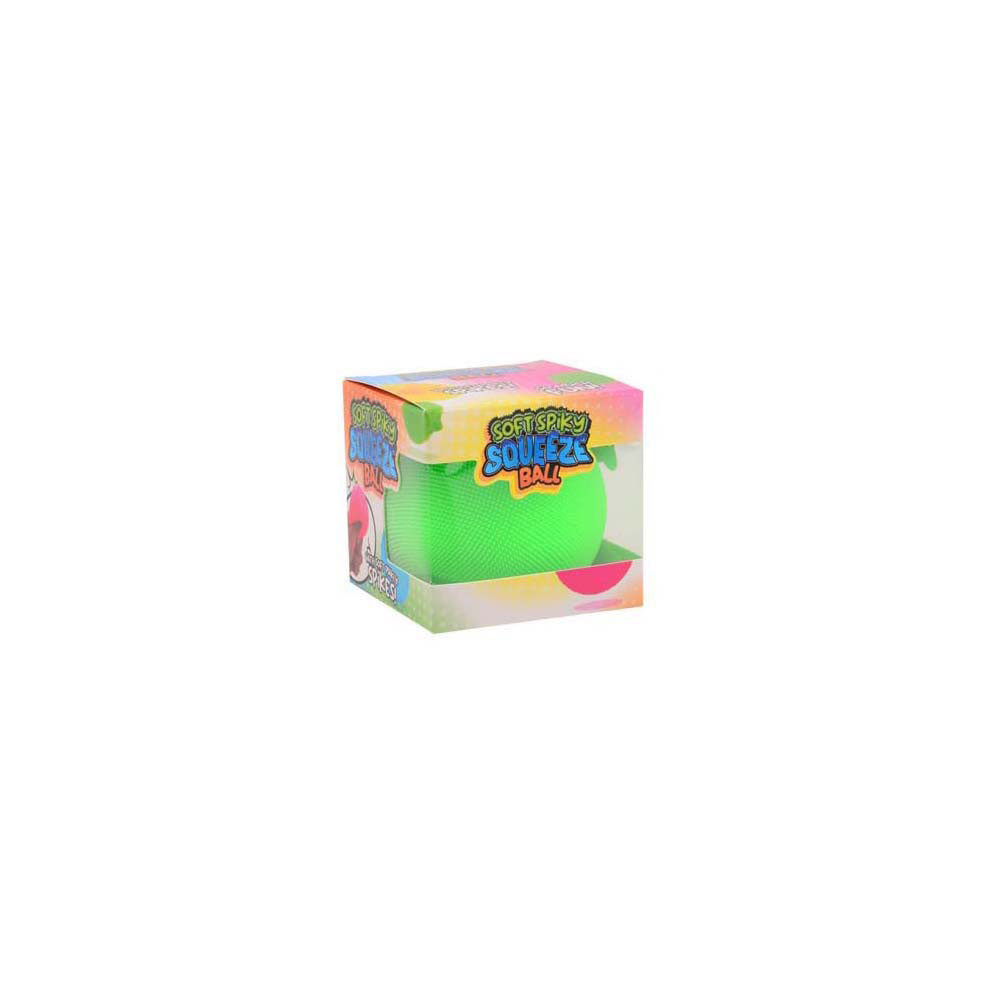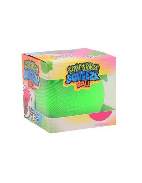 Zachte squeezebal met korte stekeltjes. Afmetingen: ca. 7 centimeter. Geschikt vanaf 3 jaar.