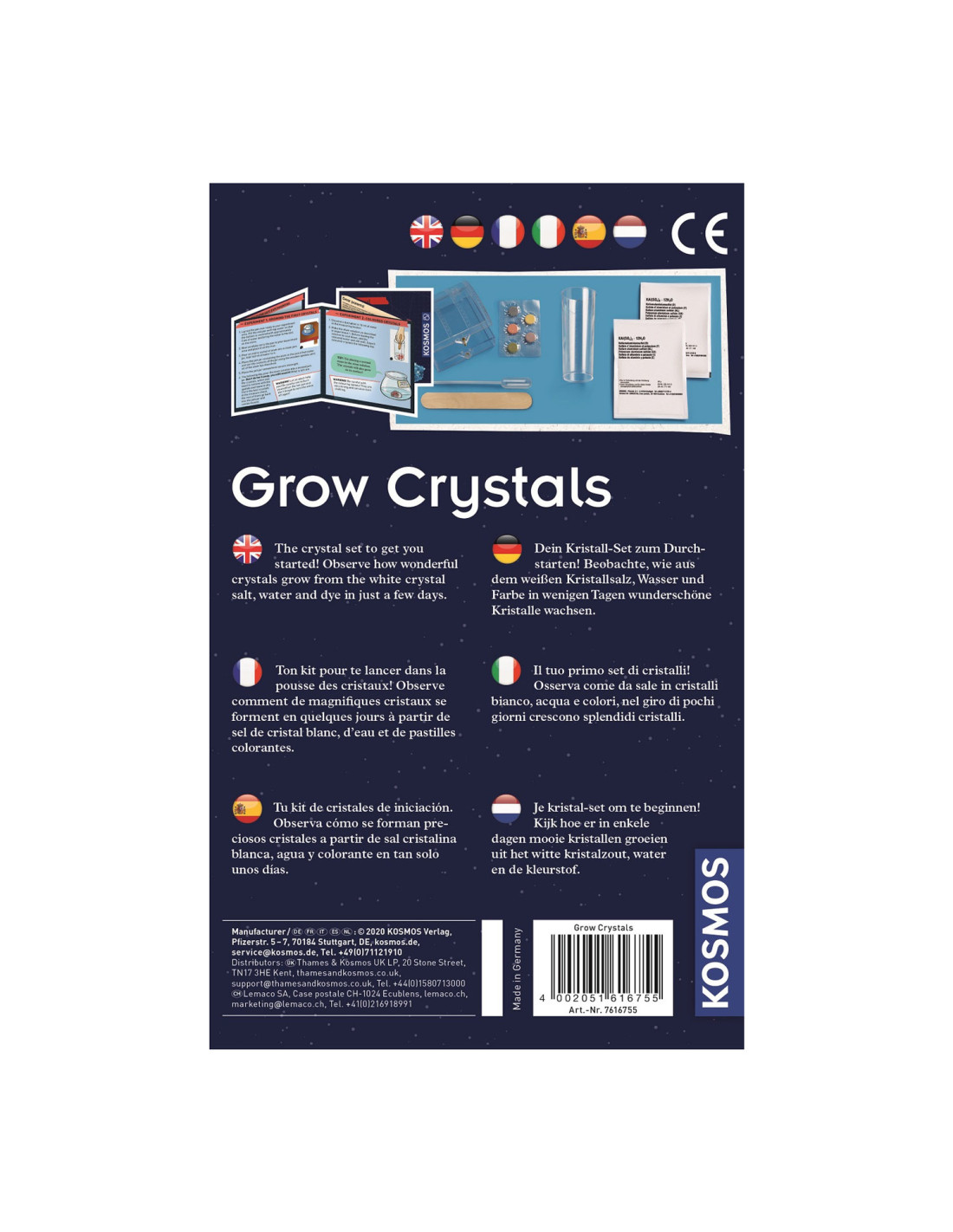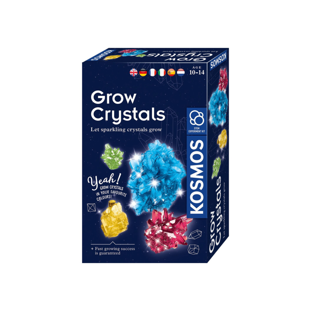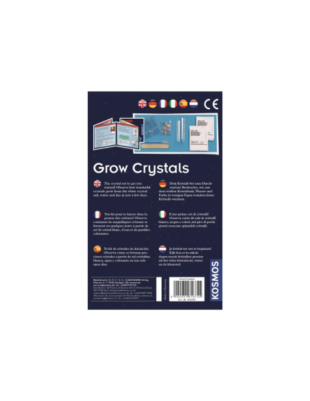 Je kristalset om mee te beginnen! Kijk hoe er in enkele dagen mooie kristallen groeien uit het witte kristalzout, water en de kleurstof.
