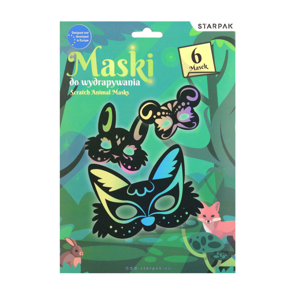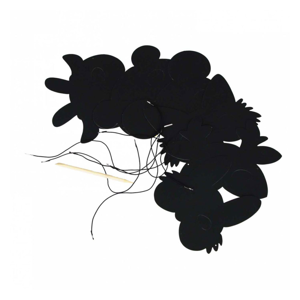 Zwarte kras maskers in de vorm van een dier. Geschikt voor kinderen vanaf 3 jaar.