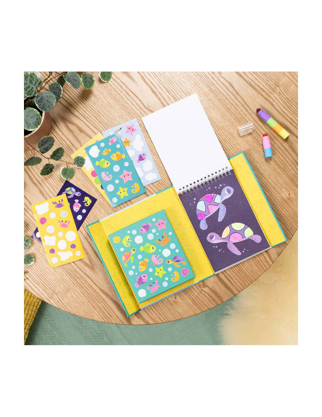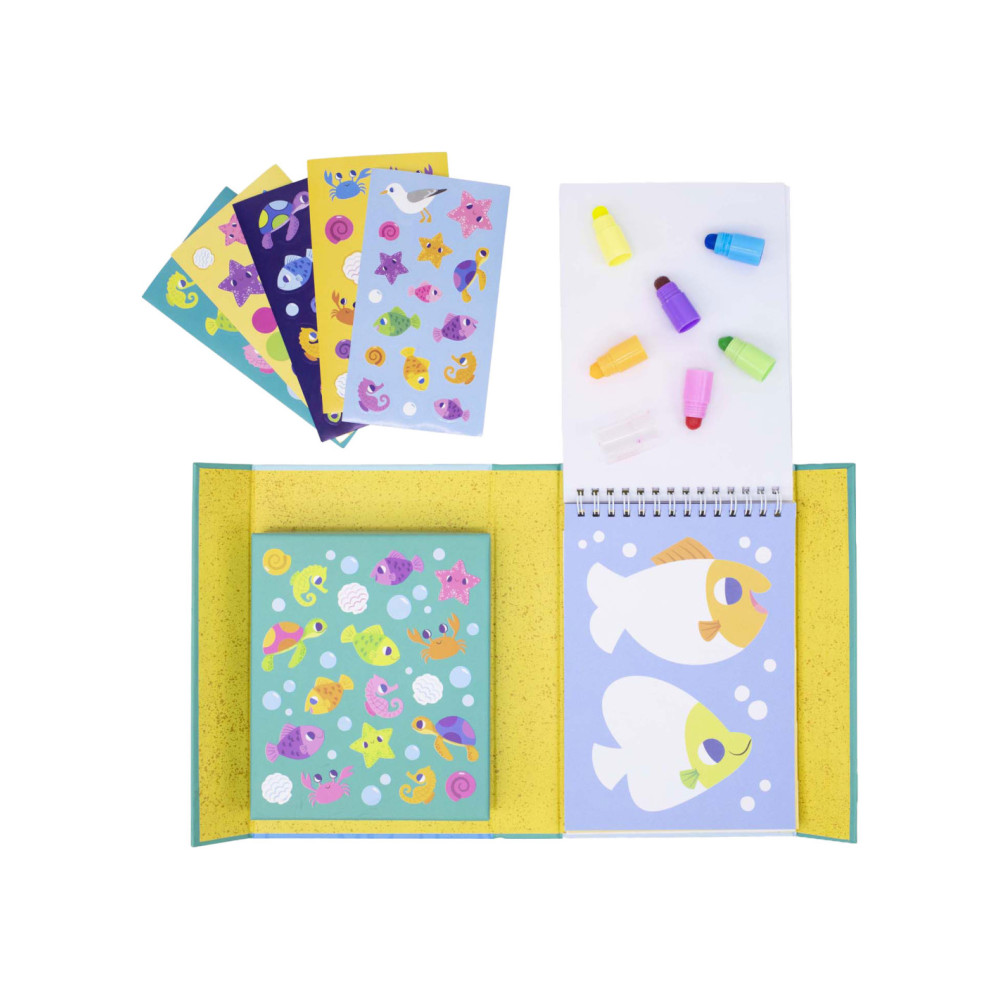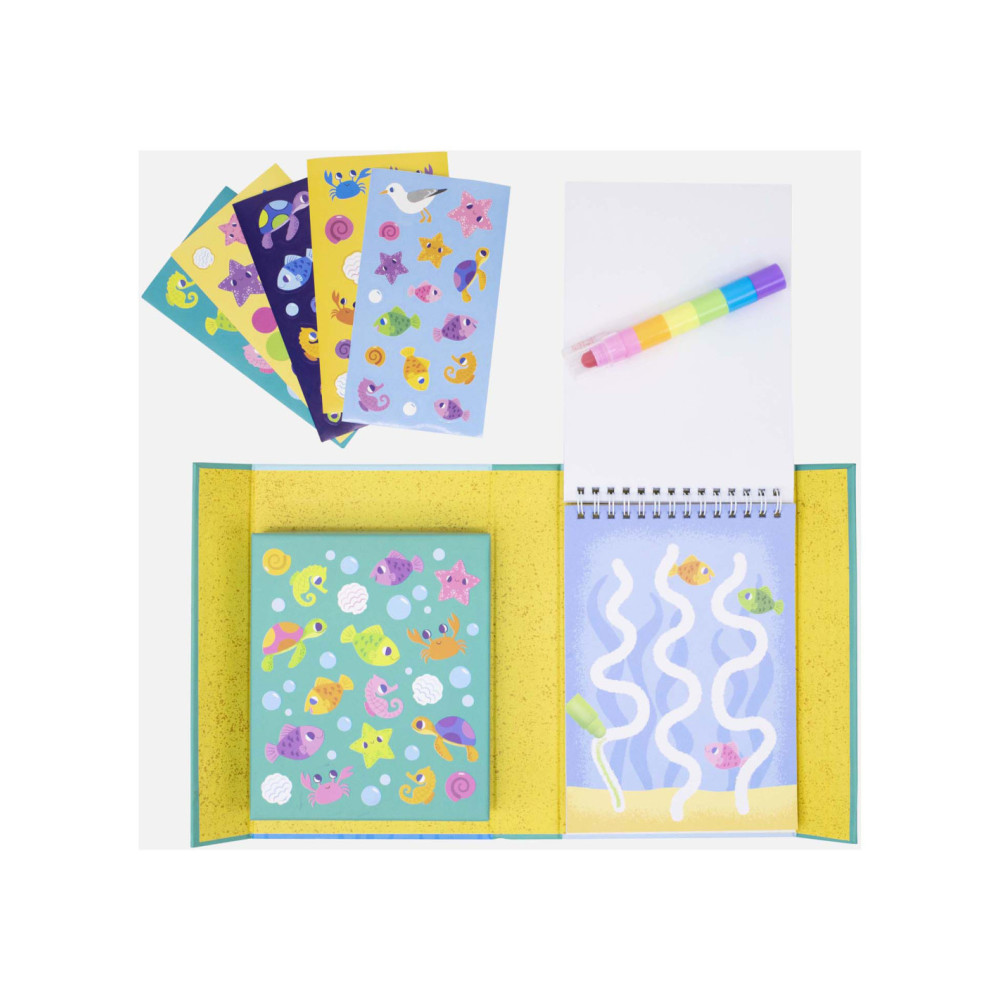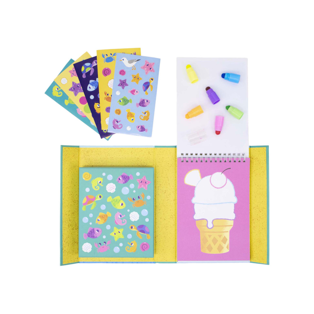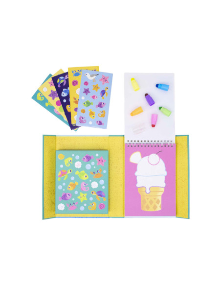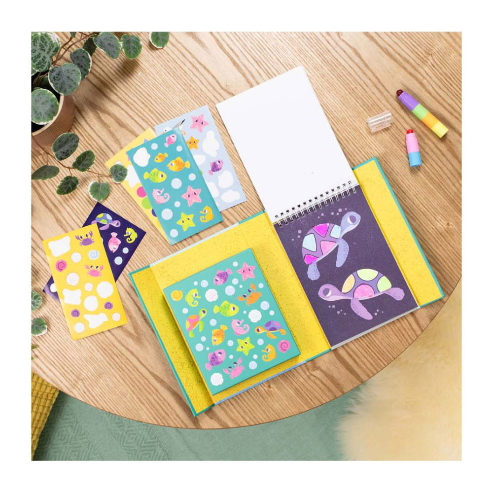 • Complete set: Bevat 8 waskrijtjes en een kleurboek boordevol strand- en zomerillustraties, allemaal handig verpakt voor creatieve uitspattingen thuis of onderweg.
