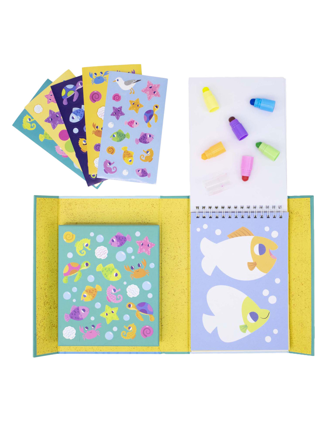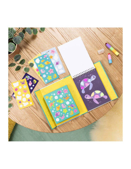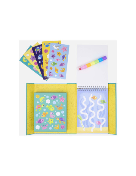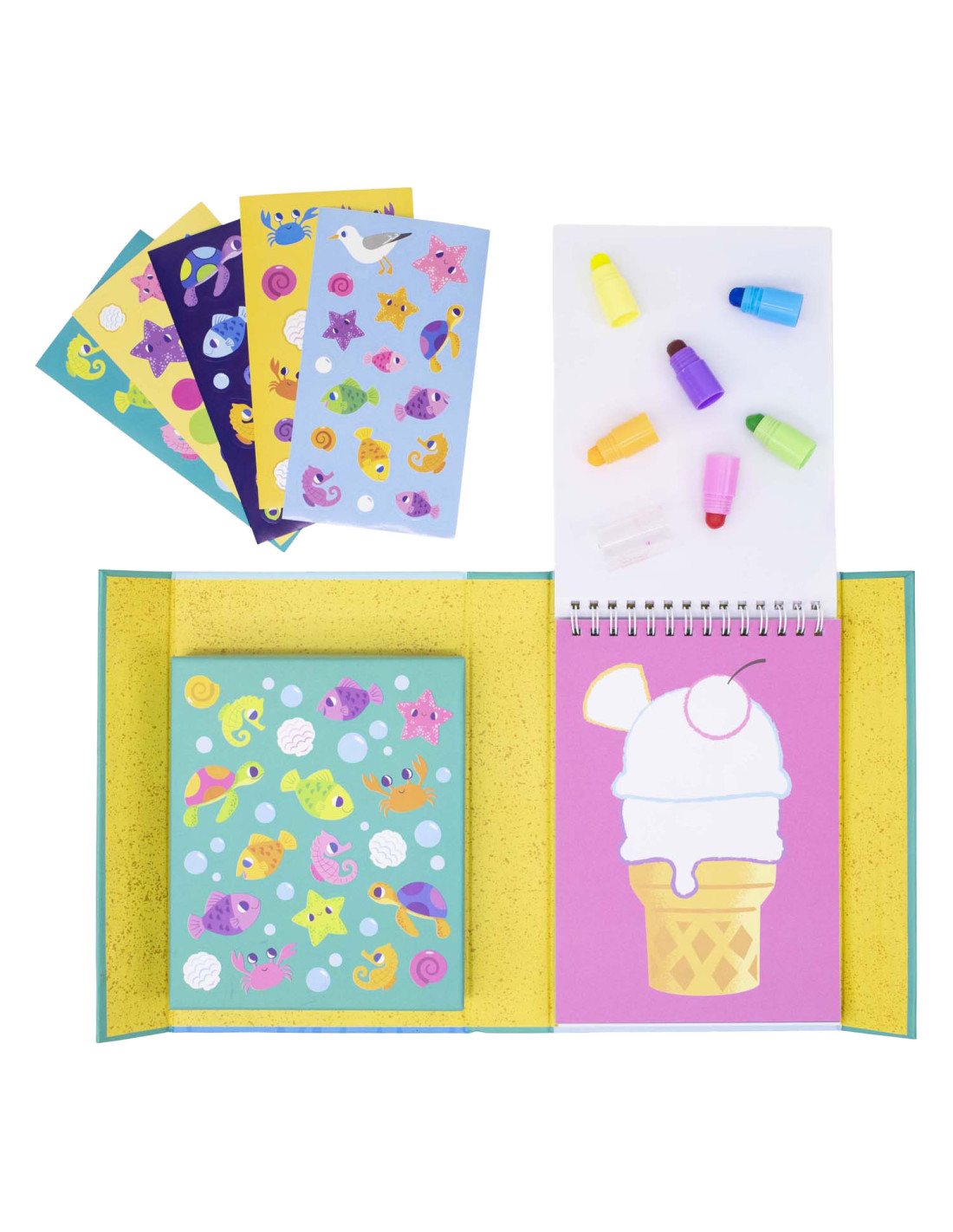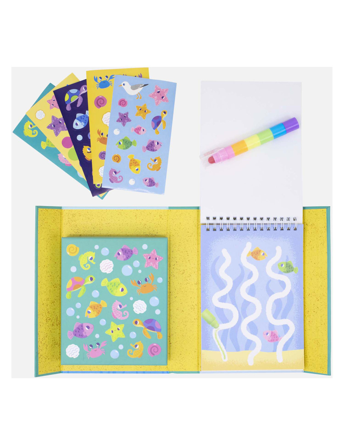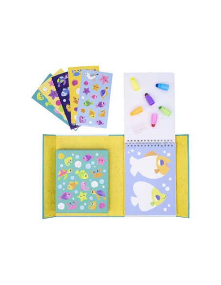 • Complete set: Bevat 8 waskrijtjes en een kleurboek boordevol strand- en zomerillustraties, allemaal handig verpakt voor creatieve uitspattingen thuis of onderweg.