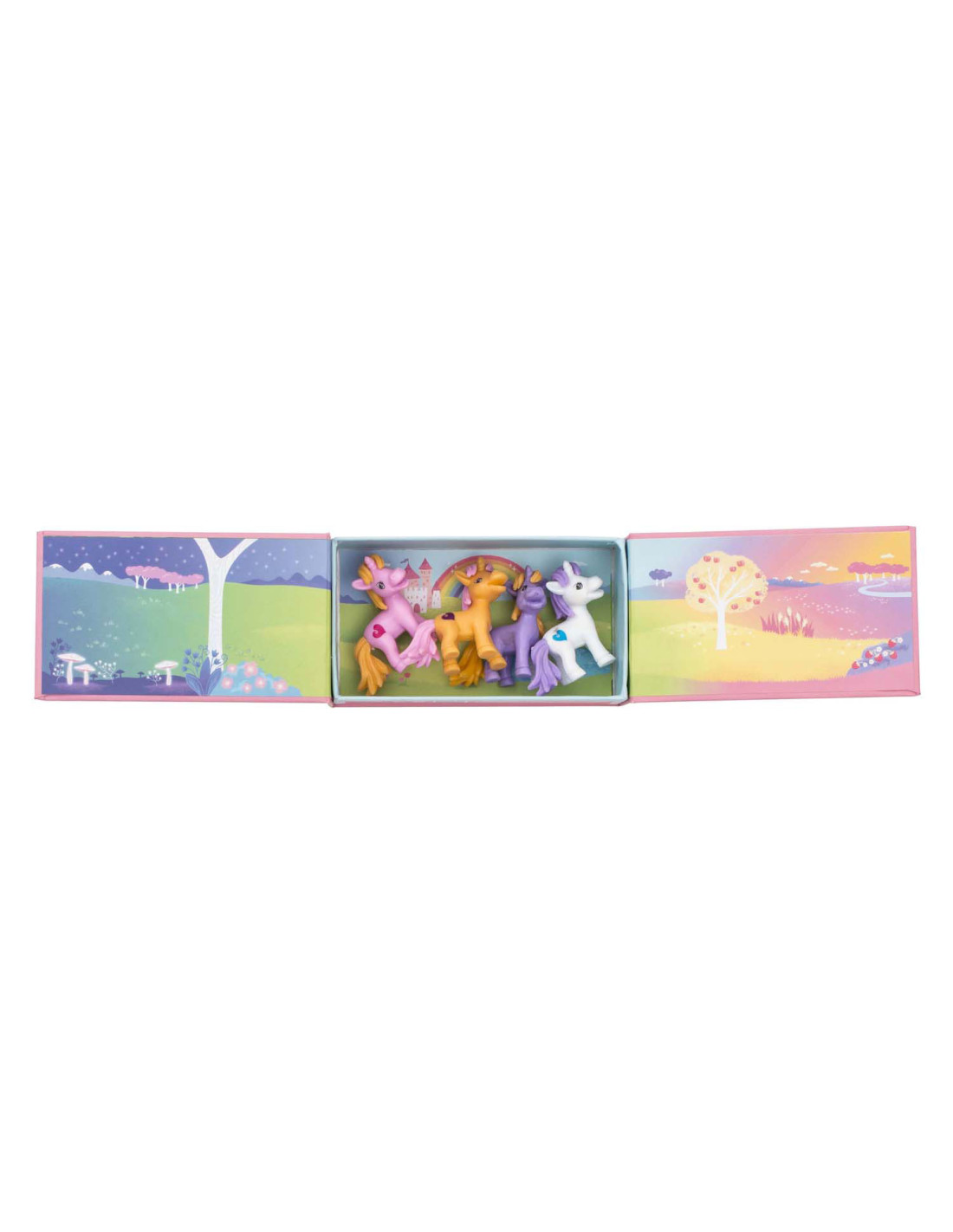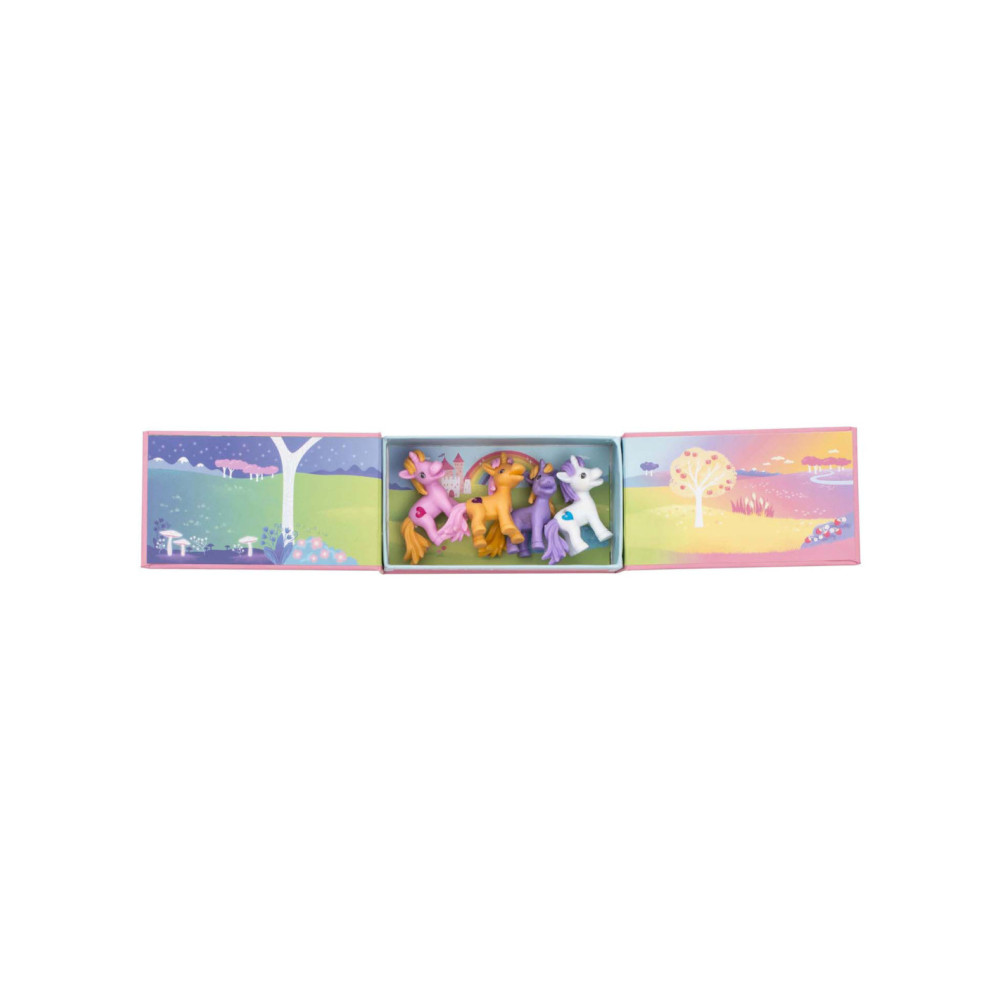 • Creatief Spelen: Kinderen kunnen hun eigen magische verhalen en avonturen bedenken terwijl ze spelen met de eenhoorns, wat hun creativiteit en fantasie bevordert.