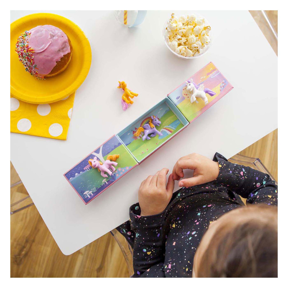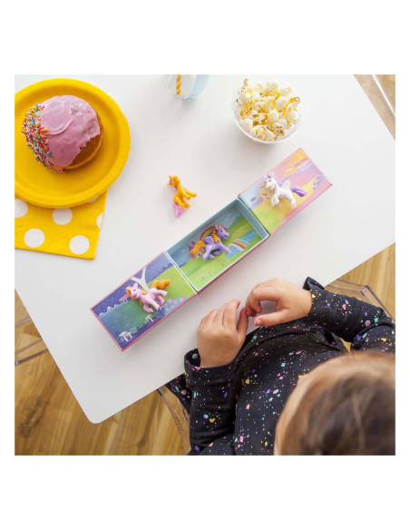 • Compact en Draagbaar: De set is gemakkelijk mee te nemen, zodat kinderen altijd en overal kunnen genieten van hun magische eenhoorns, of het nu thuis, in de auto of op vakantie is.
