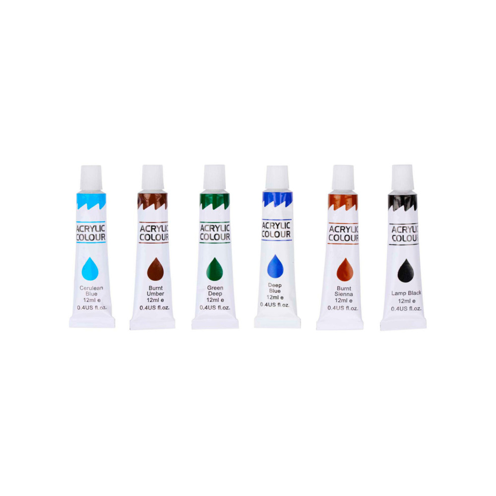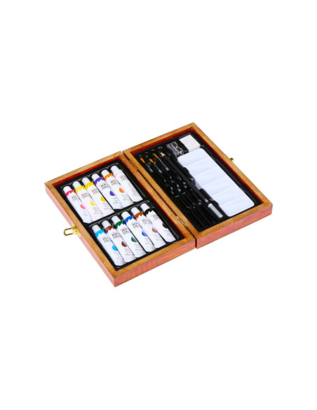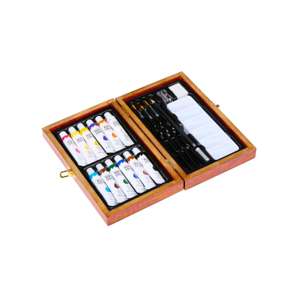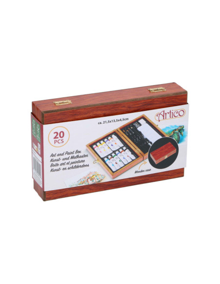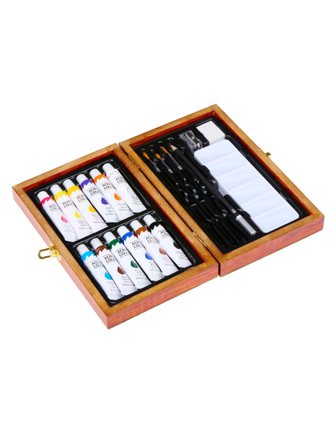 20-delige kunst- en schilderdoos. De set bevat 12 verschillenden kleuren acrylverf.
