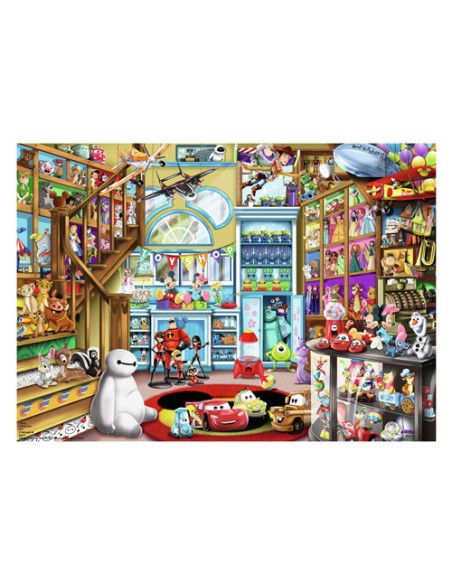 Ontsnap uit de realiteit en stap in de wereld van Ravensburger puzzels. Deze Ravensburger puzzel van 1000 stukjes is geschikt voor zowel beginnende als ervaren puzzelaars. En omdat onze geliefde puzzels een standaard formaat hebben, kun je het resultaat inlijsten en ophangen. Dankzij de met de hand gemaakte stansmessen is de vormvariatie van de stukjes oneindig. Jong en oud zullen genieten van deze Disney Speelgoedwinkel puzzel met 1000 stukjes.