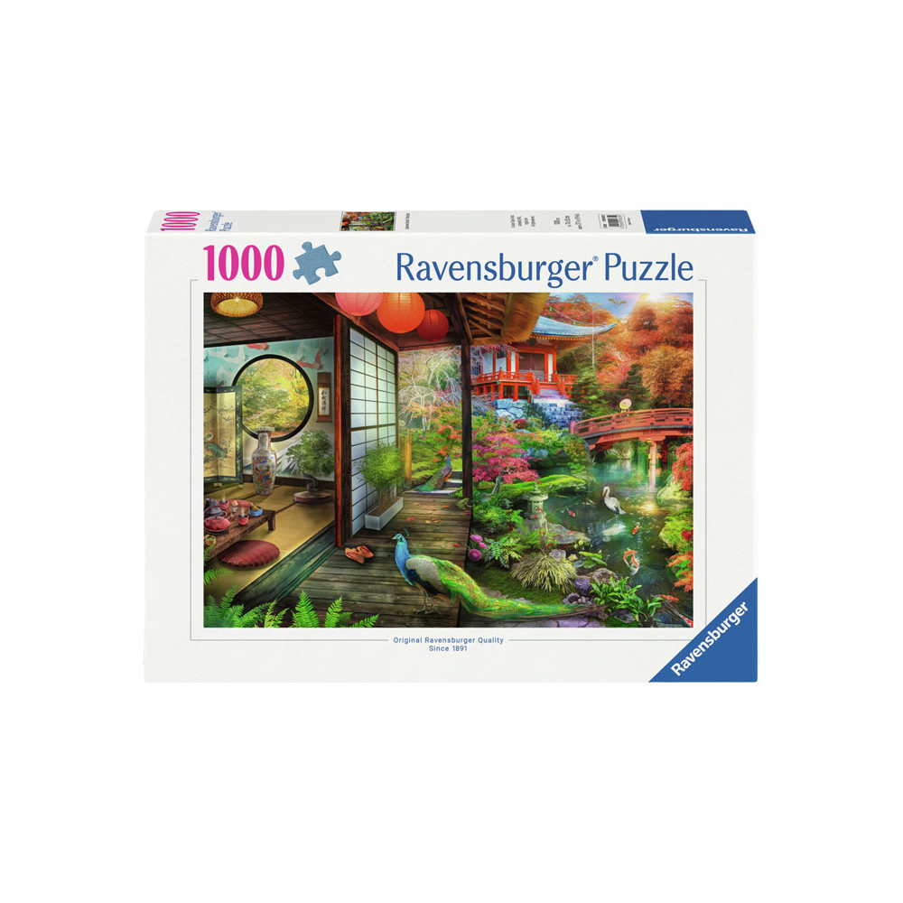 Ontsnap uit de realiteit en stap in de wereld van Ravensburger puzzels. Deze Ravensburger puzzel van 1000 stukjes is geschikt voor zowel beginnende als ervaren puzzelaars. En omdat onze geliefde puzzels een standaard formaat hebben, kun je het resultaat inlijsten en ophangen. Dankzij de met de hand gemaakte stansmessen is de vormvariatie van de stukjes oneindig. Jong en oud zullen genieten van deze Theehuis in Japanse tuin puzzel met 1000 stukjes.