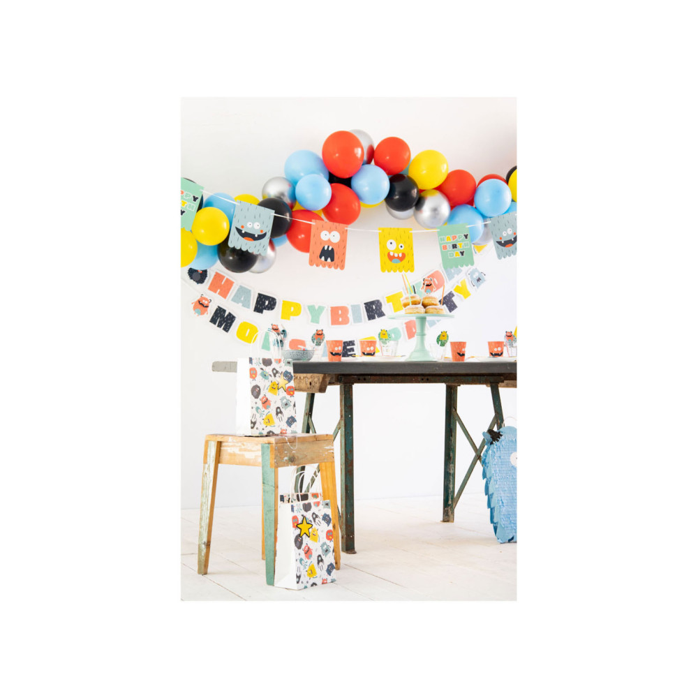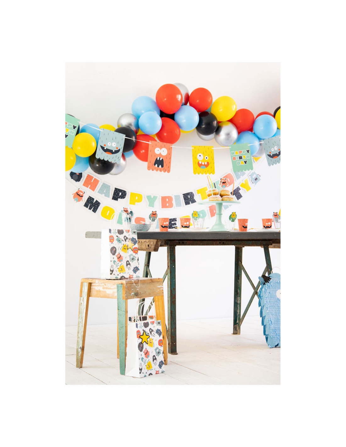Letterslingers Monster Bash - 2 stuks. Inhoud: 2 letterslingers. Kleur: Meerkleurig. Bijvoorbeeld te gebruiken tijdens de volgende feestgelegenheid/feestgelegenheden: Kinderfeestje. Elke slinger is ongeveer 14x150cm. Het artikel is gemaakt van papier.