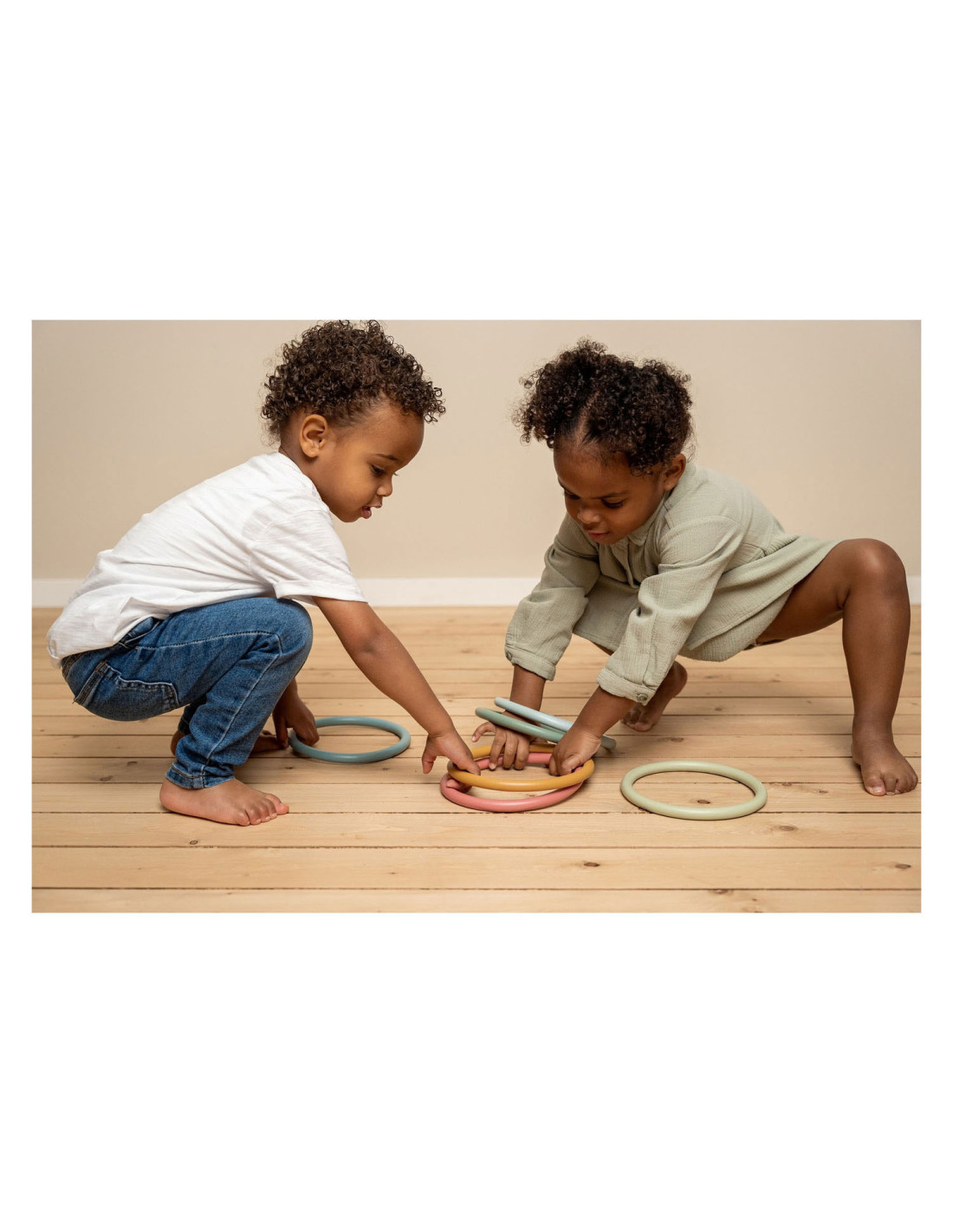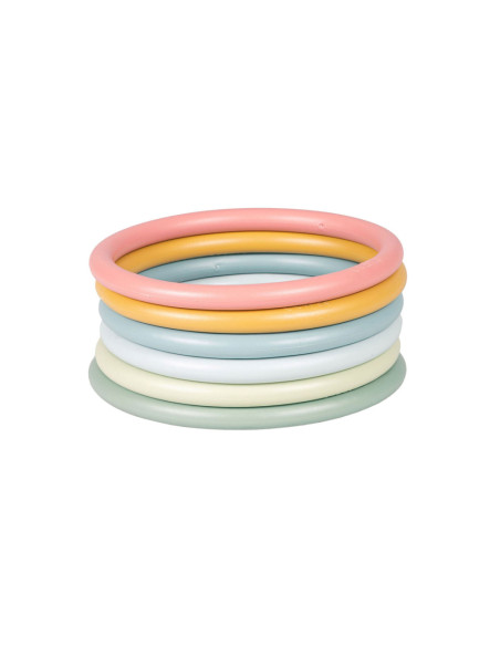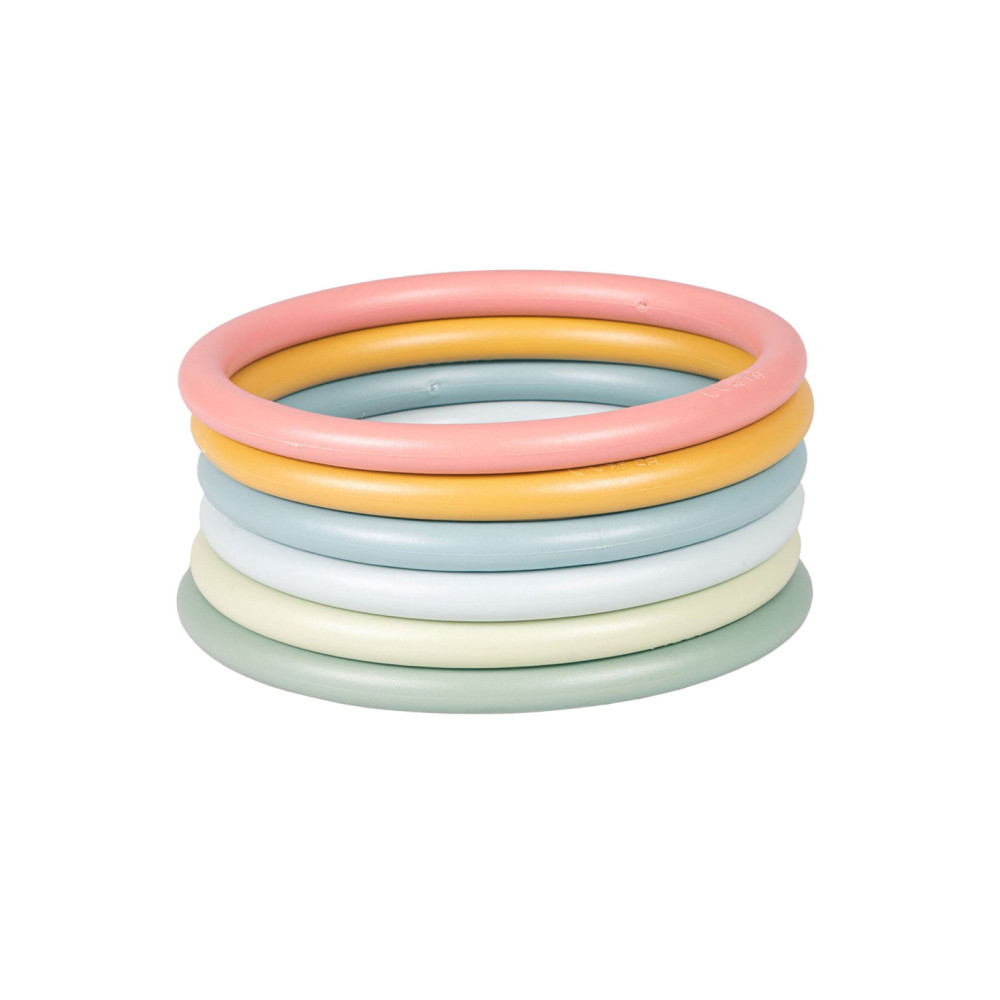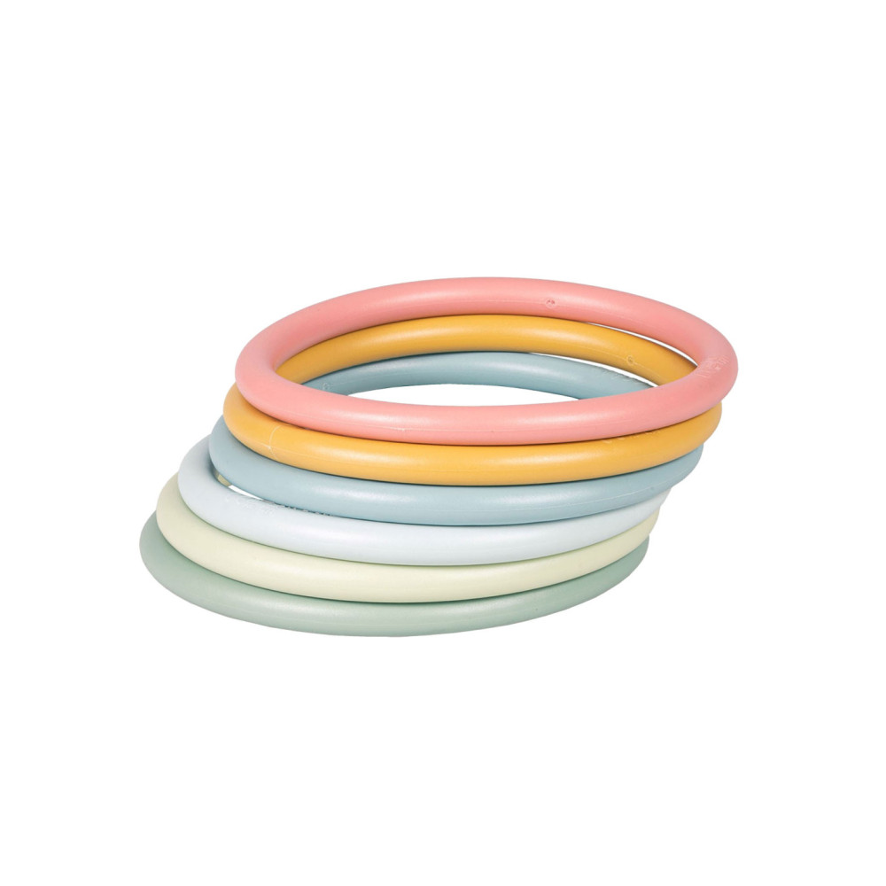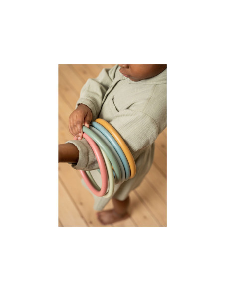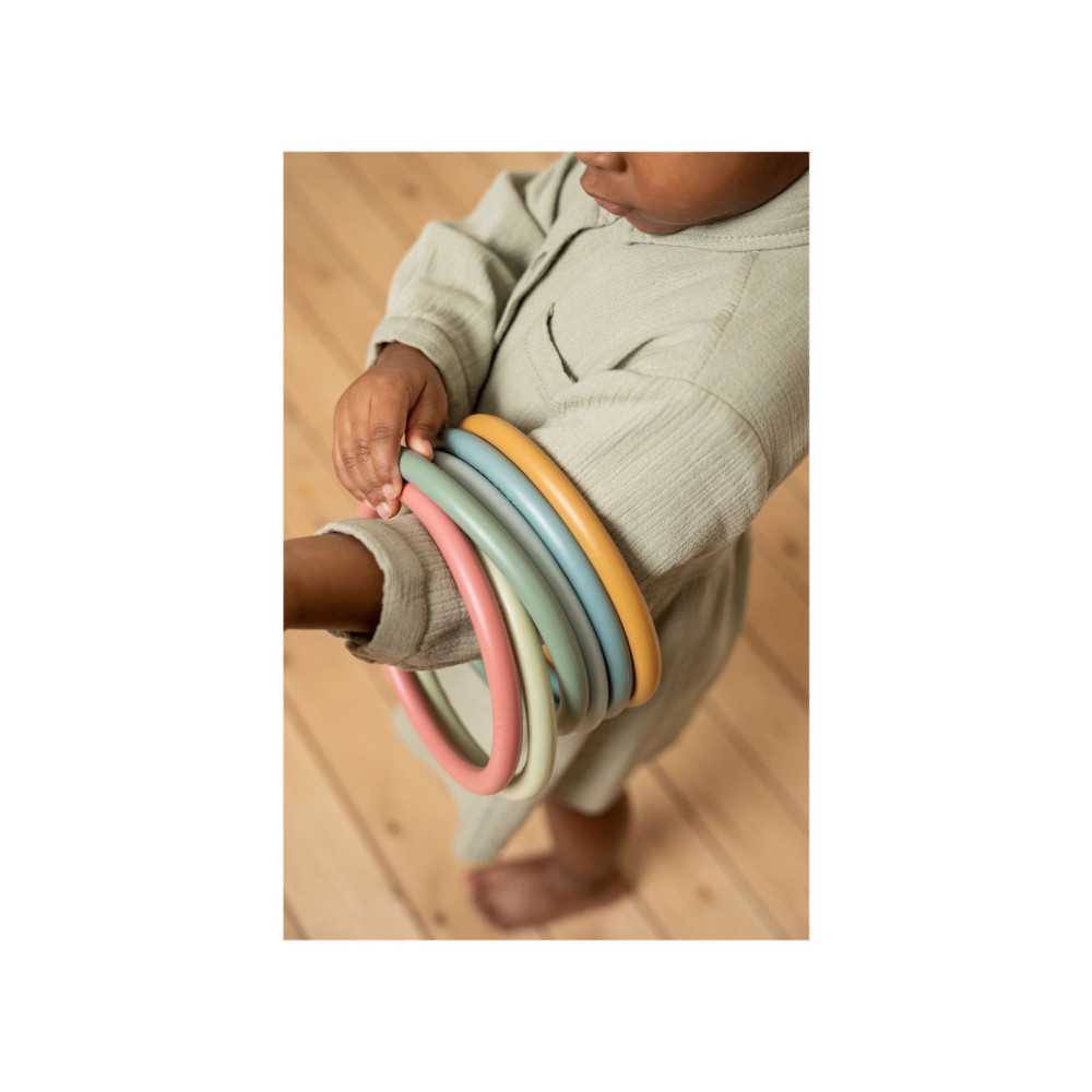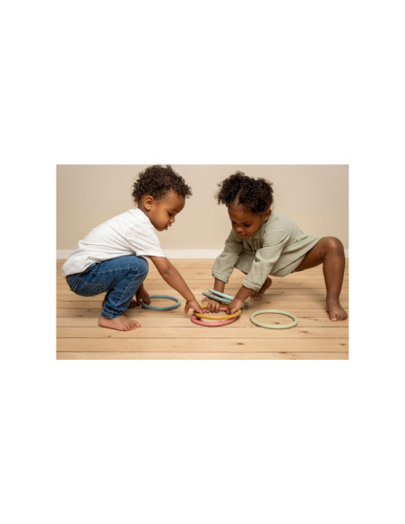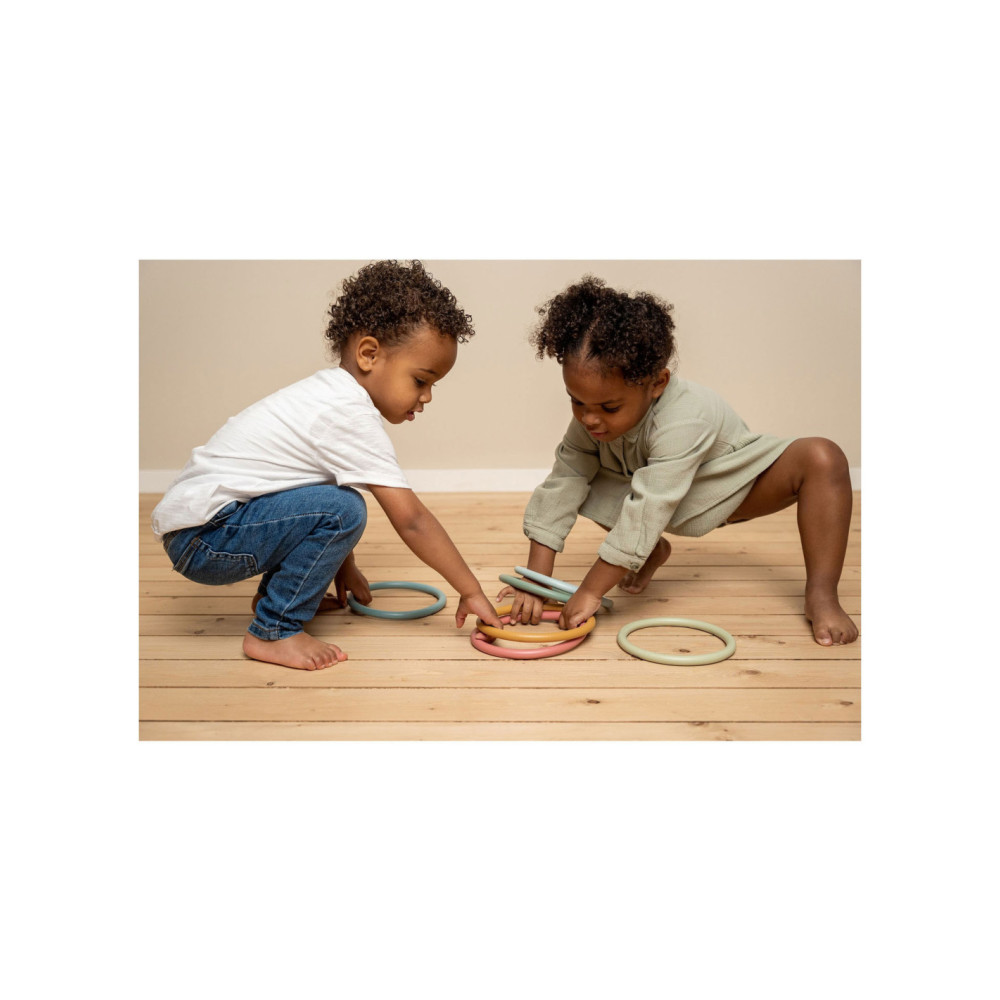 Eindeloos veel spelmogelijkheden met deze Little Dutch activity ringen. Op je tenen lopen, ringen balanceren op je hoofd, jongleren met de ringen om je armen of benen, overgooien, alles is mogelijk.. Set van 6 ringen in 6 verschillende kleuren. Geschikt voor kinderen vanaf 3 jaar.