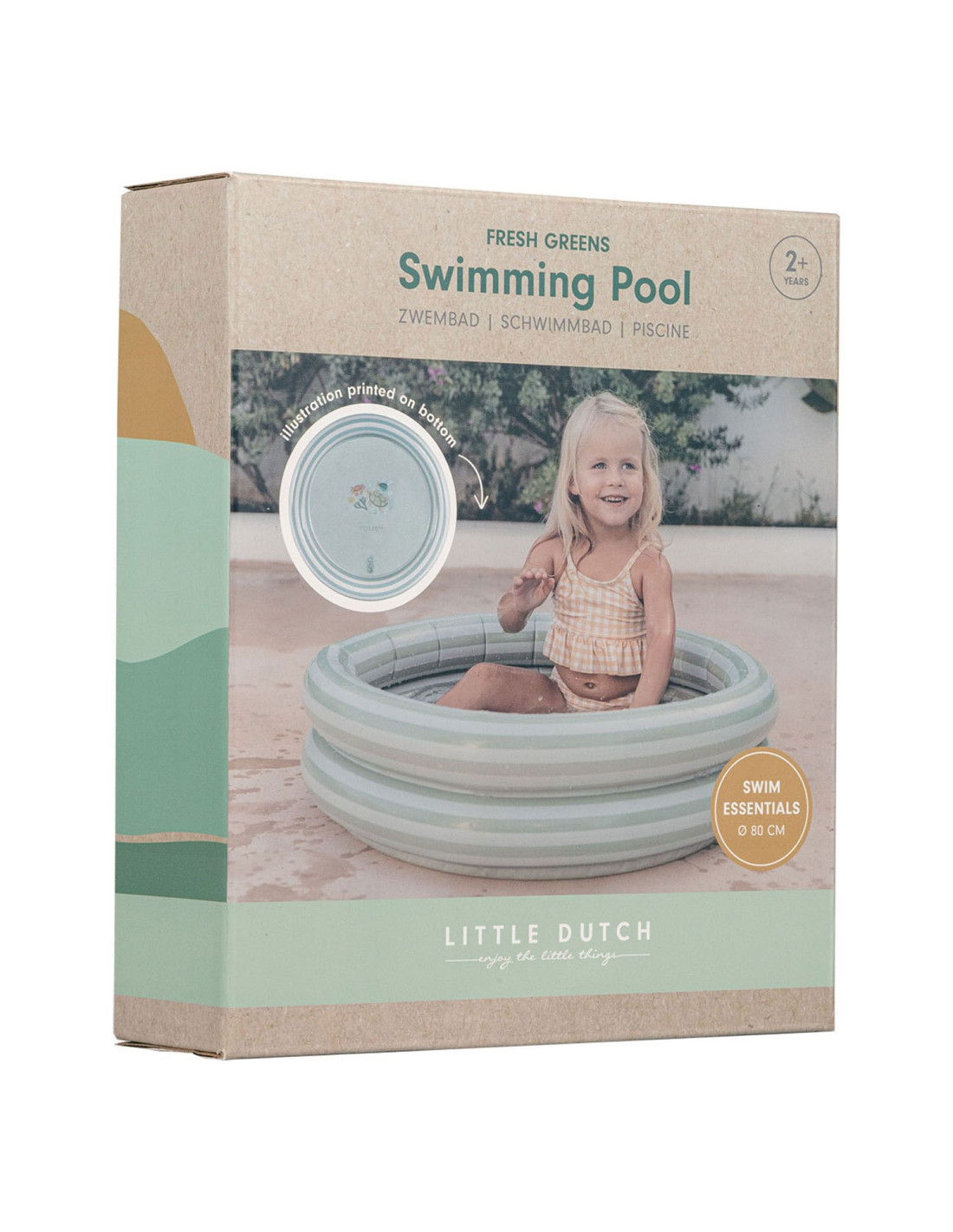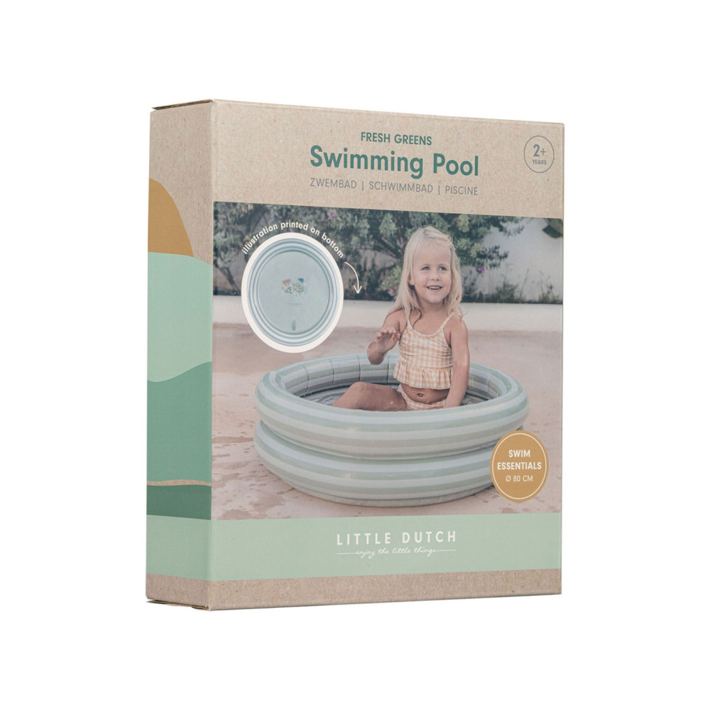 Het Little Dutch Fresh Greens zwembad zorgt voor eindeloos plezier tijdens warme zomerdagen. Met zijn frisse groene kleur en aantrekkelijke design creëert dit zwembad een speelparadijs voor kinderen. Gemaakt van duurzaam materiaal en voorzien van een stevige constructie, biedt het zwembad langdurig gebruiksgemak. Het zwembad is gemakkelijk op te zetten en te vullen en biedt voldoende ruimte om te spetteren en te spelen. Laat je kind onvergetelijke wateravonturen beleven met het Little Dutch Fresh Greens zwembad. Een onmisbare toevoeging voor zomers speelplezier! Diameter: 80 cm. Verpakt in een full-colour doos. Geschikt voor kinderen vanaf 24 maanden.