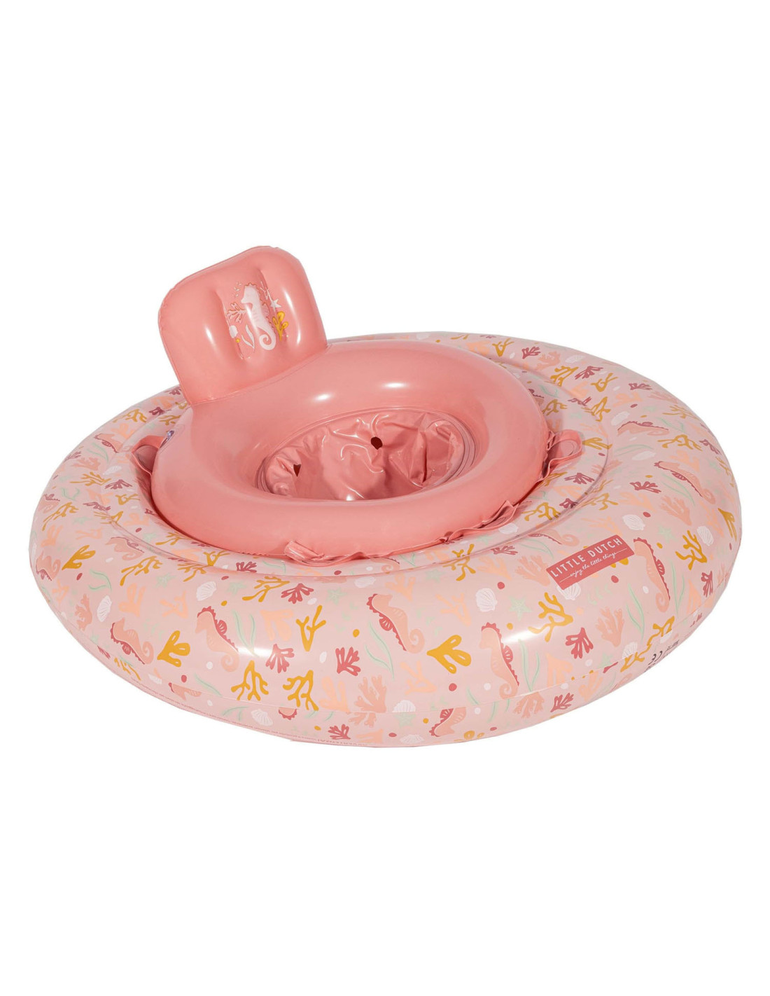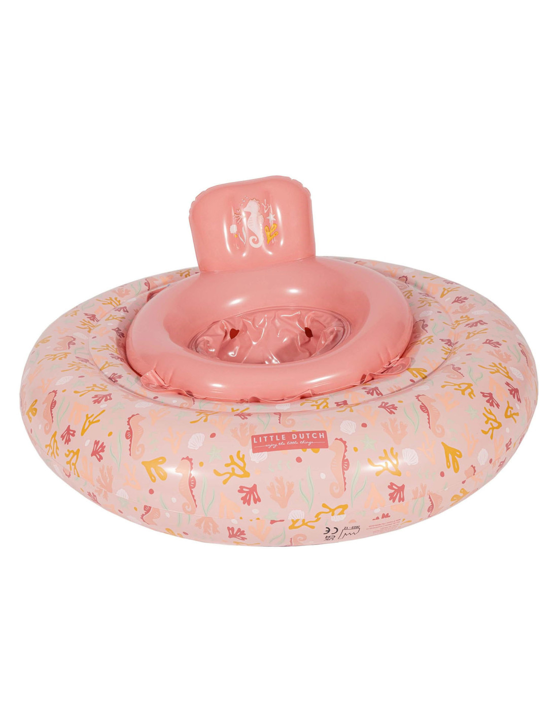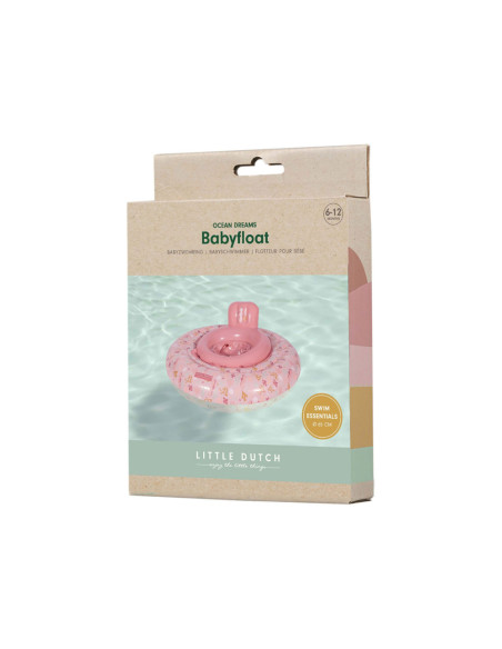 Little Dutch babyfloat met een diameter van ca 67 cm. Met vier gescheiden luchtkamers, handgrepen en stevig zitje. Voorzien van het Ocean Dreams Roze design. Verpakt in een full color doos. Geschikt voor kinderen van 6-12 maanden (tot 11 kilo).