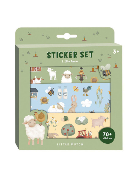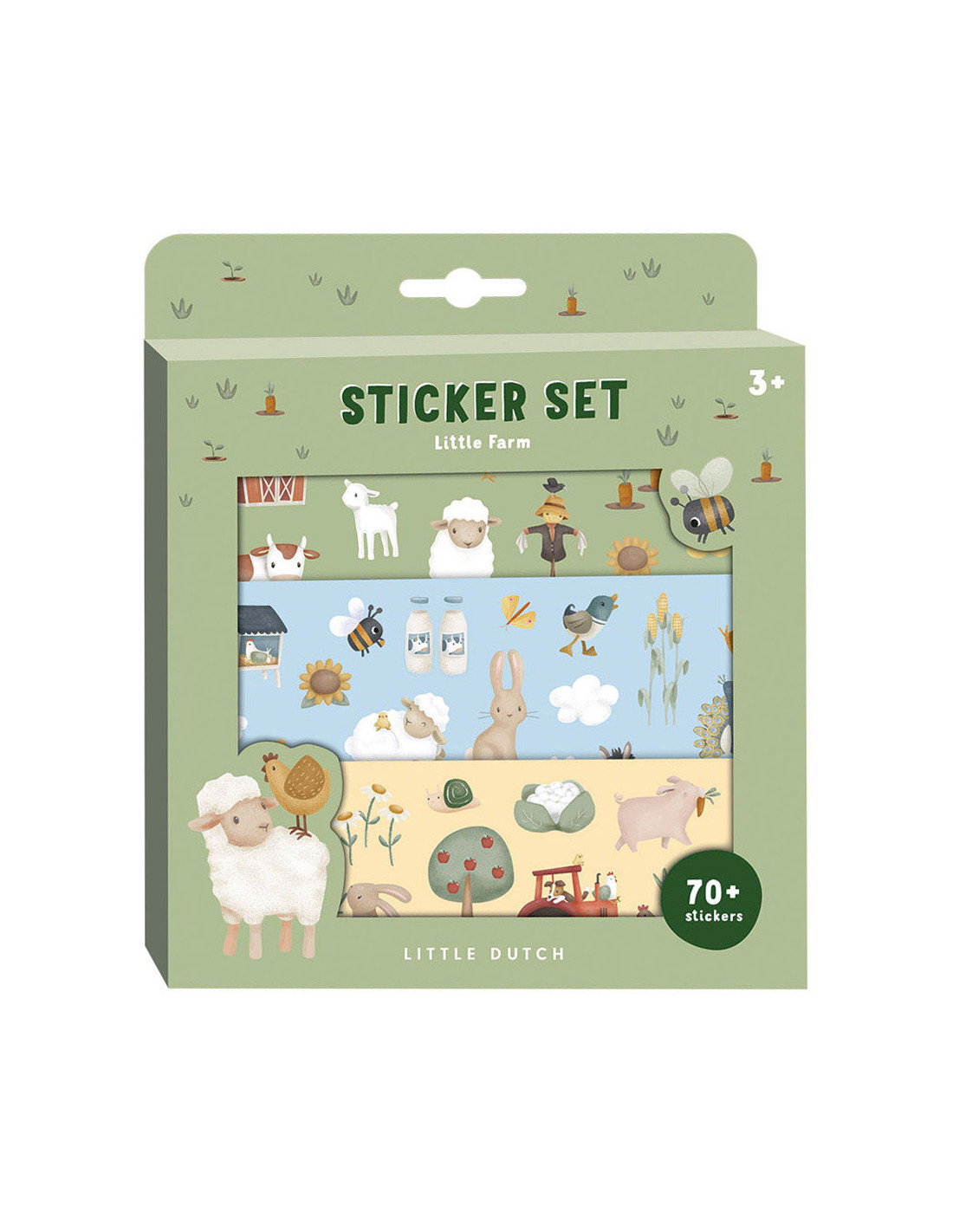 Little Dutch stickerdoosje met 3 vellen stickers met mooie illustraties van de serie ‘Little Farm'. In de set zitten meer dan 70 stickers met motieven van boerderijdieren, gewassen en andere boerderijfiguren. Geschikt voor kinderen vanaf 3 jaar oud.
