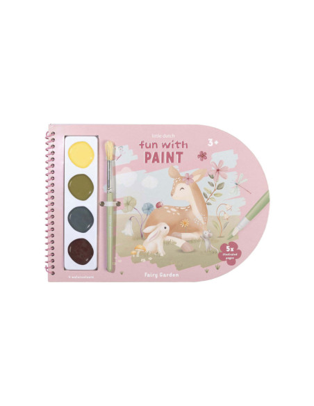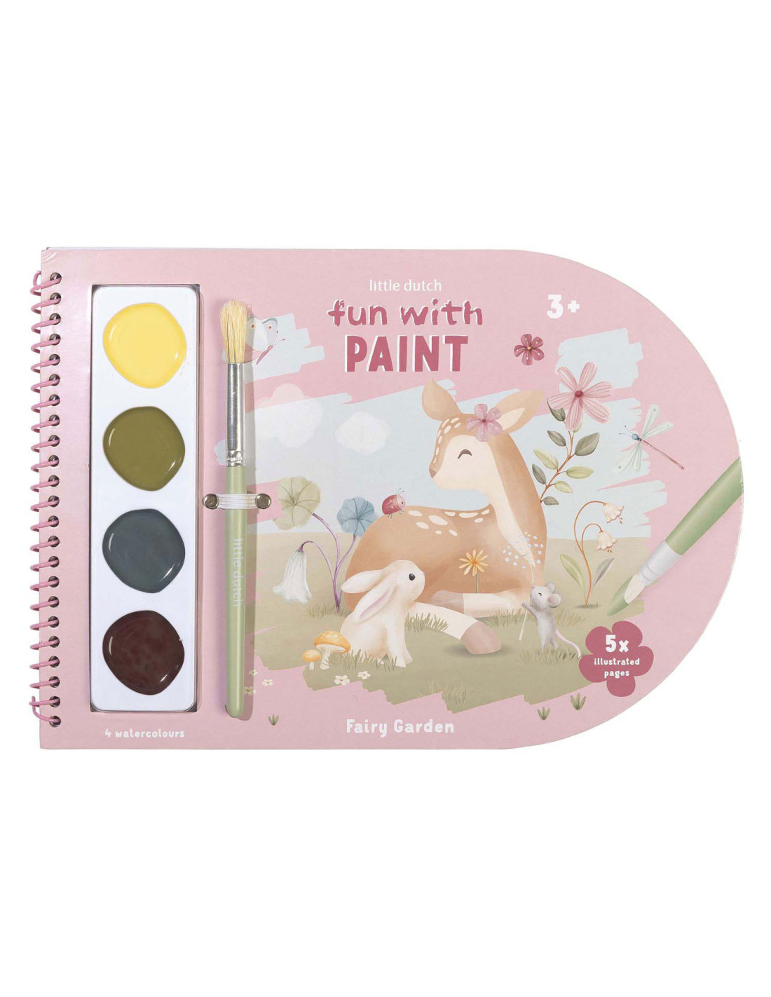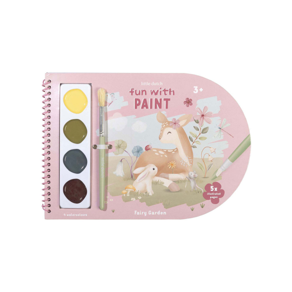 Little Dutch verfboek Fairy Garden. Het verfboek is geschikt voor kinderen vanaf 3 jaar. Inclusief 4 kleuren verf, 1 kwast en 5 kleurplaten.