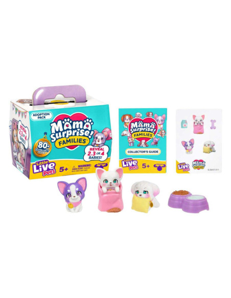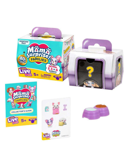 De Little Live Pets Mama Surprise Families Adoptieset bevat 2 tot 4 verrassingspups in een draagbaar reismandje, met meer dan 80 puppy's om te verzamelen, inclusief zeldzame edities. Geschikt voor kinderen vanaf 5 jaar.