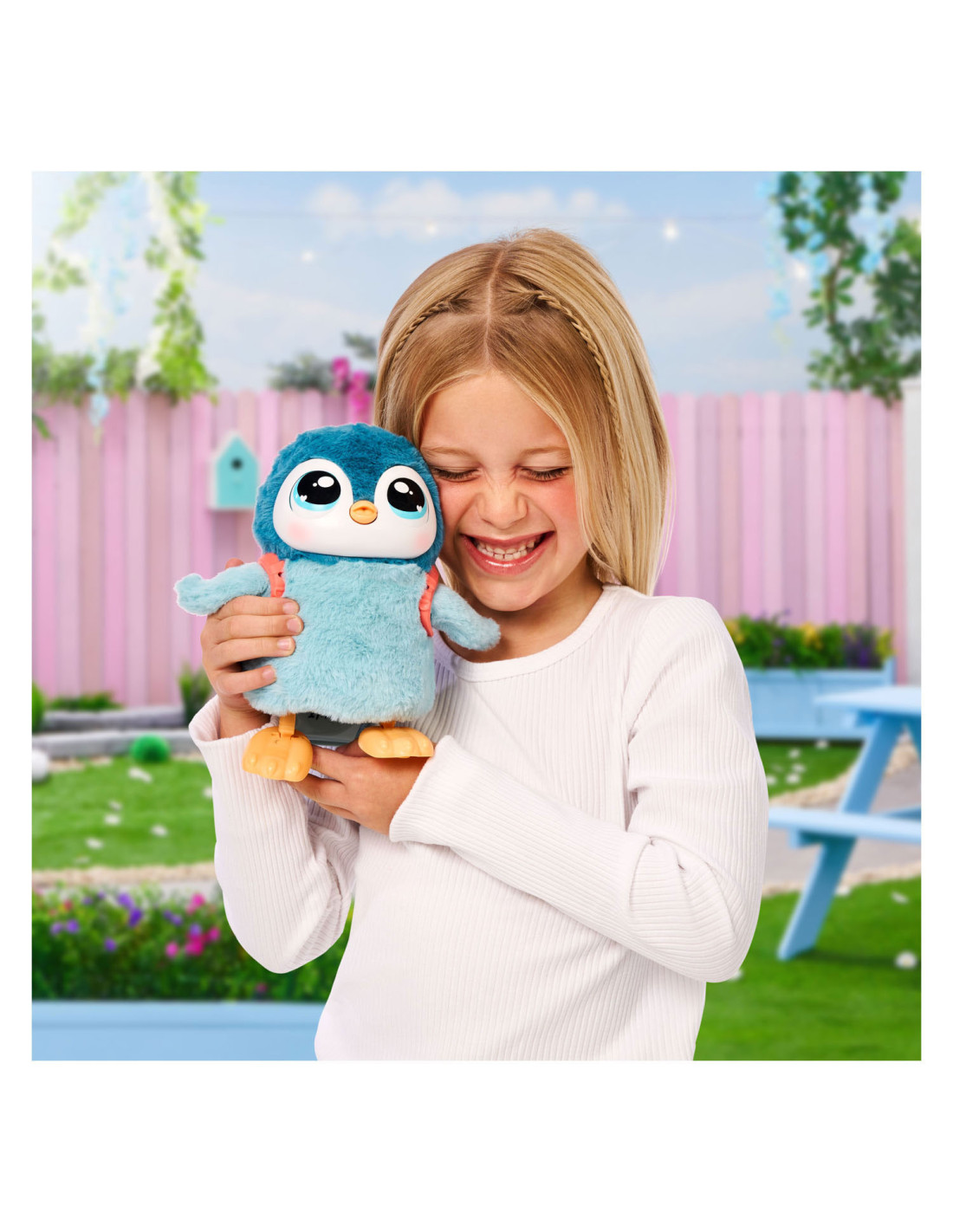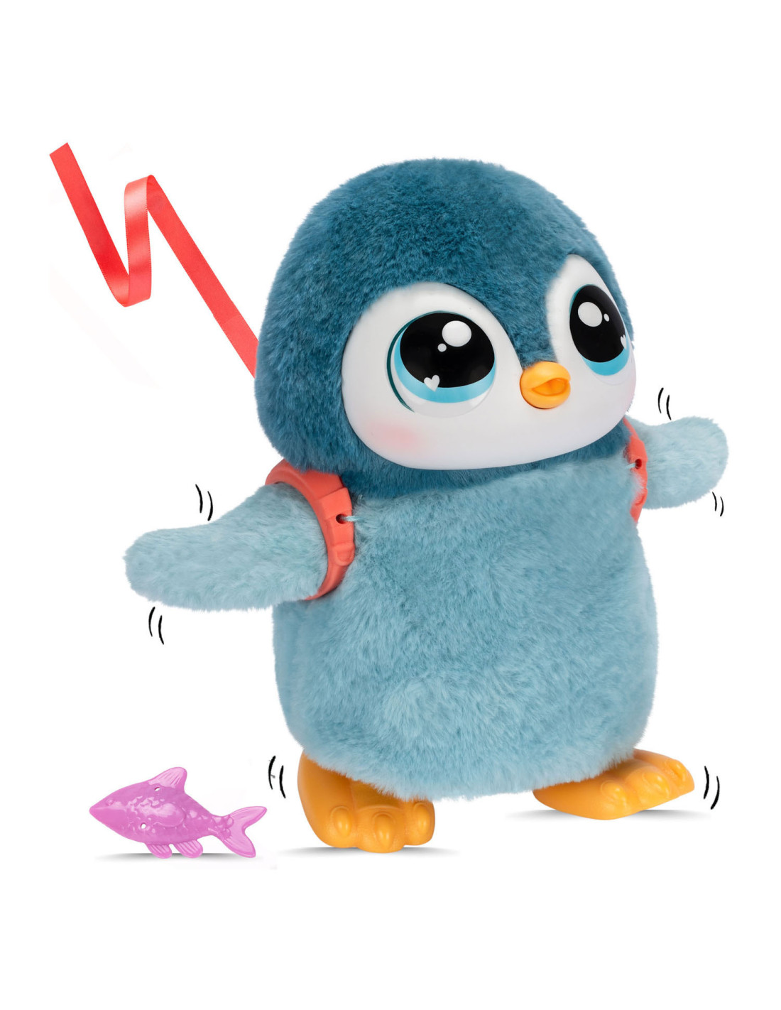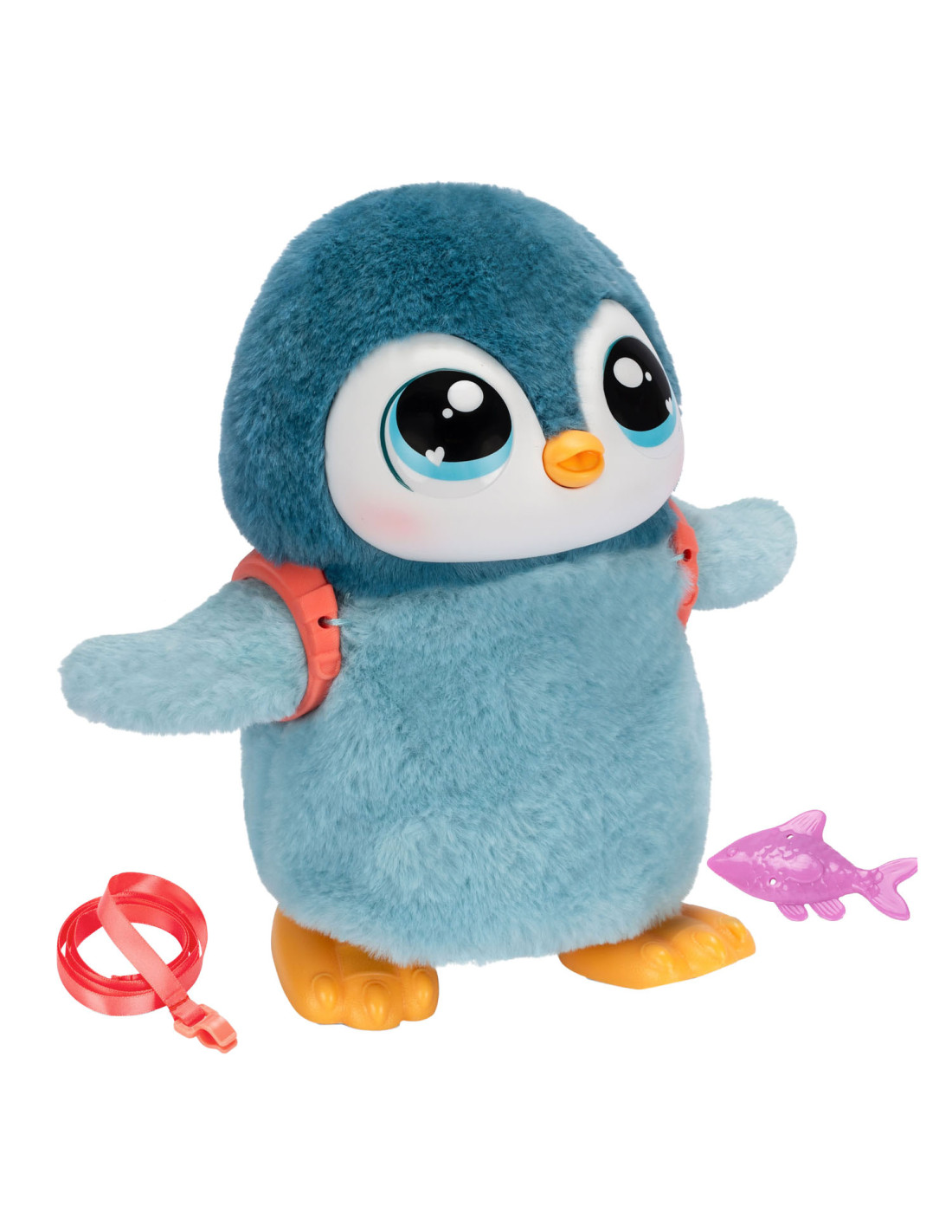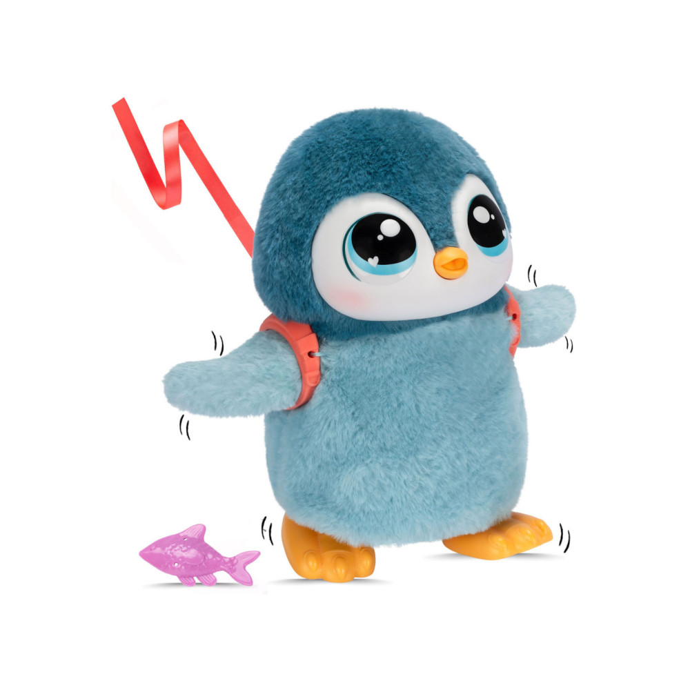 My Walking Penguin Waddles is niet alleen heel erg zacht, maar hij waggelt ook graag met jou mee! Waggles is een interactieve, wandelende pinguïn, die klinkt en beweegt net als een echte pinguïn. Voer hem met zijn vis en geef hem een knuffel terwijl hij reageert op jouw aanraking. Kijk hoe zijn vleugels flapperen en zijn hoofd beweegt terwijl hij loopt! Waggles maakt zoveel grappige en lieve geluiden: hij kan eten, giechelen, niesen en laat misschien zelfs een schattig scheetje! Met meer dan 25 geluiden en reacties is Waddles super interactief en schattig! Waggles heeft een zachte, pluizige vacht en vleugels die flapperen als hij loopt. Bevestig de riem om met hem te gaan wandelen of kijk hoe hij beweegt en danst op zijn eigen muziek. Waddles wordt geleverd met een afneembare riem, een zuigfles, een instructieboekje en ook de batterijen zijn inbegrepen, zodat hij klaar is om mee te spelen! Leeftijdsindicatie: 5 jaar+.Batterij informatie: 3 x AA batterijen (meegeleverd).