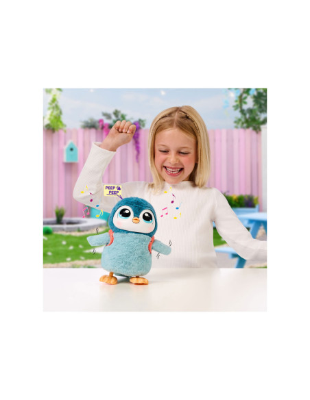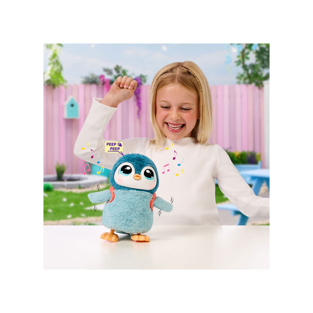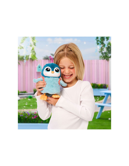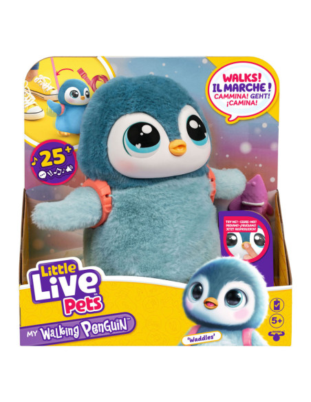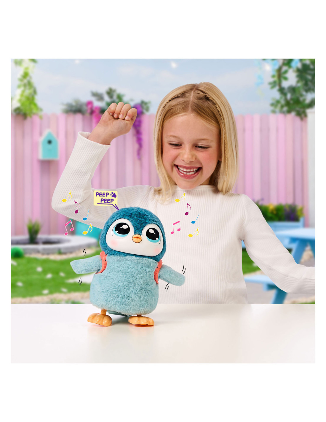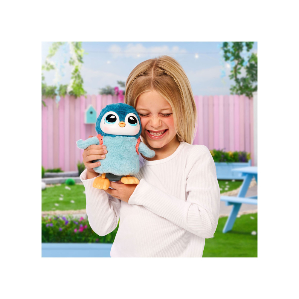 My Walking Penguin Waddles is niet alleen heel erg zacht, maar hij waggelt ook graag met jou mee! Waggles is een interactieve, wandelende pinguïn, die klinkt en beweegt net als een echte pinguïn. Voer hem met zijn vis en geef hem een knuffel terwijl hij reageert op jouw aanraking. Kijk hoe zijn vleugels flapperen en zijn hoofd beweegt terwijl hij loopt! Waggles maakt zoveel grappige en lieve geluiden: hij kan eten, giechelen, niesen en laat misschien zelfs een schattig scheetje! Met meer dan 25 geluiden en reacties is Waddles super interactief en schattig! Waggles heeft een zachte, pluizige vacht en vleugels die flapperen als hij loopt. Bevestig de riem om met hem te gaan wandelen of kijk hoe hij beweegt en danst op zijn eigen muziek. Waddles wordt geleverd met een afneembare riem, een zuigfles, een instructieboekje en ook de batterijen zijn inbegrepen, zodat hij klaar is om mee te spelen! Leeftijdsindicatie: 5 jaar+.Batterij informatie: 3 x AA batterijen (meegeleverd).