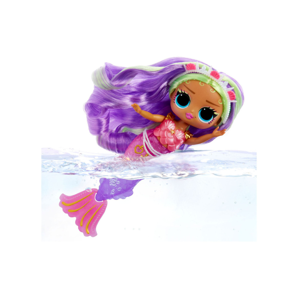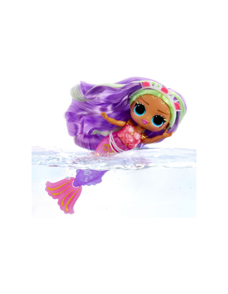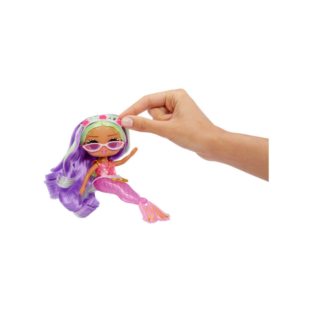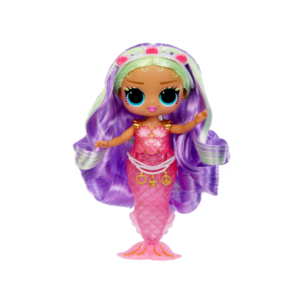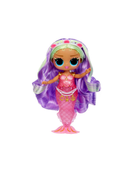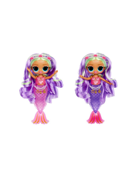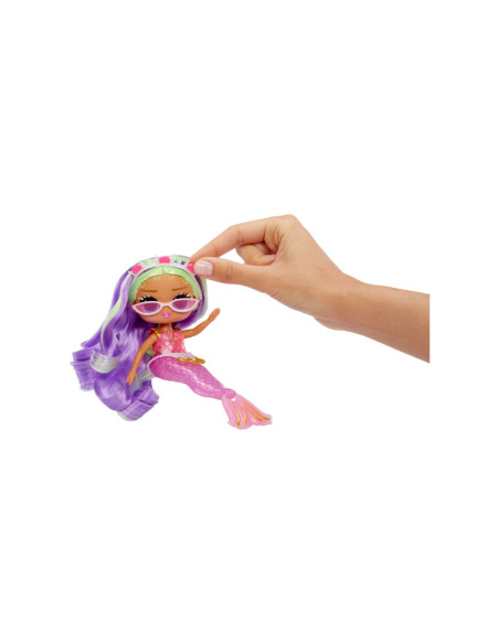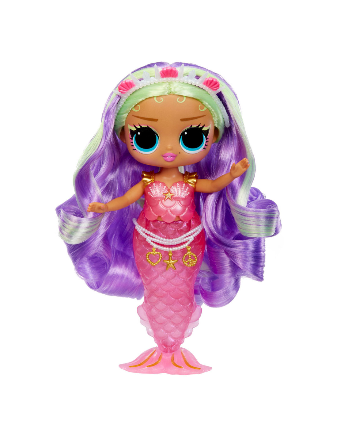 Duik in een betoverende wereld vol kleurenmagie en verrassingen met de gloednieuwe L.O.L. Surprise Tweens Mermaid Cleo Cove™-modepop met adembenemende accessoires om uit te pakken! Perfect voor in bad en om fantasierijk mee te spelen: het plezier spat ervanaf met Cleo Cove™ met haar schitterende staart met kleurverandering en betoverende vin die echt kan bewegen! Doop je Tweens Mermaid-pop in koud water en kijk hoe de kleur van haar staart verandert van magenta in dieppaars voor een magische onderwaterervaring! Kun jij raden in welke kleur haar lichtroze vin verandert? Vergeet niet om je pop te stylen met haar betoverende accessoires zoals haar zeebril, schelpentiara en schattige parelriem! Ze heeft een heel mooi gezichtje, prachtig haar, haar eigen modieuze zeemeerminnenlook en beweegbare ledematen voor heel veel houdingen. Ze kan bijvoorbeeld ook zitten! Ook kan ze stabiel op haar vin staan, waardoor je haar makkelijker kunt stylen! Ontdek wat er in elke doos zit, zoals een schitterende L.O.L. Surprise Tweens Mermaid-pop, bril, haarband en een riem die bij de staart van de pop past! Verzamel alle 4 de glamoureuze L.O.L. Surprise Tweens Mermaid-modepoppen: Cleo Cove™, Lola Waves™, Lana Marine™ en Serena Finn™ voor een complete set eindeloos veel zeemeerminplezier!