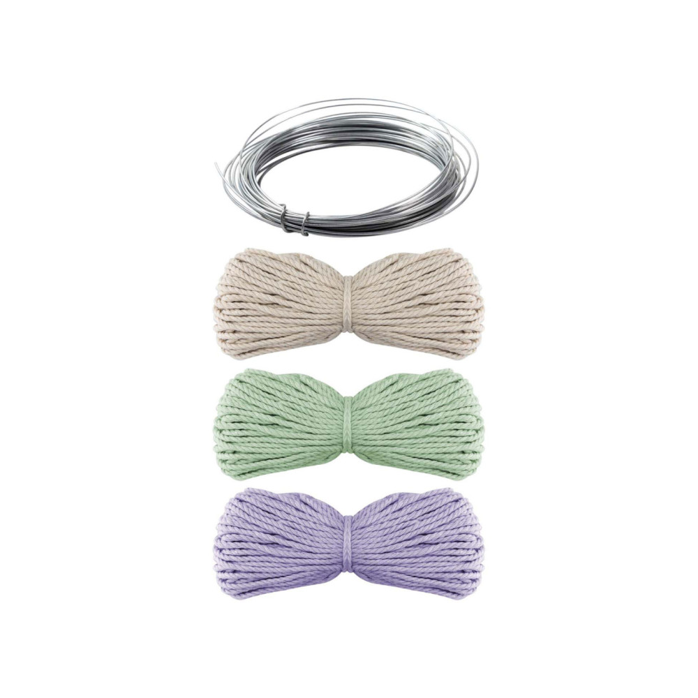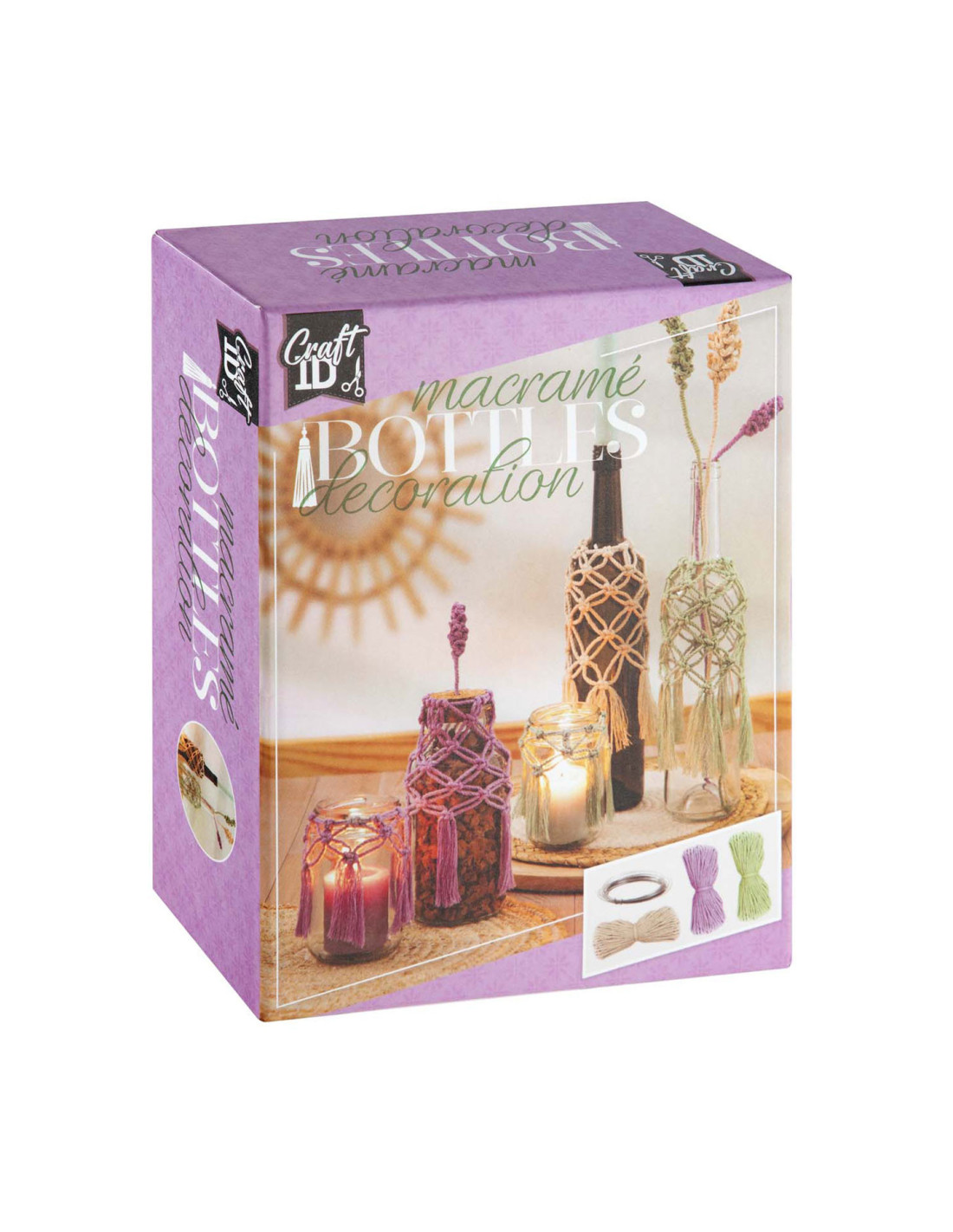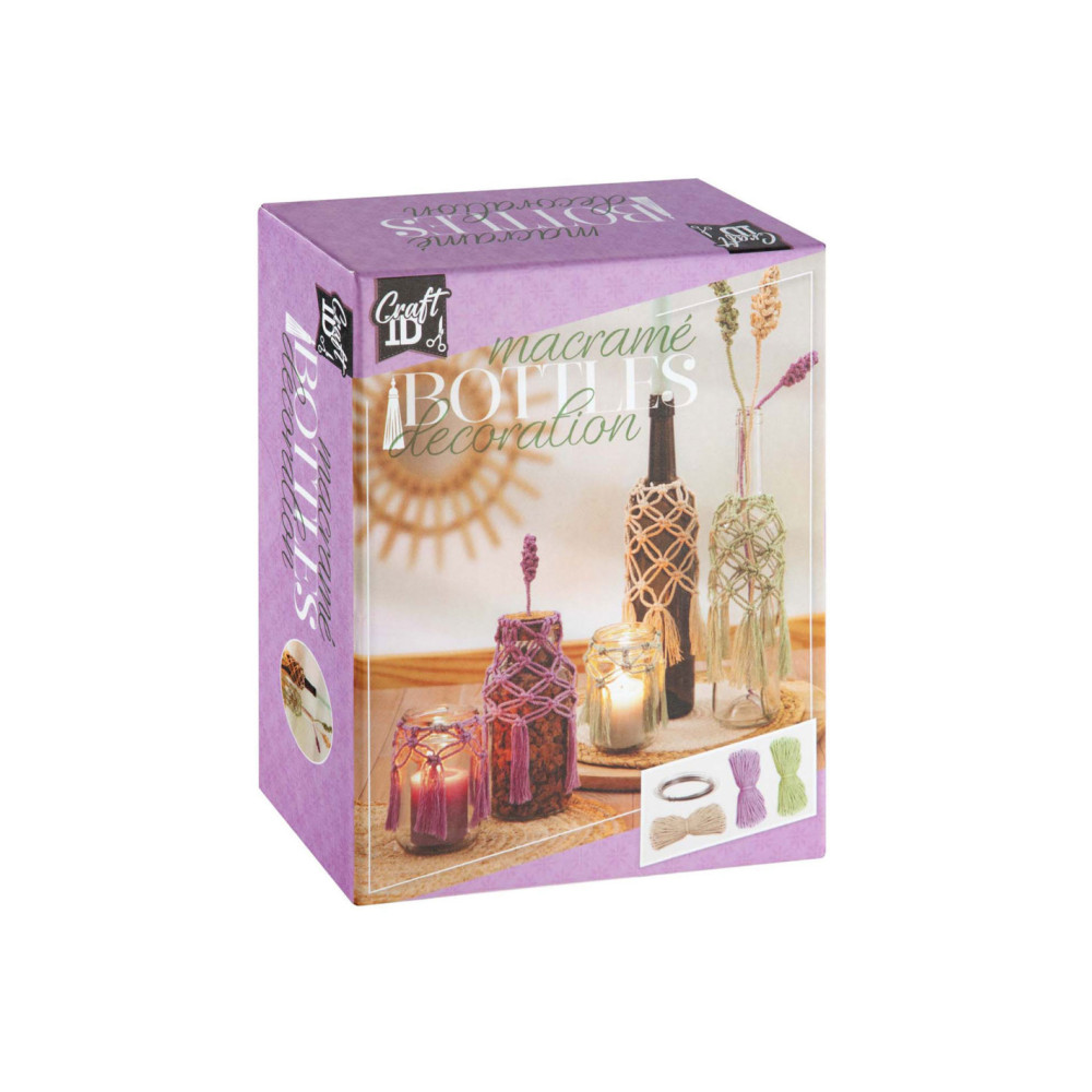 Knutselset voor het decoreren van glazen en maken van macrame bloemen.