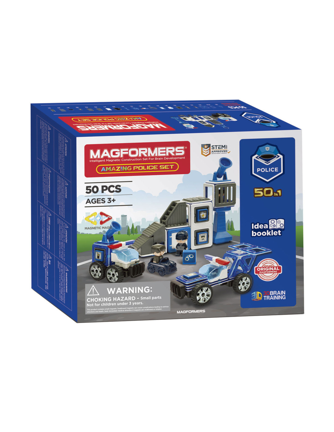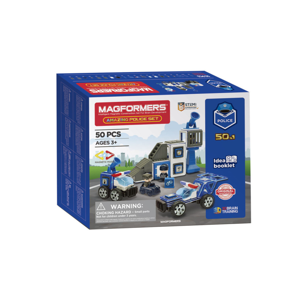 Pas op dieven, vanaf nu worden jullie meteen gevat! Met de Magformers Amazing Police Set is de politie dieven sneller dan ooit op het spoor. Dit magnetisch speelgoed is de perfecte keuze voor als je van bouwen en detectives houdt. Je creëert namelijk zelf je politiebureau en politieauto's die je laat besturen door het inbegrepen politieagent poppetje. Uiteraard zit er ook een dief in de verpakking die snel zal merken dat het achter de tralies toch niet zo'n pretje is. Wat wel een pretje is, is dat je van al dat spelen met Magformers ook slimmer wordt. Dit bouwspeelgoed is namelijk S.T.E.M.-speelgoed waarmee je al spelend je hersenen ontwikkelt. Je krijgt met deze Magformers Amazing Police Set dus niet alleen in een inzicht in de werkwijze van boeven, maar ook een beter ruimtelijk inzicht waarmee je leert denken in 2D en 3D. Spectaculair, toch?