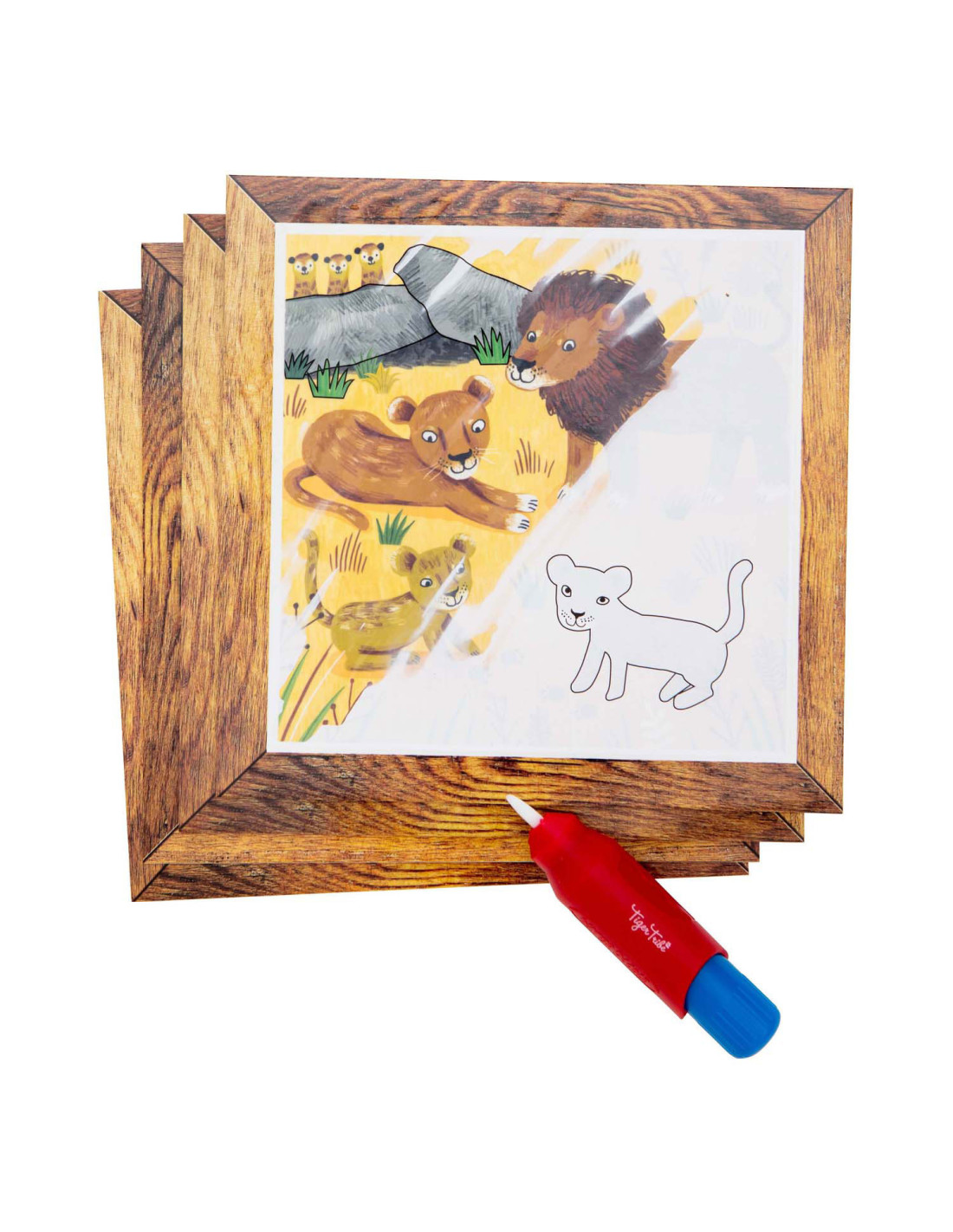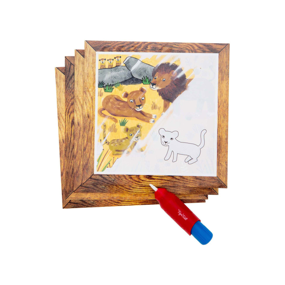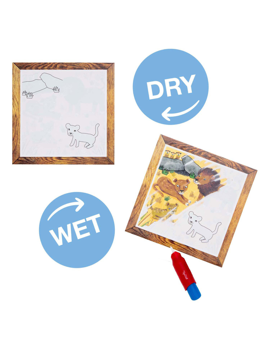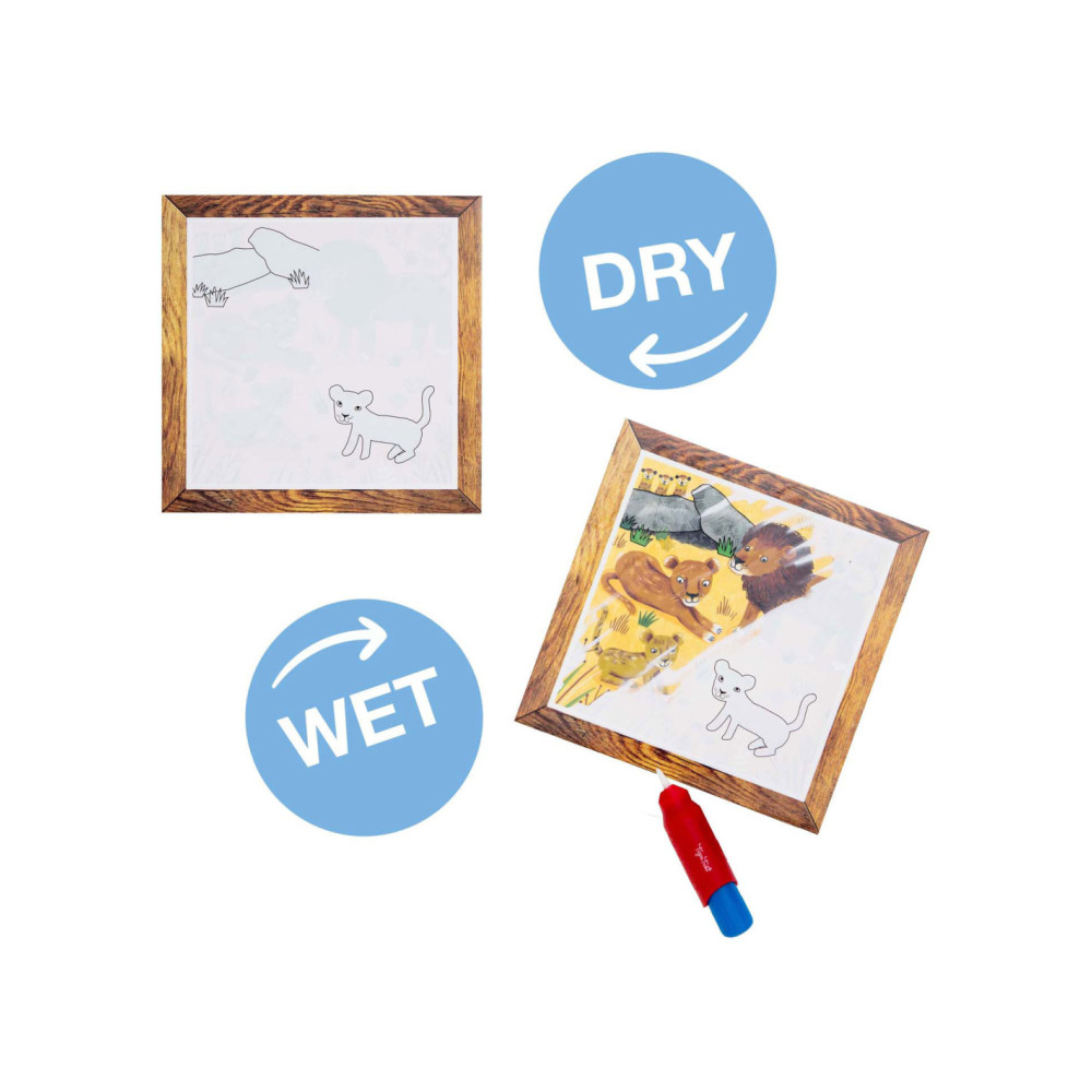 • Magisch waterkleuren: Met slechts een beetje water kunnen kinderen prachtige safari-taferelen onthullen. De speciale waterpen laat verborgen kleuren en details tevoorschijn komen voor een magische ervaring.
