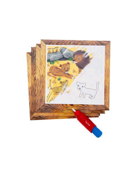 • Stimuleert creativiteit: Kinderen worden aangemoedigd om hun eigen avonturen te bedenken terwijl ze de kleurrijke safari-taferelen tot leven brengen, wat hun creativiteit en verbeelding stimuleert.