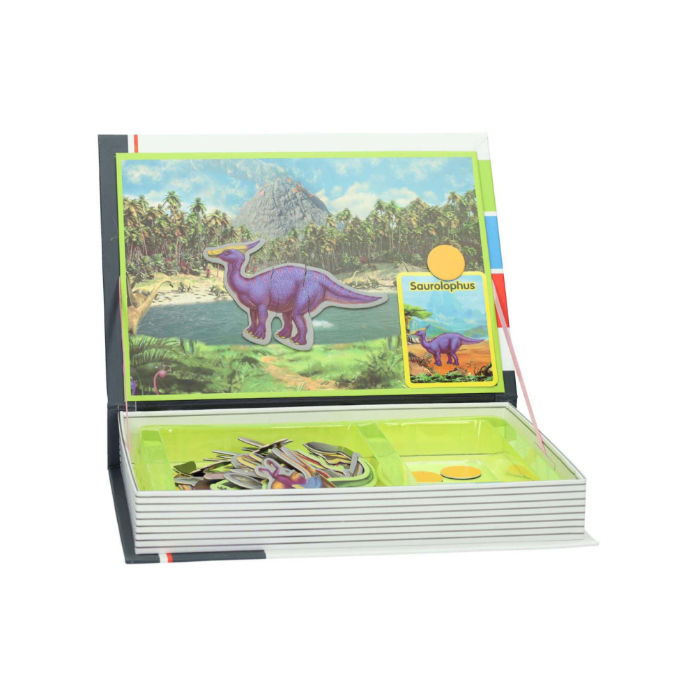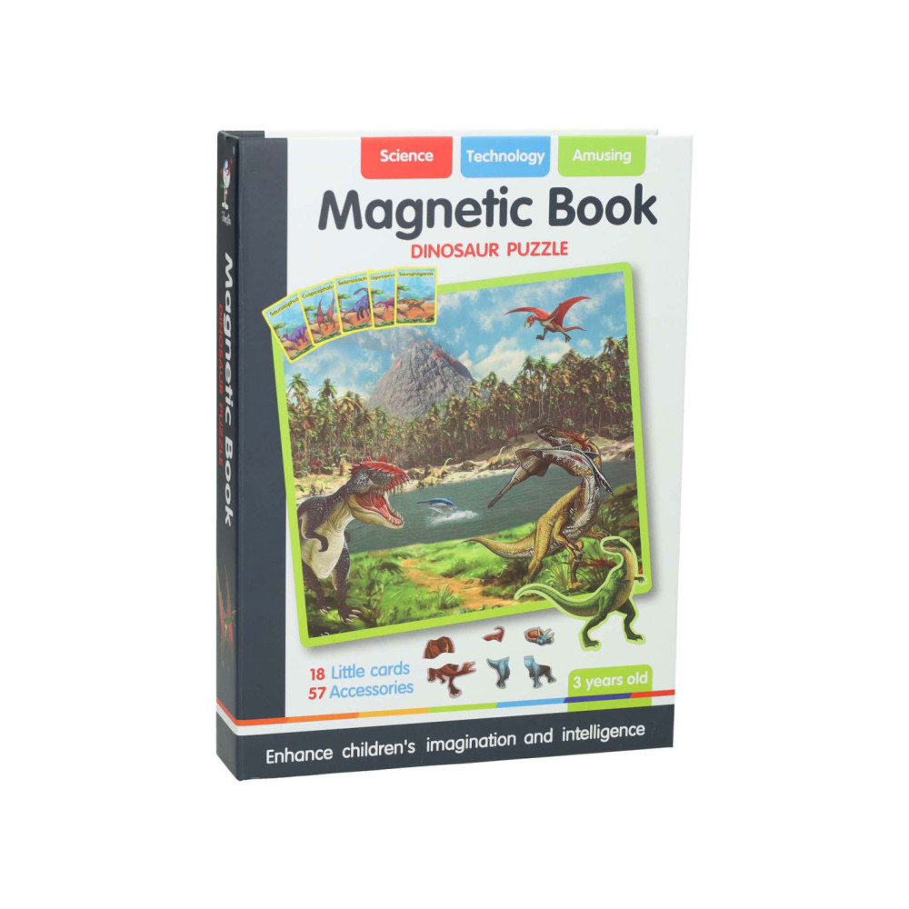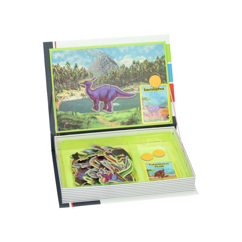 Magnetisch boek met 57 gekleurde magneten en 18 voorbeeldkaarten, waarmee je allerlei verschillende magnetische dino’s kunt maken op de magnetische ondergrond. Geschikt voor kinderen vanaf 3 jaar.