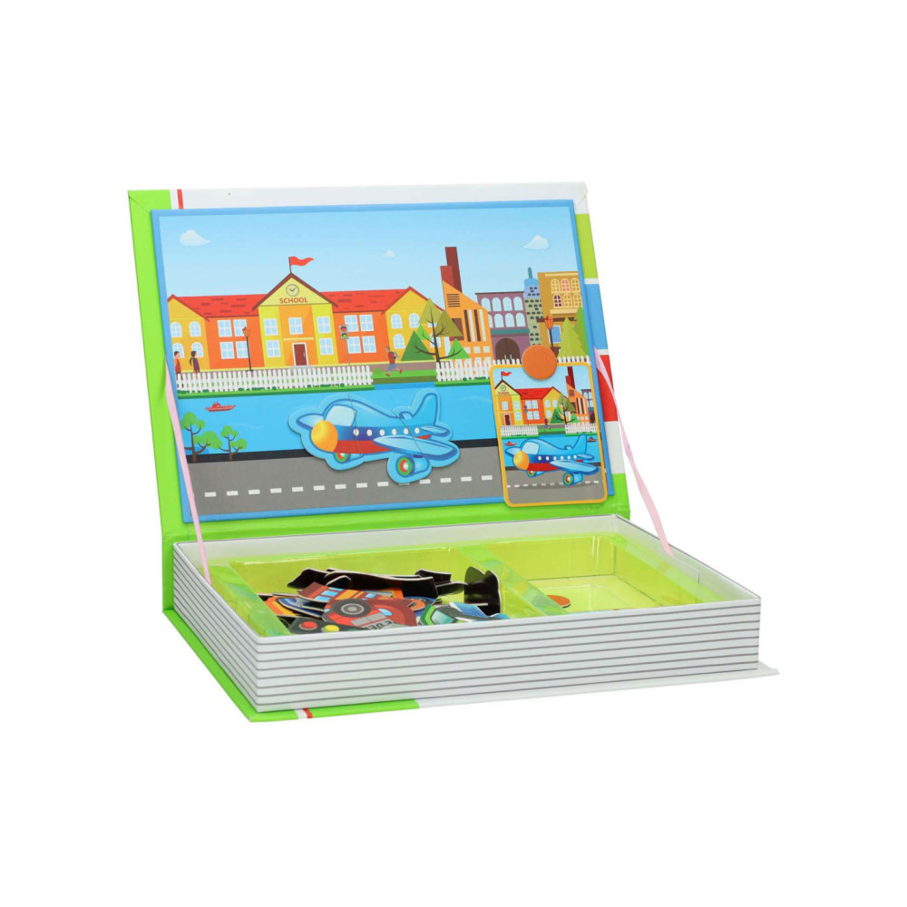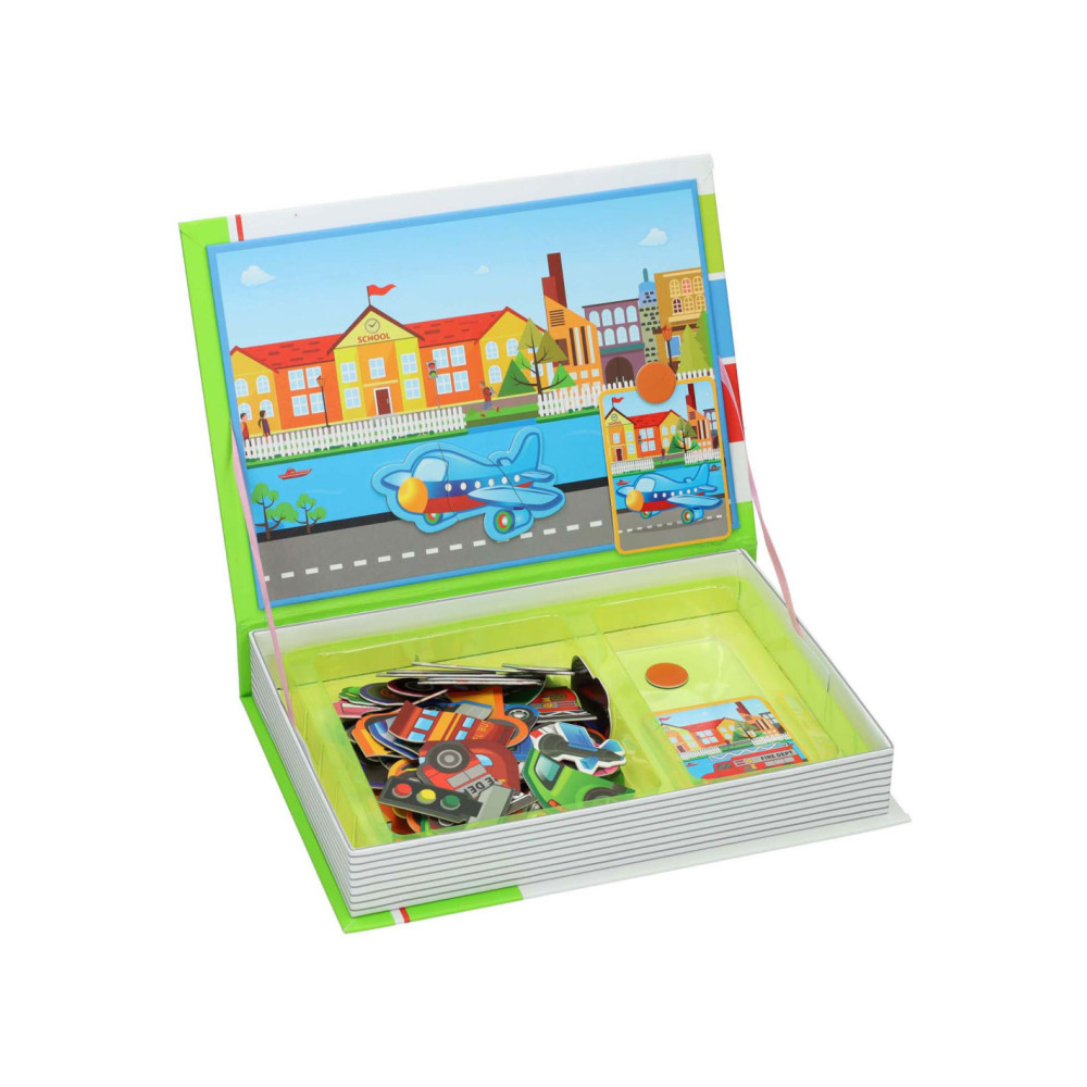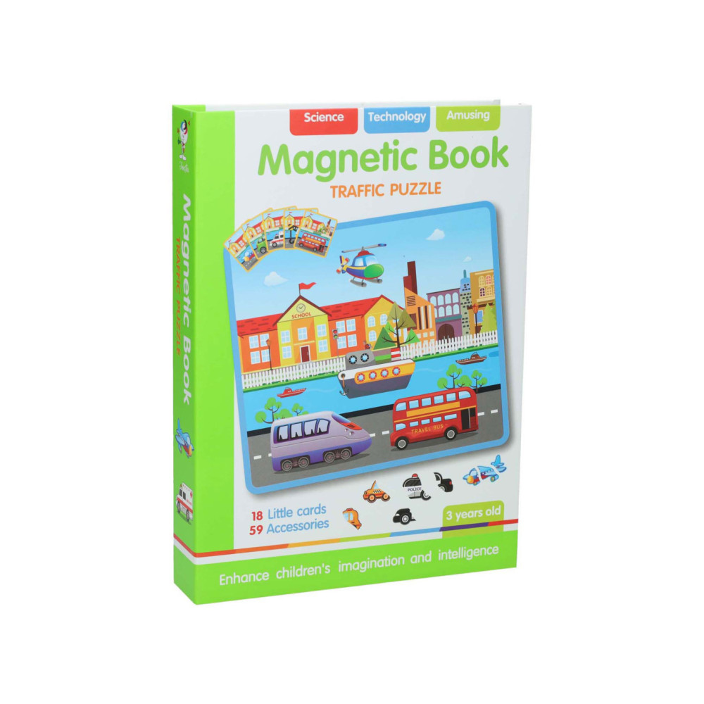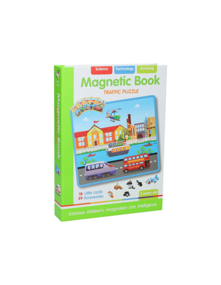 Magnetisch boek met 59 gekleurde magneten en 18 voorbeeldkaarten, waarmee je allerlei verschillende magnetische voertuigen kunt maken op de magnetische ondergrond. Geschikt voor kinderen vanaf 3 jaar.