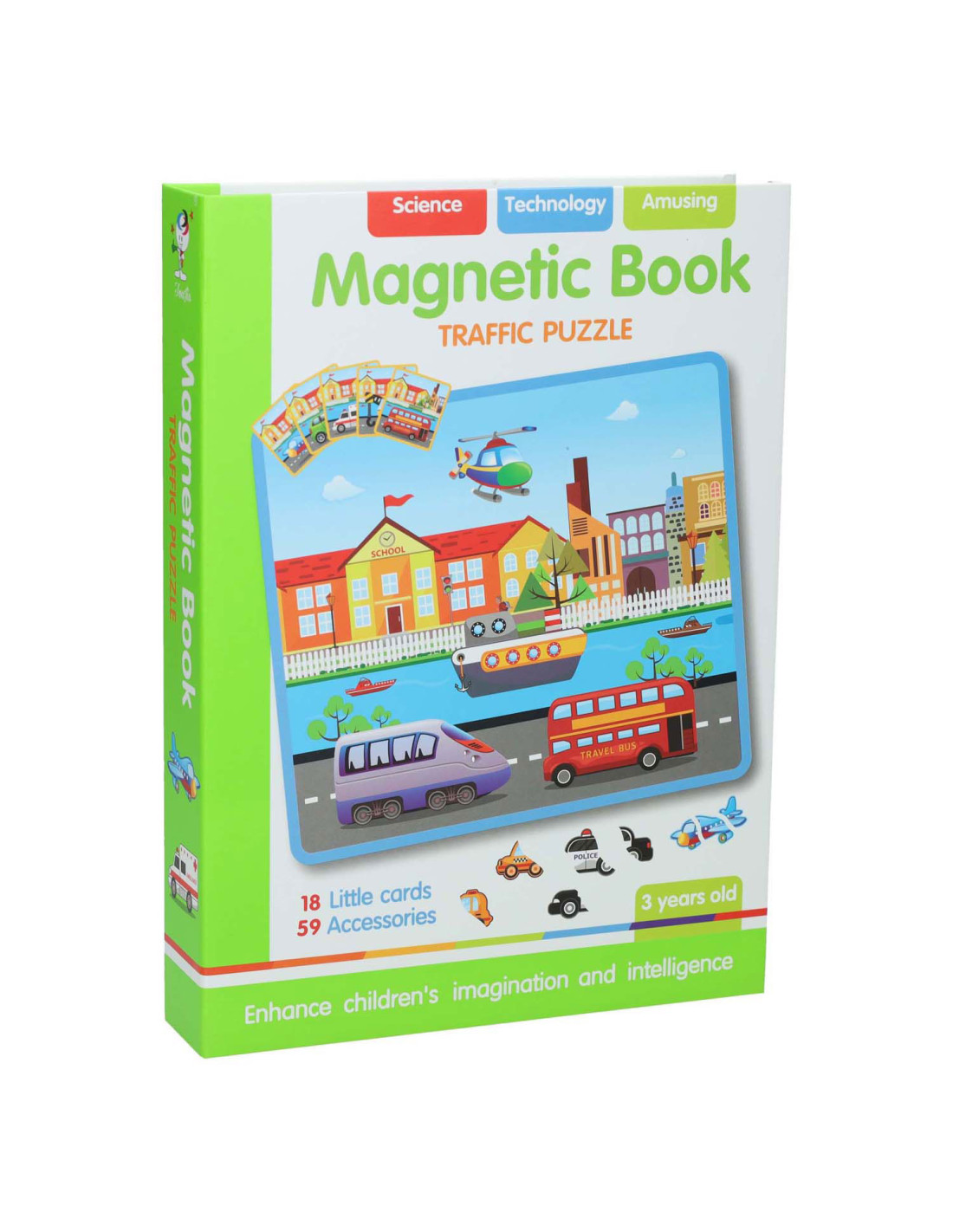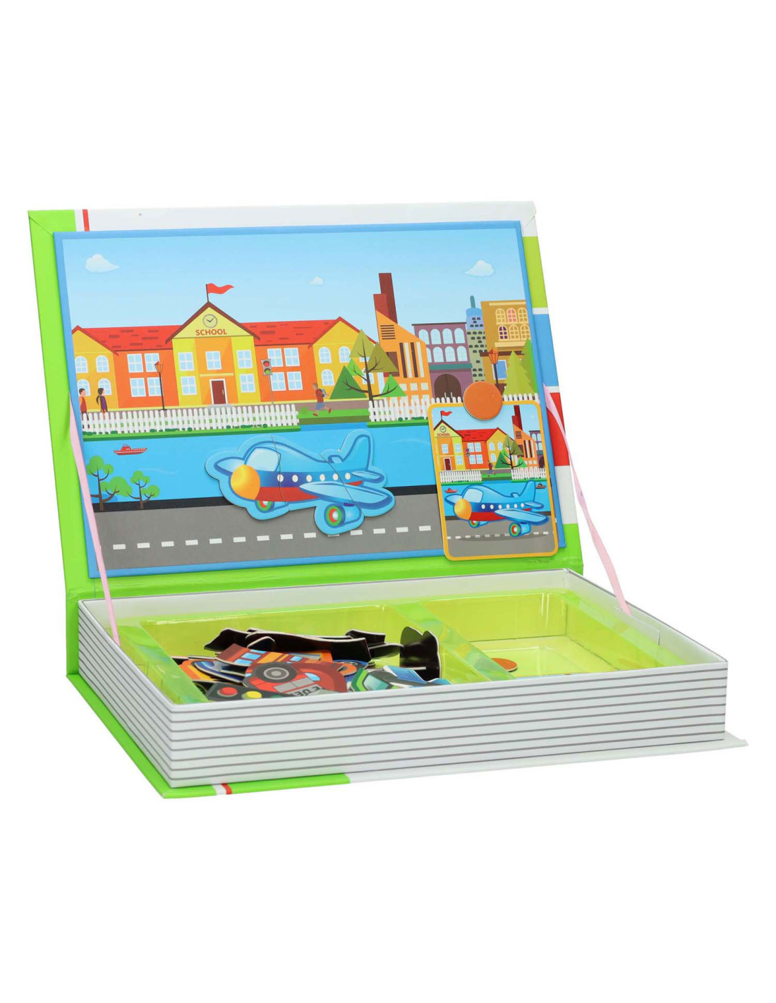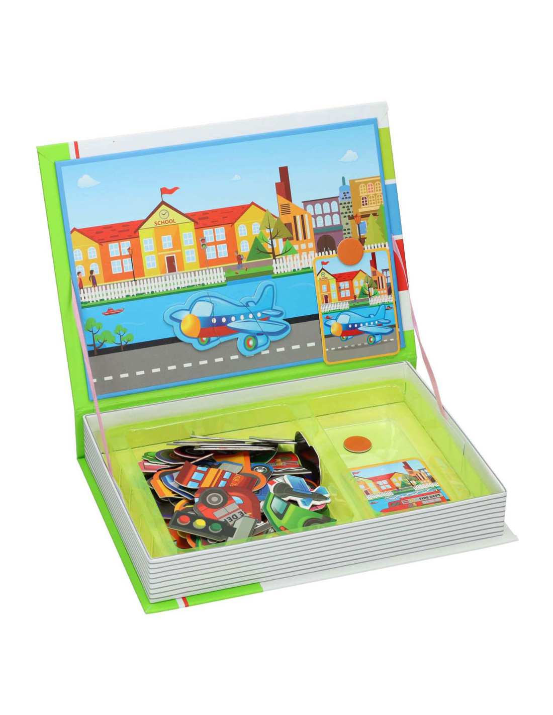 Magnetisch boek met 59 gekleurde magneten en 18 voorbeeldkaarten, waarmee je allerlei verschillende magnetische voertuigen kunt maken op de magnetische ondergrond. Geschikt voor kinderen vanaf 3 jaar.