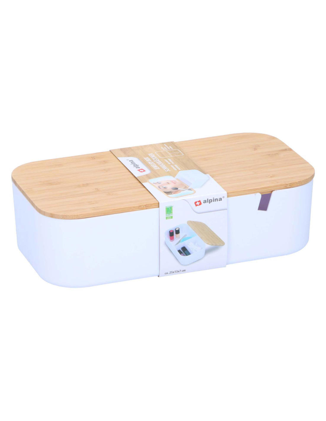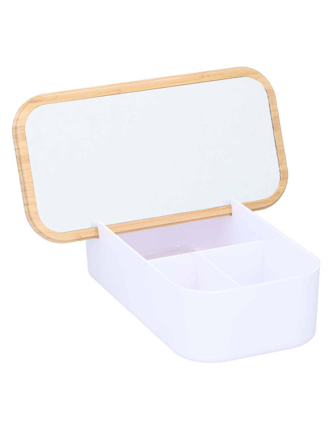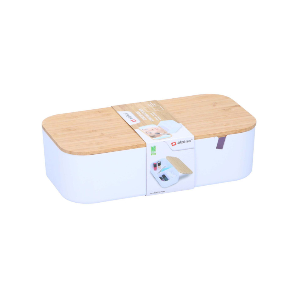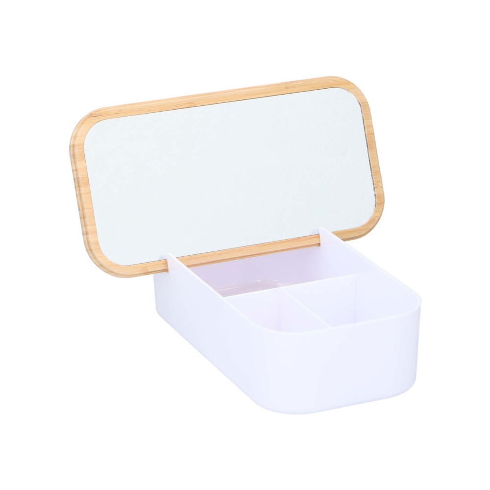 Handige opbergdoos met een stijlvol deksel met geïntegreerde spiegel. Perfect voor het organiseren van diverse items zoals medicatie of accessoires. Het moderne ontwerp past in elk interieur. De deksel zorgt voor stofvrije opslag.
