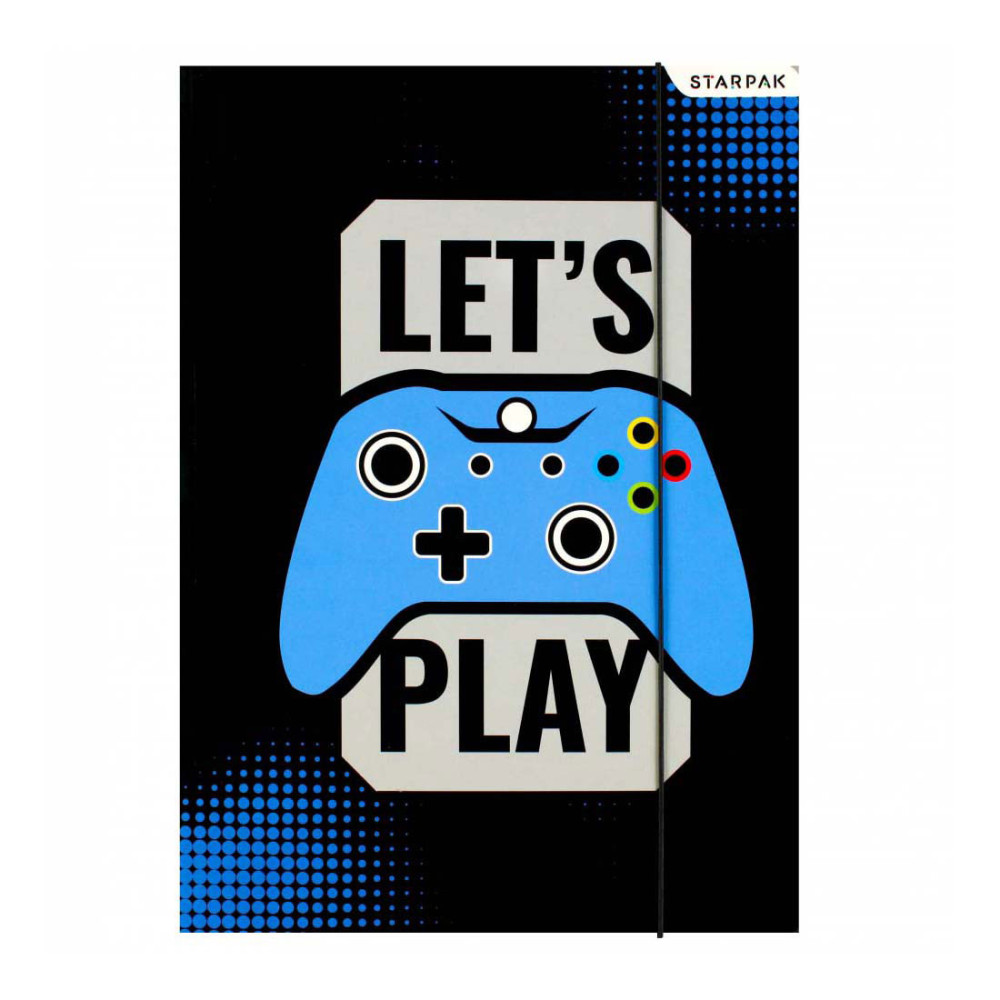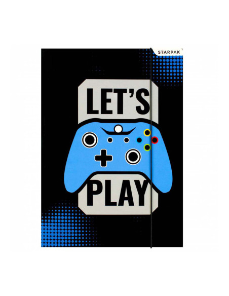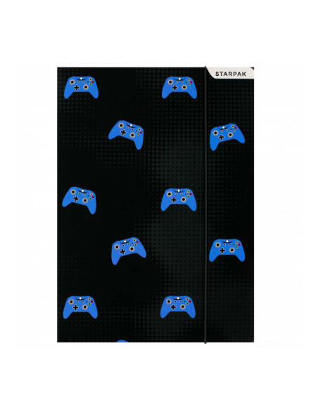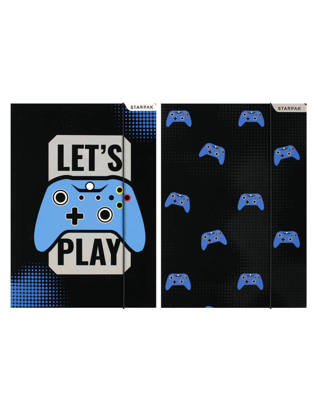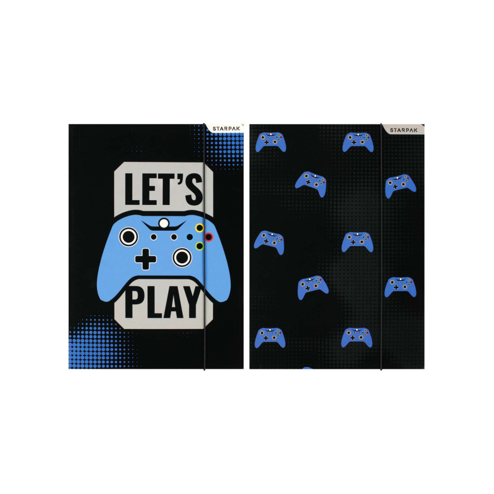 Map met rubberen band en game console opdruk, in A5 formaat. Niet voor kinderen jonger dan 3 jaar.
