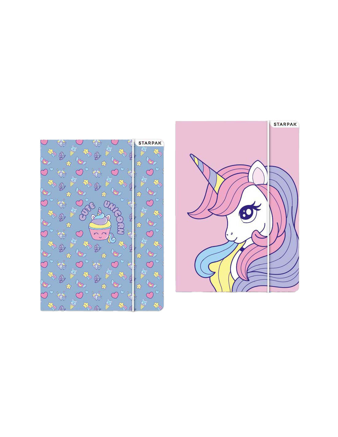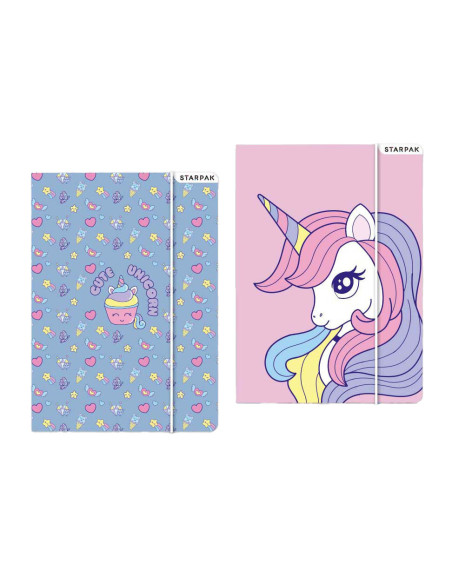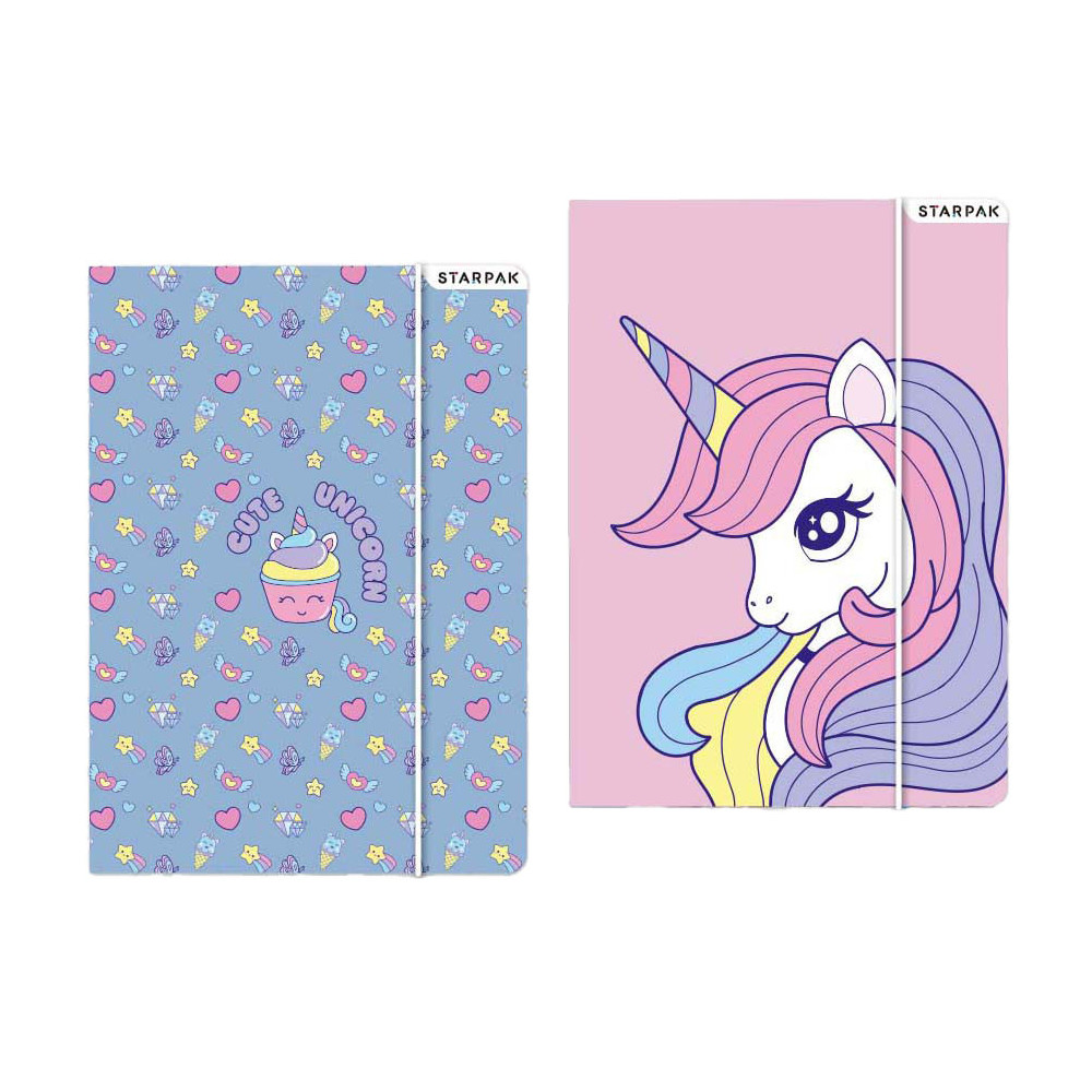 Map op A4 formaat met elastieken band en eenhoorn print.
