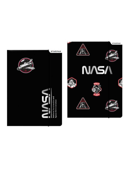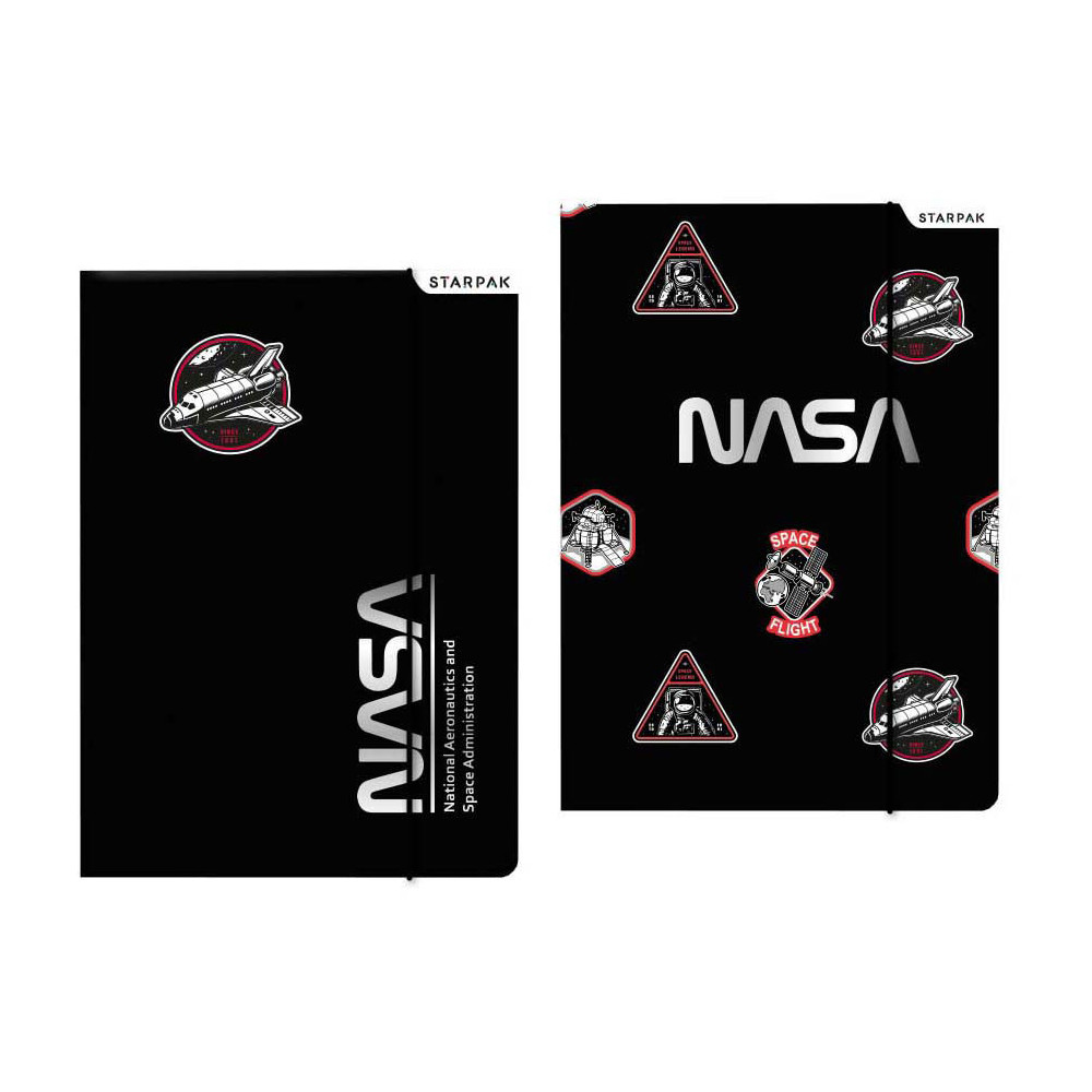 Map voor het opbergen van documenten, diploma's en kunstwerken. Met sluitelastiek van esthetische stof. Het mapje is versierd met coole ruimtevaart en NASA-afbeelding.