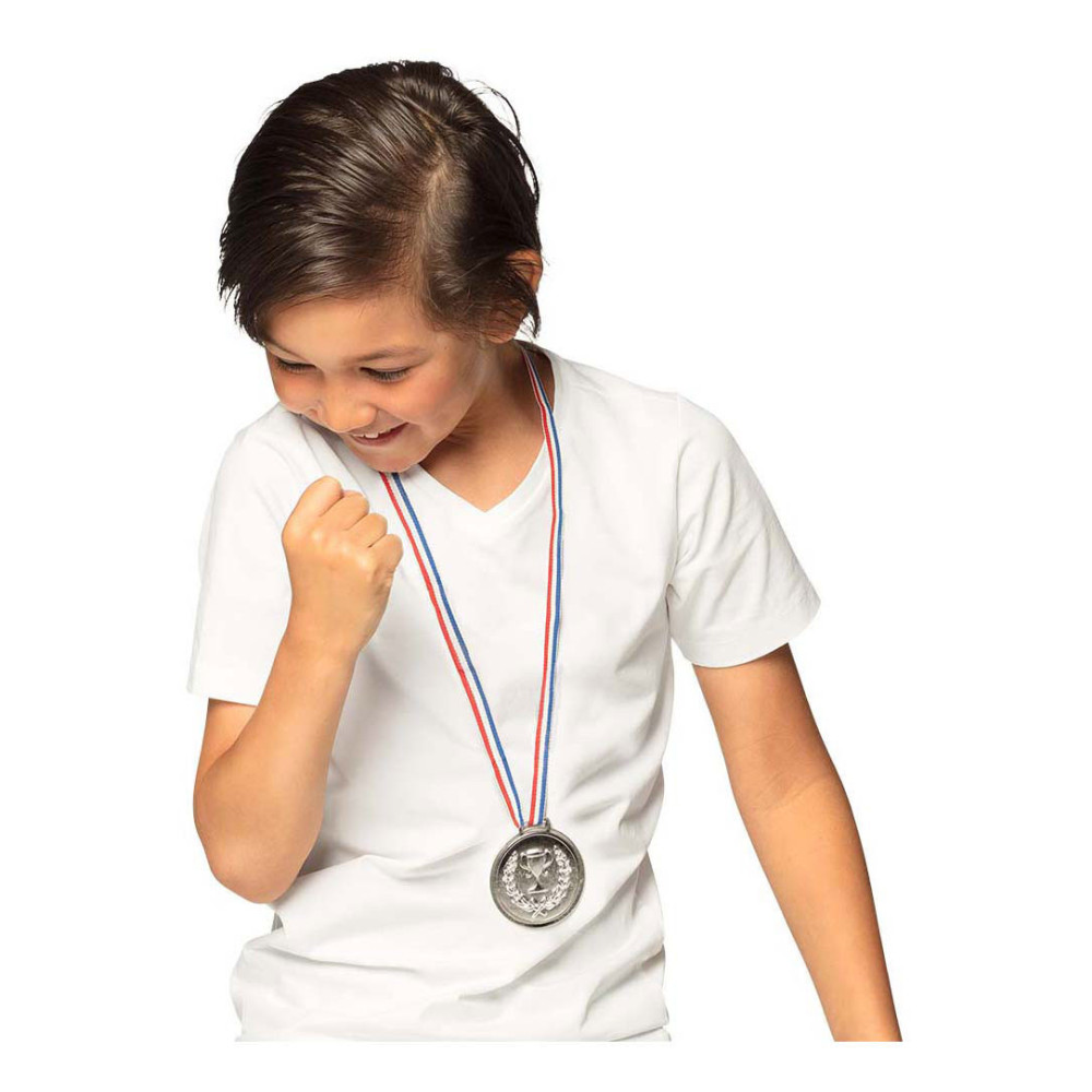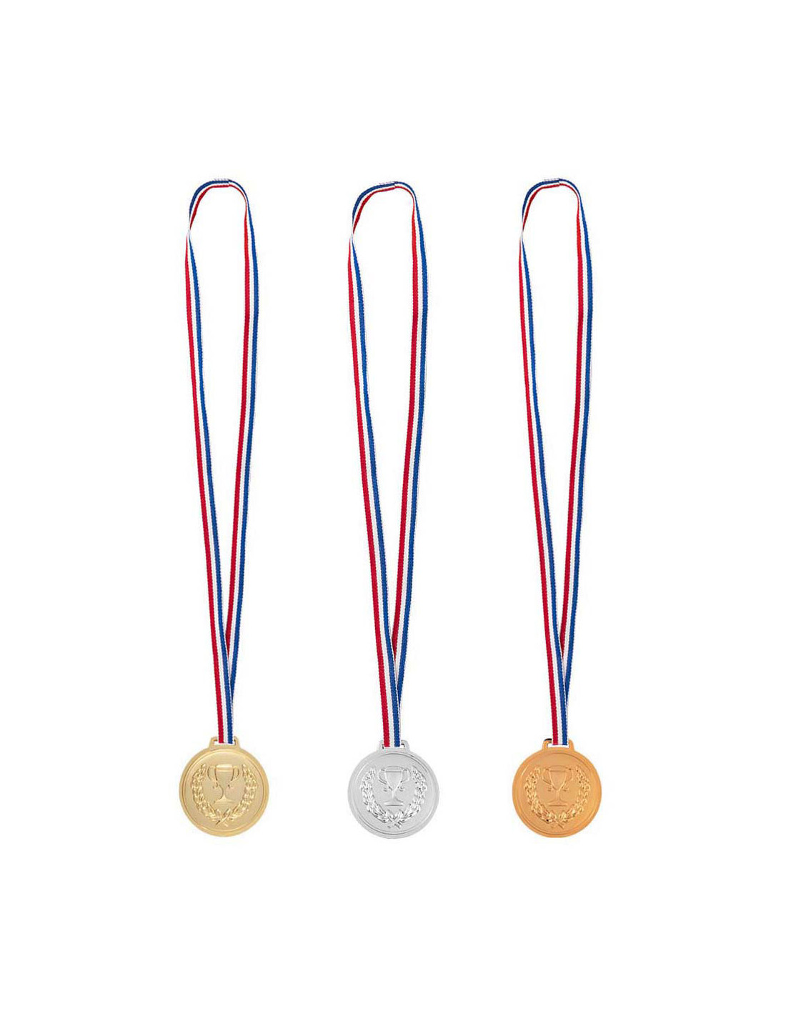 Set van 3 podium medailles (goud, zilver en brons) met een diameter van 6 cm en een driekleurig lint van 75 cm.