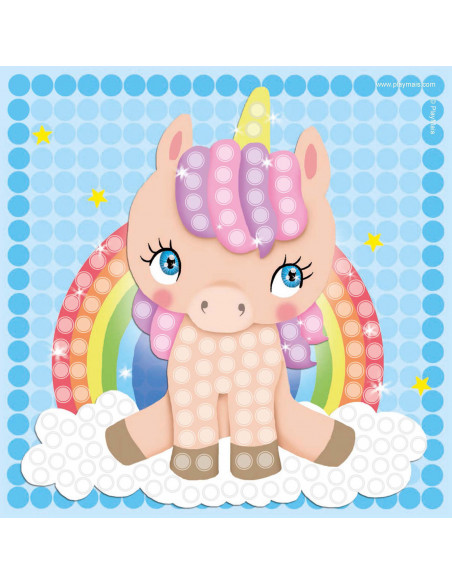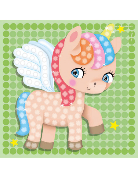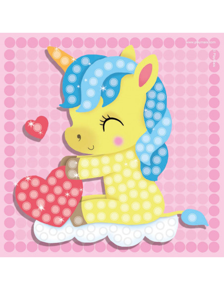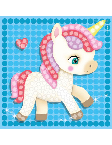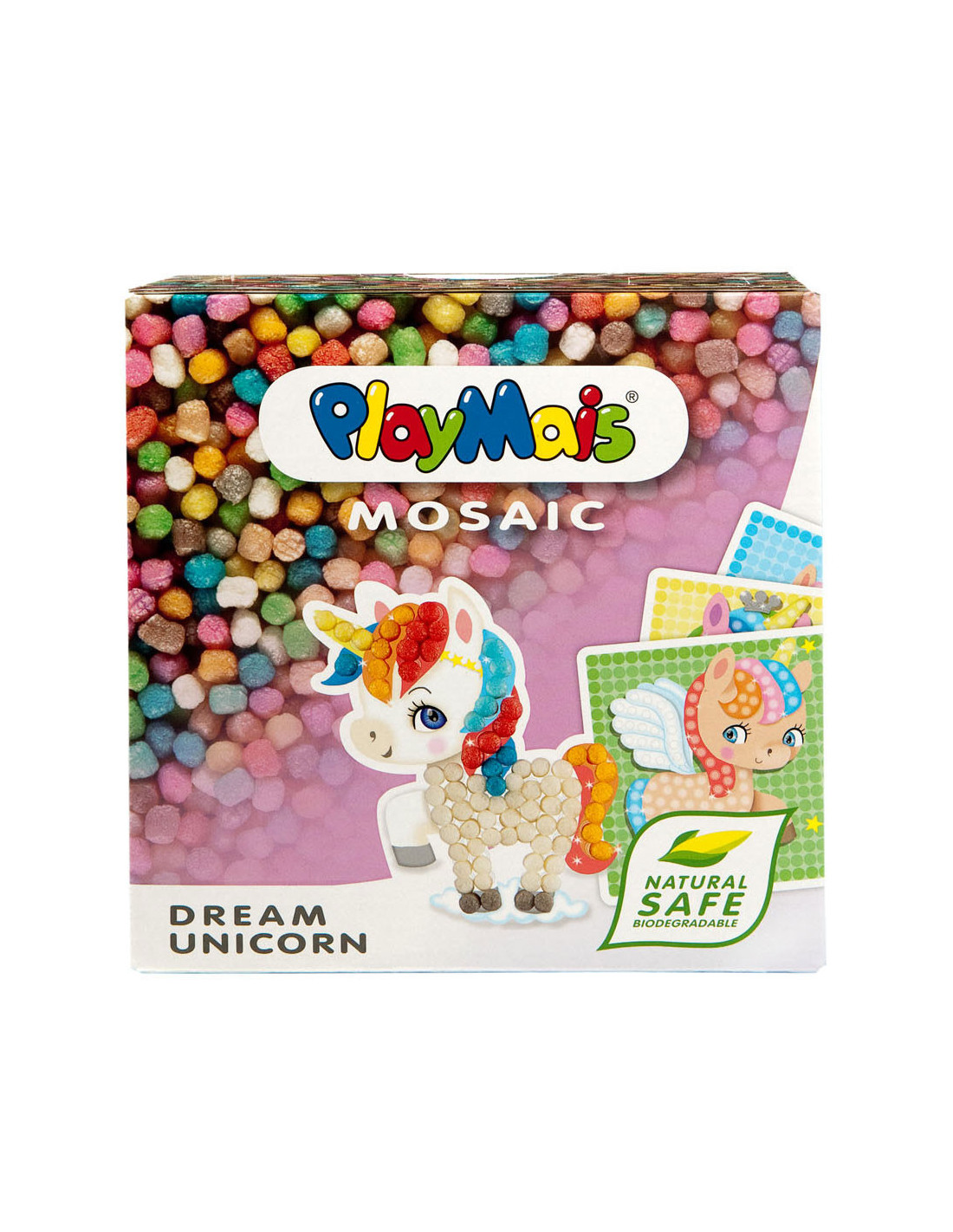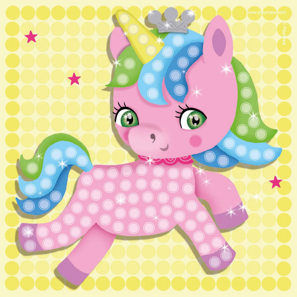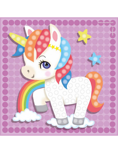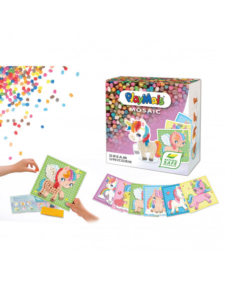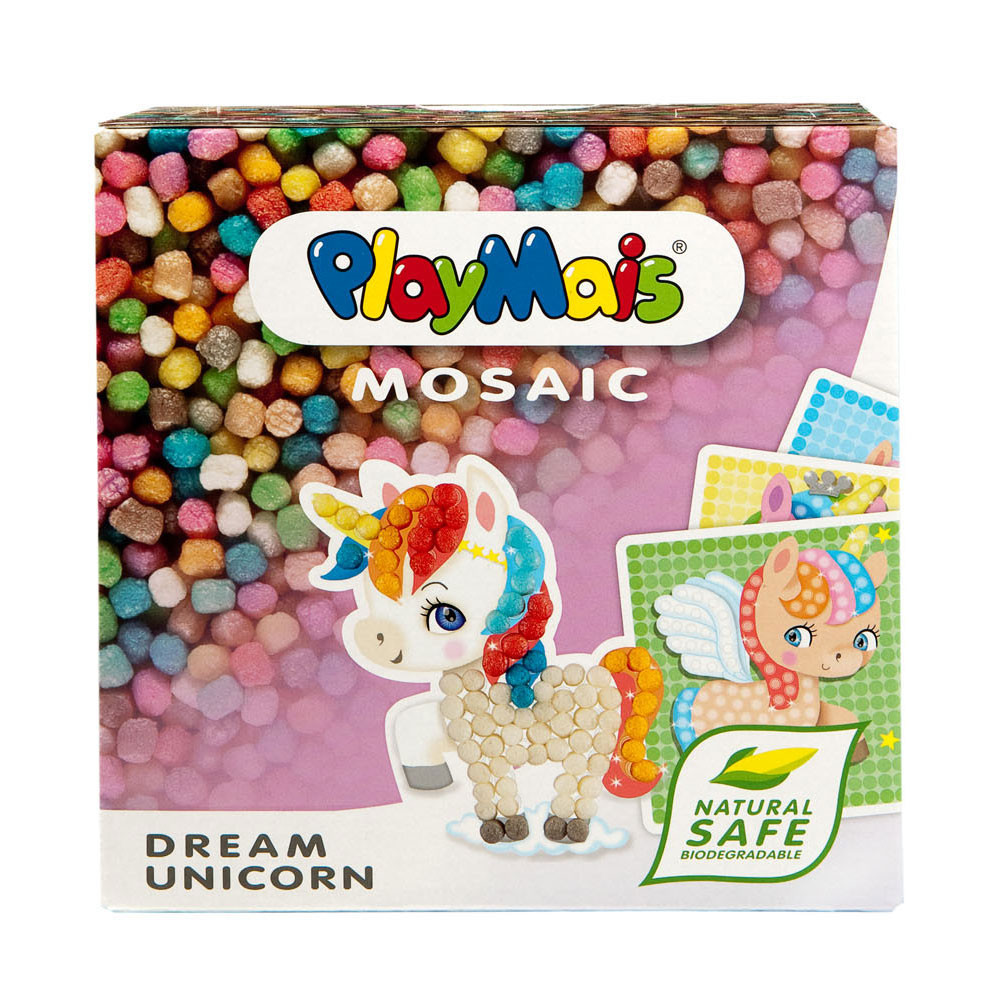 PlayMais Mosaic Eenhoorn stimuleert de creativiteit en helpt bij de oog-handcoördinatie. Kinderen leren namelijk de juiste kleur Playmais bouwstenen op de voorgedrukte kaarten met afbeeldingen van eenhoorns te plakken. Lijm is overbodig, fantasie en een beetje water is alles wat je nodig hebt. PlayMais is gemaakt van maïs, water en voedingskleurstoffen en is dus natuurlijk, veilig en biologisch afbreekbaar.