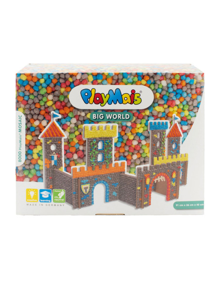 PlayMais Mosaic Big World bouwset voor het maken van een groot kasteel. Meer dan 8000 stukjes en bouwhulp inbegrepen. Afmetingen kasteel: 91 x 36 cm groot. Geschikt vanaf 3 jaar.