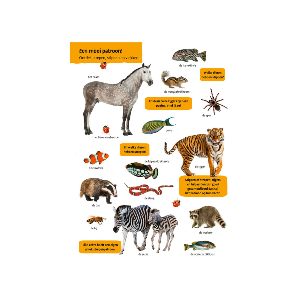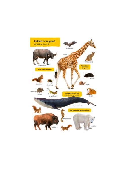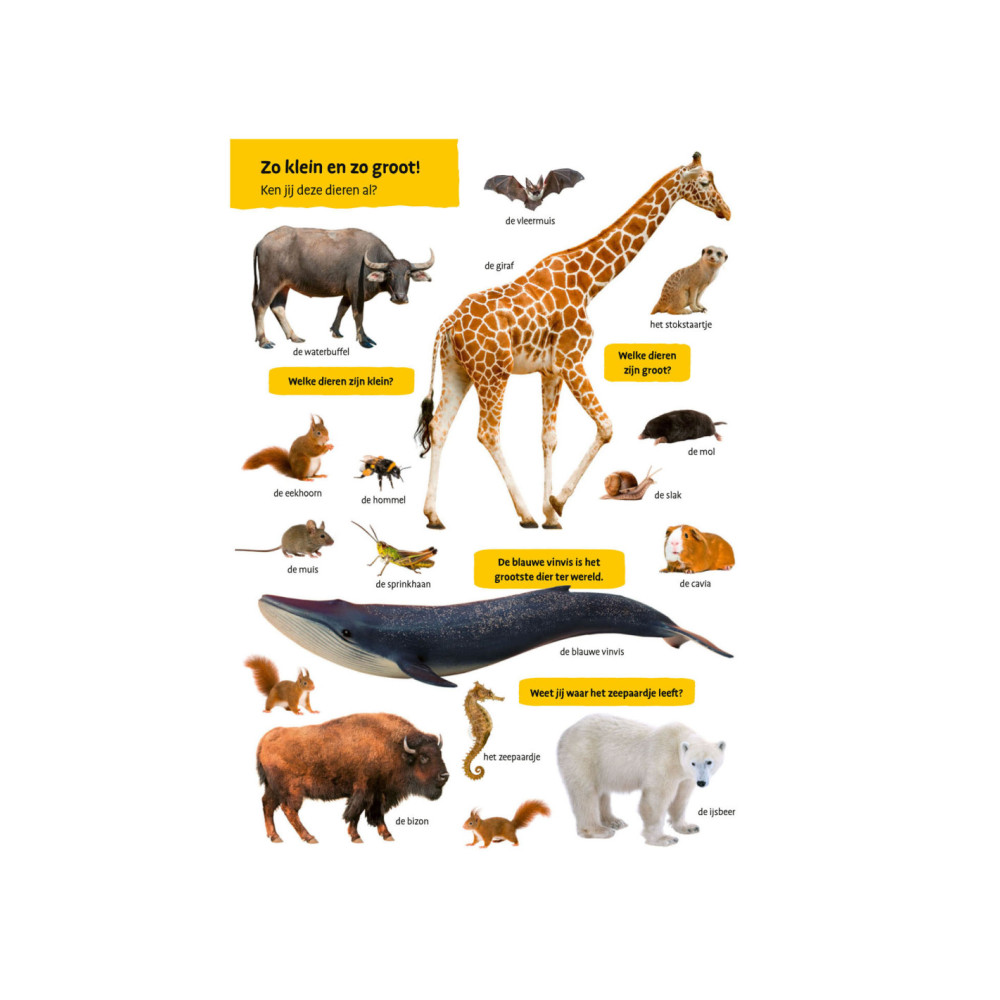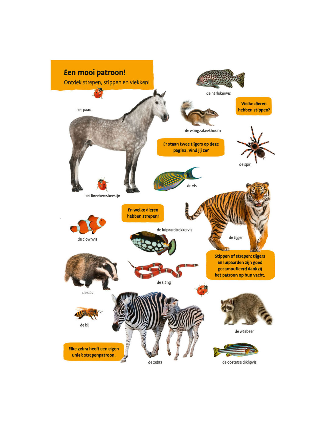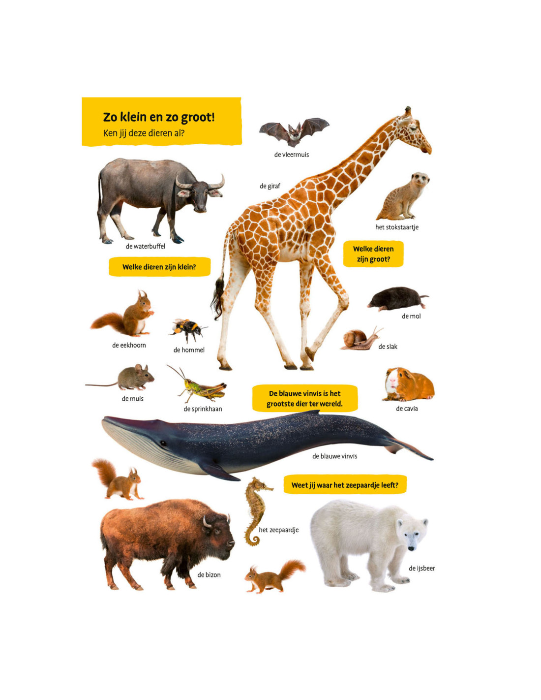 Van een enorme olifant tot een piepkleine muis, dit grote kartonboek staat boordevol verbazingwekkende dieren! De leuke zoekspelletjes, raadsels en weetjes prikkelen de nieuwsgierigheid van kinderen en vergroten tegelijkertijd hun woordenschat. Meer dan 160 foto's brengen de pracht van de dierenwereld tot leven en maken van dit beeldwoordenboek ongetwijfeld een favoriet in de kinderkamer.
