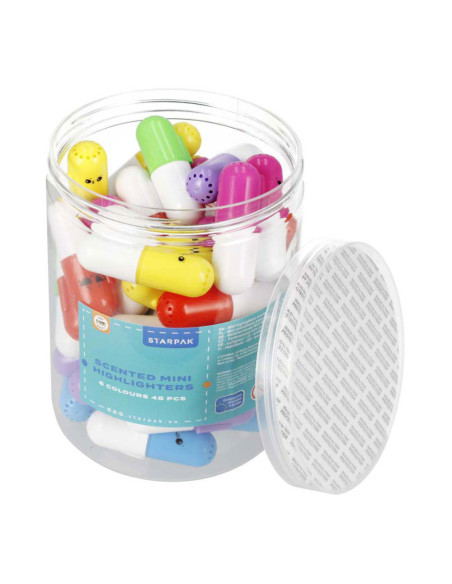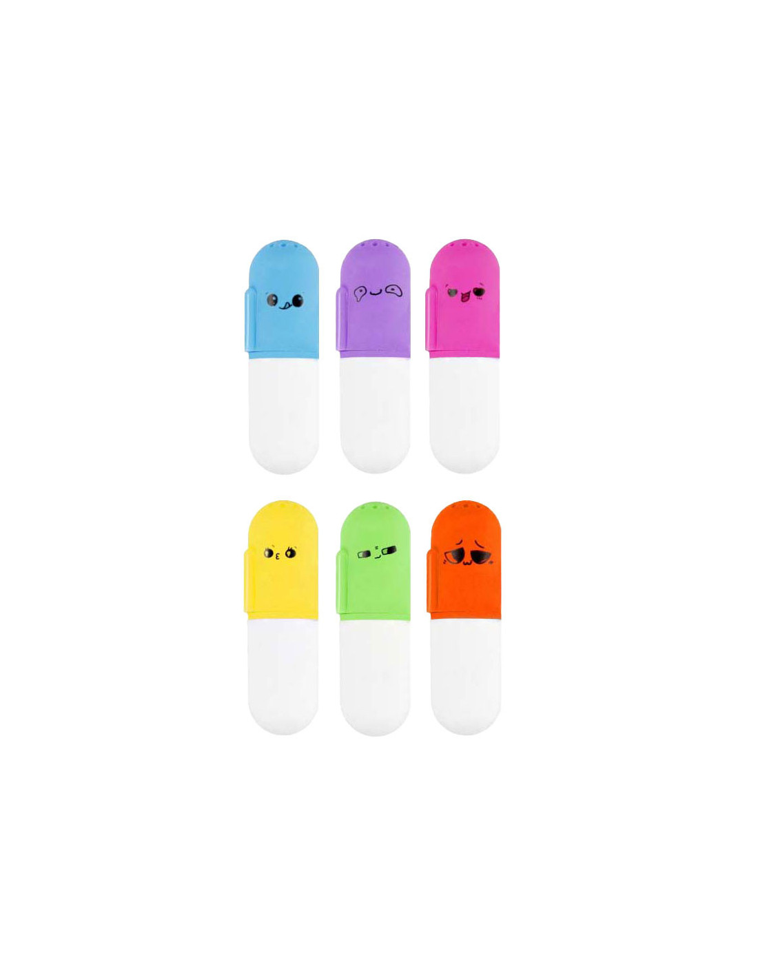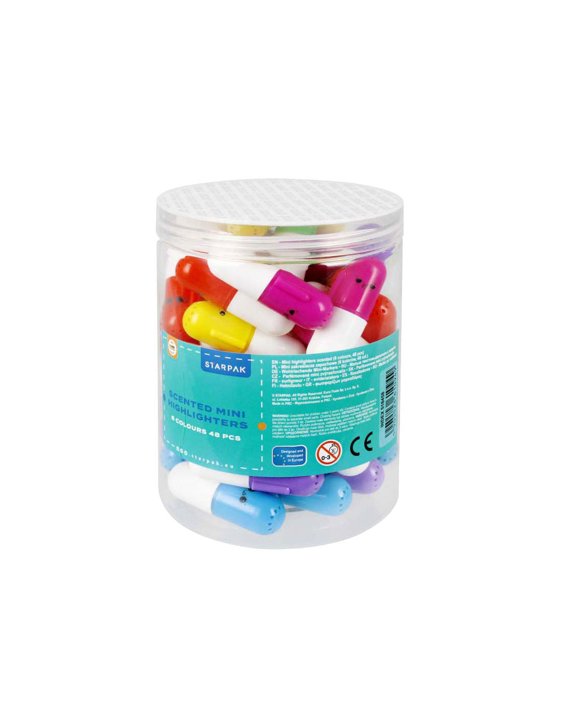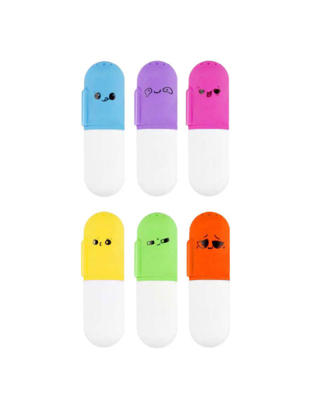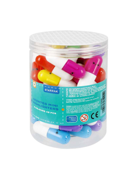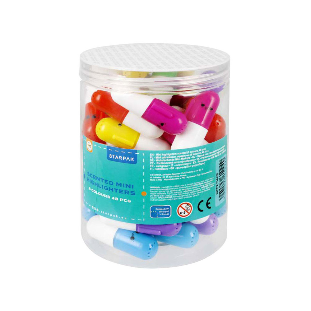 Set met 48 mini markeerstiften in 6 verschillende kleuren. De kleuren zijn: blauw, paars, roze, geel, groen en oranje.