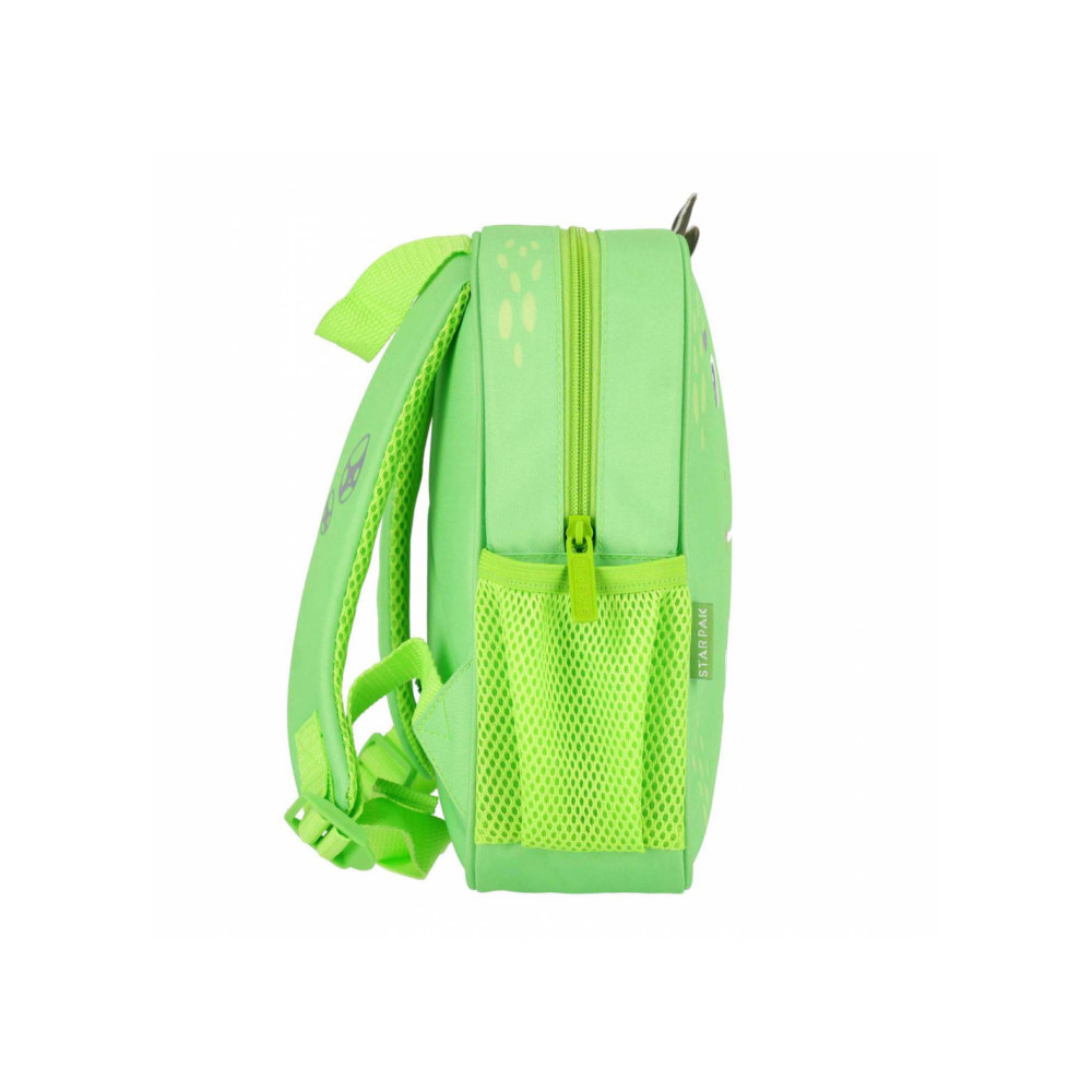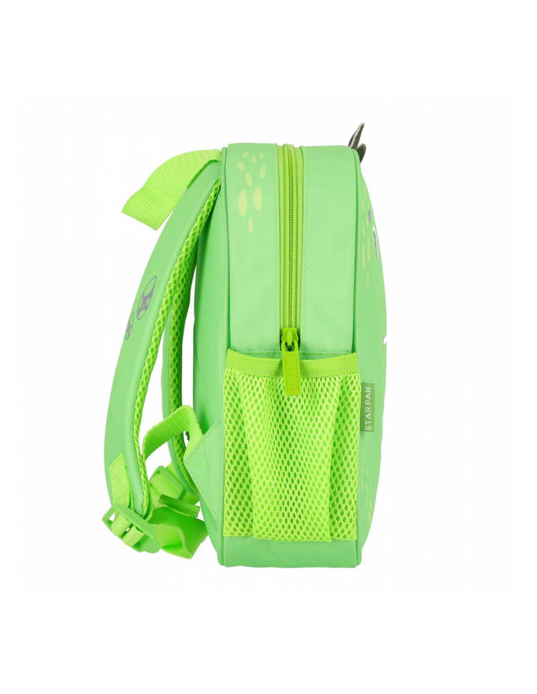 Een kleine, handige en kleurrijke rugzak voor kleuters! De tas heeft een ruim compartiment met een voering die gemakkelijk schoon te maken is, 2 zijvakken voor een fles, verstelbare riemen, stevige ritssluiting én heeft reflecterende badges voor betere zichtbaarheid. De STARPAK minirugzak heeft één vak en een afbeelding met 3D Dinosaurus-elementen.