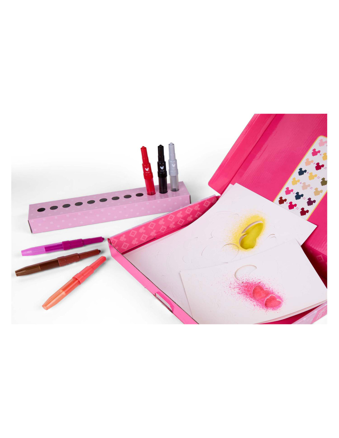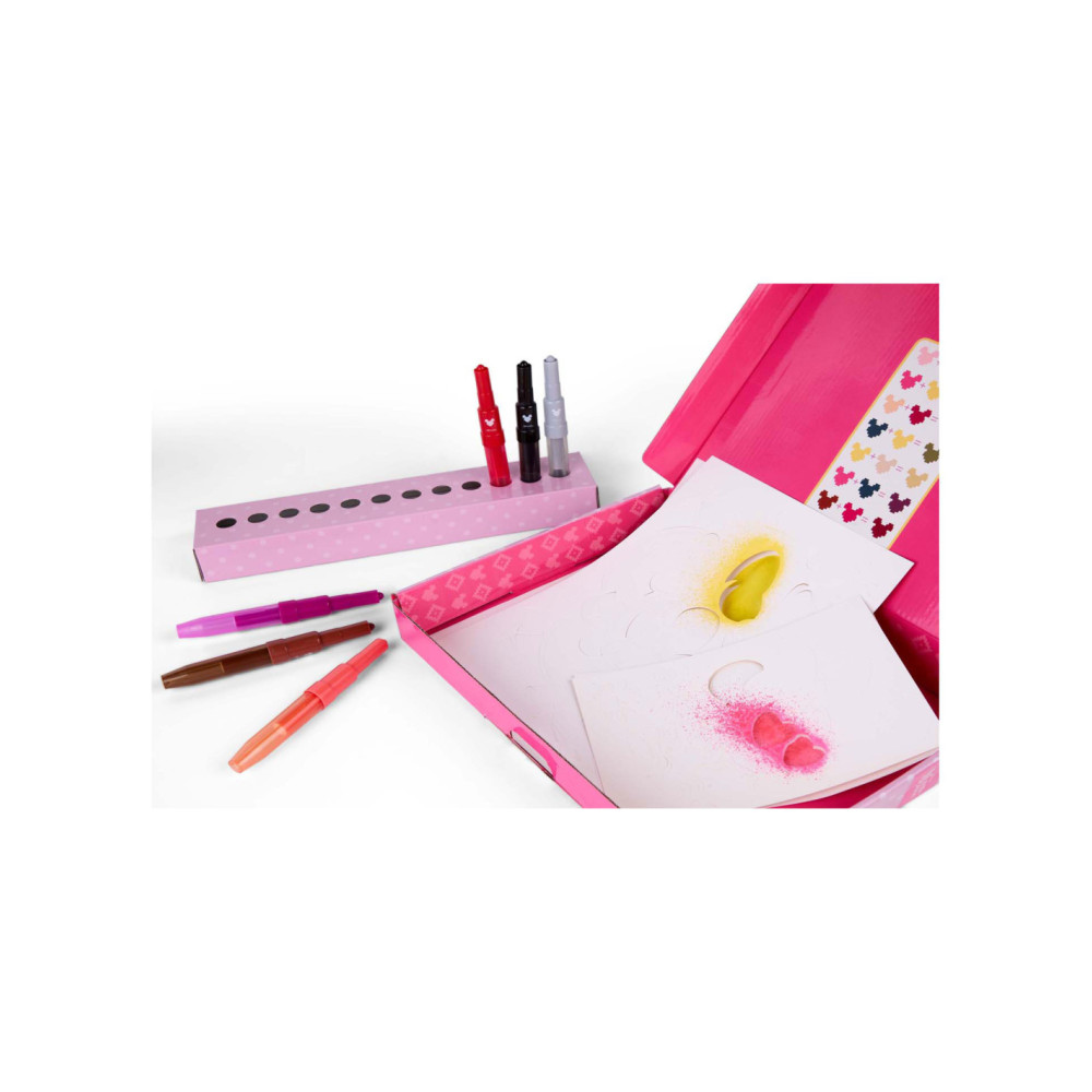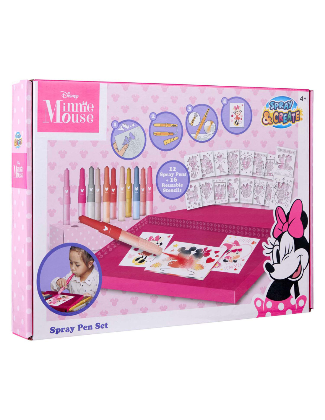 Minnie Mouse blaaspennen set. De set bevat 12 kleuren blaaspennen en 16 stencils. De set is geschikt voor kinderen vanaf 4 jaar.