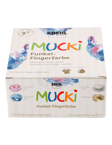 Mucki Vingerverf Metallic Blauw/Goud/Roze/Zilver, 4st.